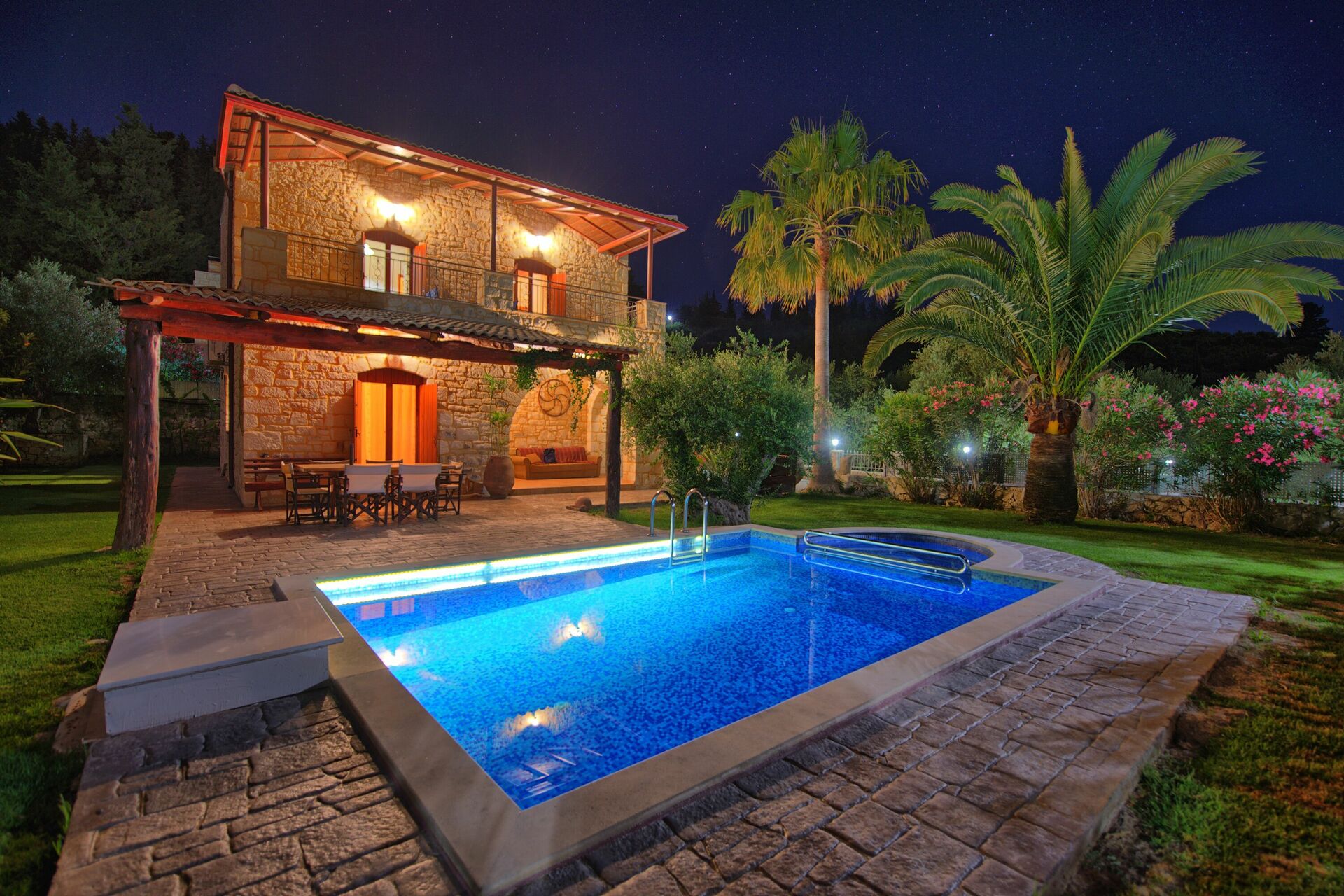 Con le sue 3 camere da letto, 2 bagni, stanze climatizzate, piscina privata, ampio giardino ed interni rifiniti in stile tradizionale, Villa Vrisses è la casa vacanze perfetta per 7 ospiti per godere di tutta l'ospitalità Greca e, soprattutto, Cretese.