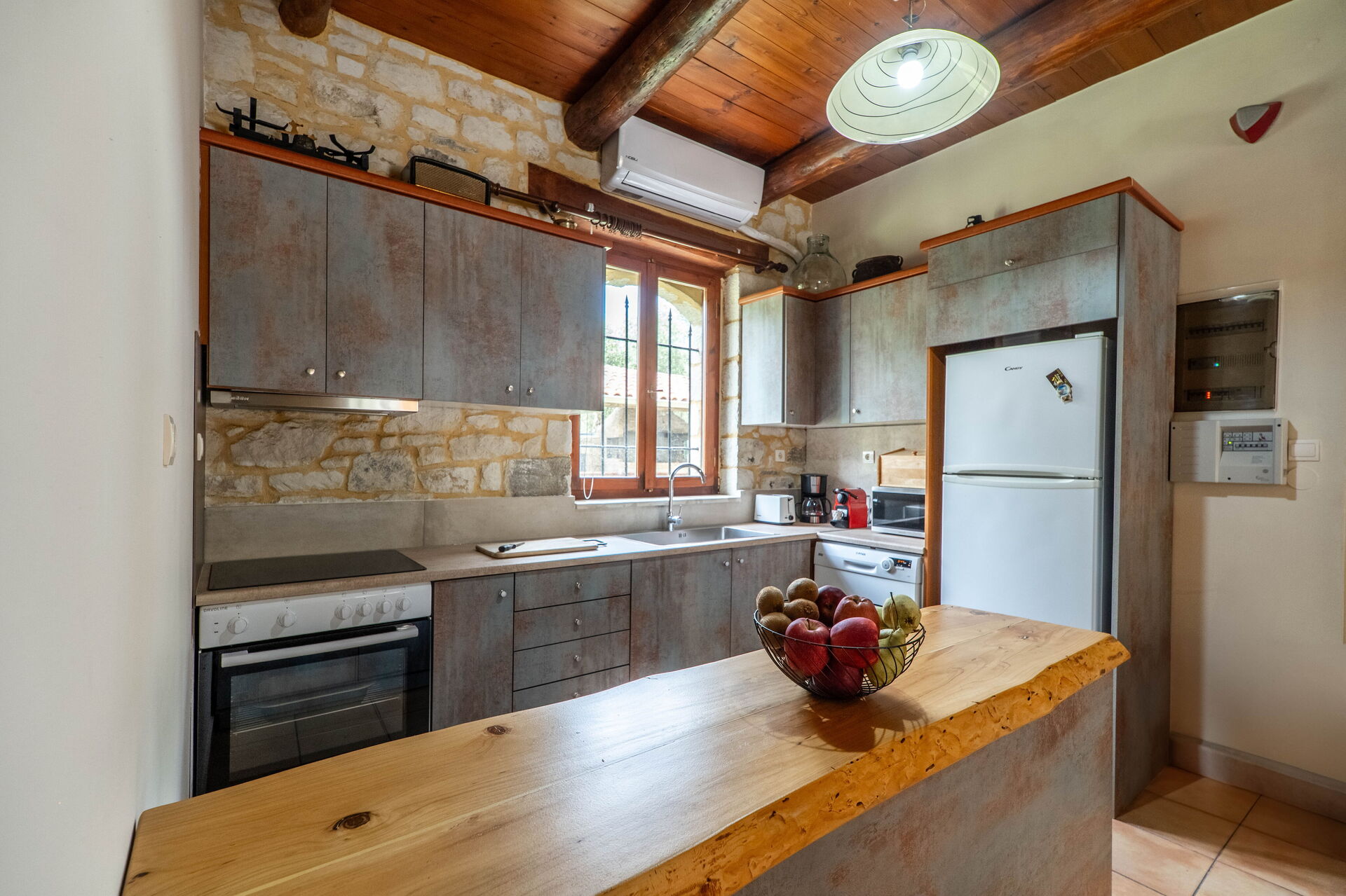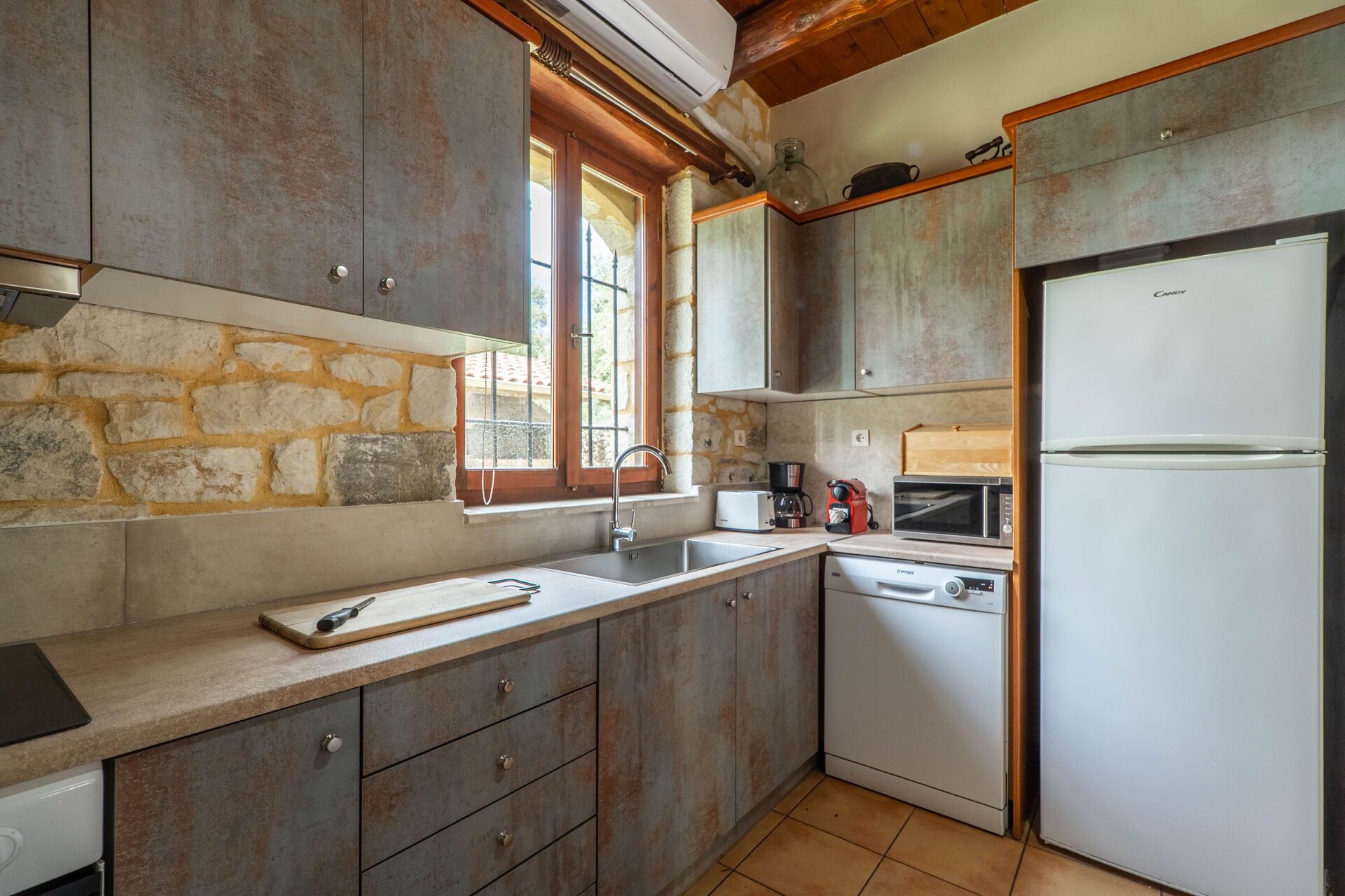 We had a great time in this villa. The place is extremely well situated in the countryside but not far from a supermarket and pharmacy, as well as to the town of Vryses, with its beautiful river and outdoor restaurants. The garden was very well kept and the landscape very beautiful indeed. It was agreeable to find complementary coffee, tea, juice, water, etc, when we arrived.