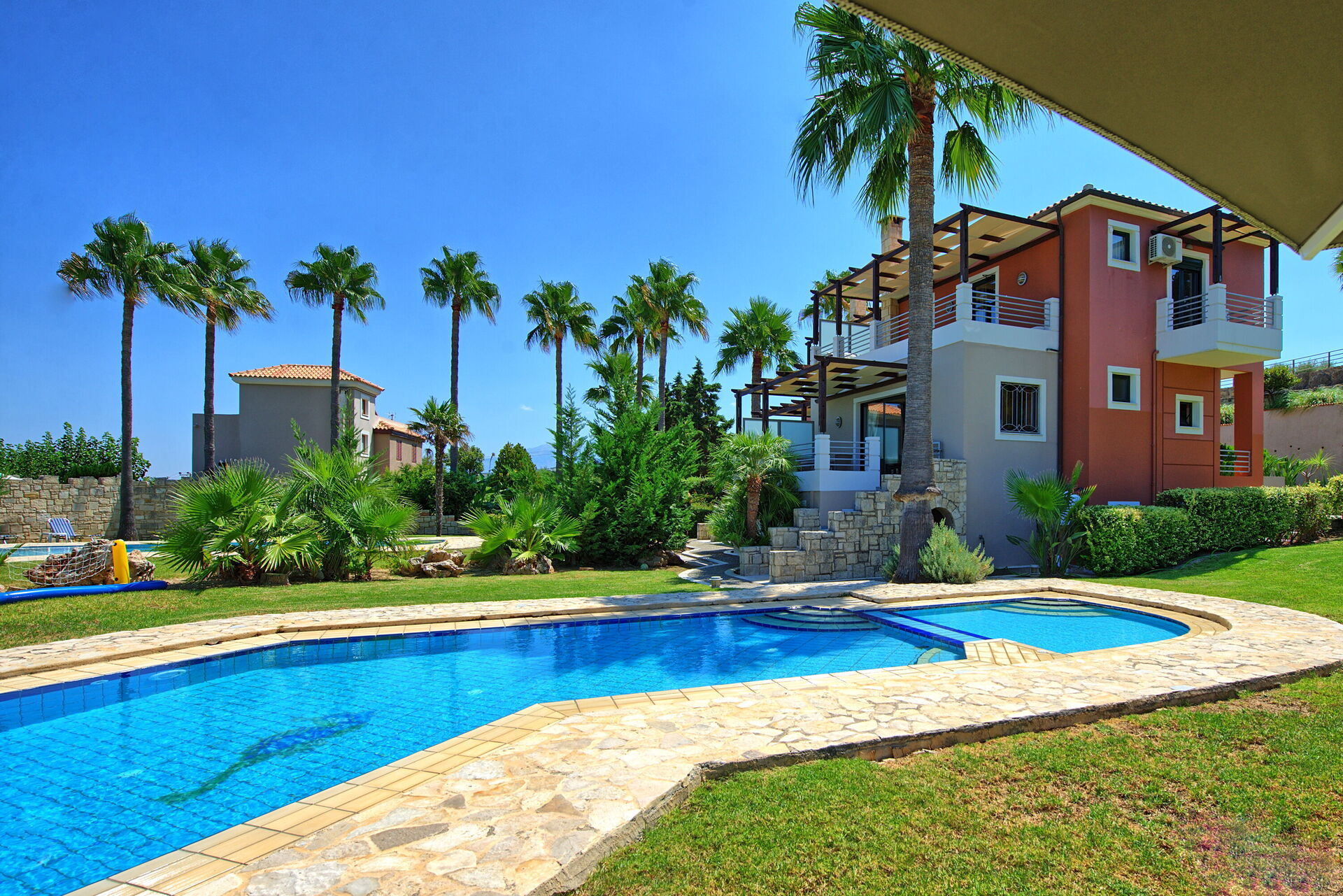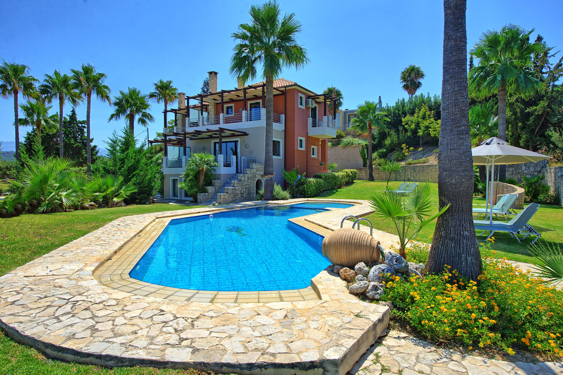 The villa itself has a very nice and ‘warm’ interior. The pool is fabulous. The air conditioning is powerful and available in every room. The kitchen is small but sufficient.