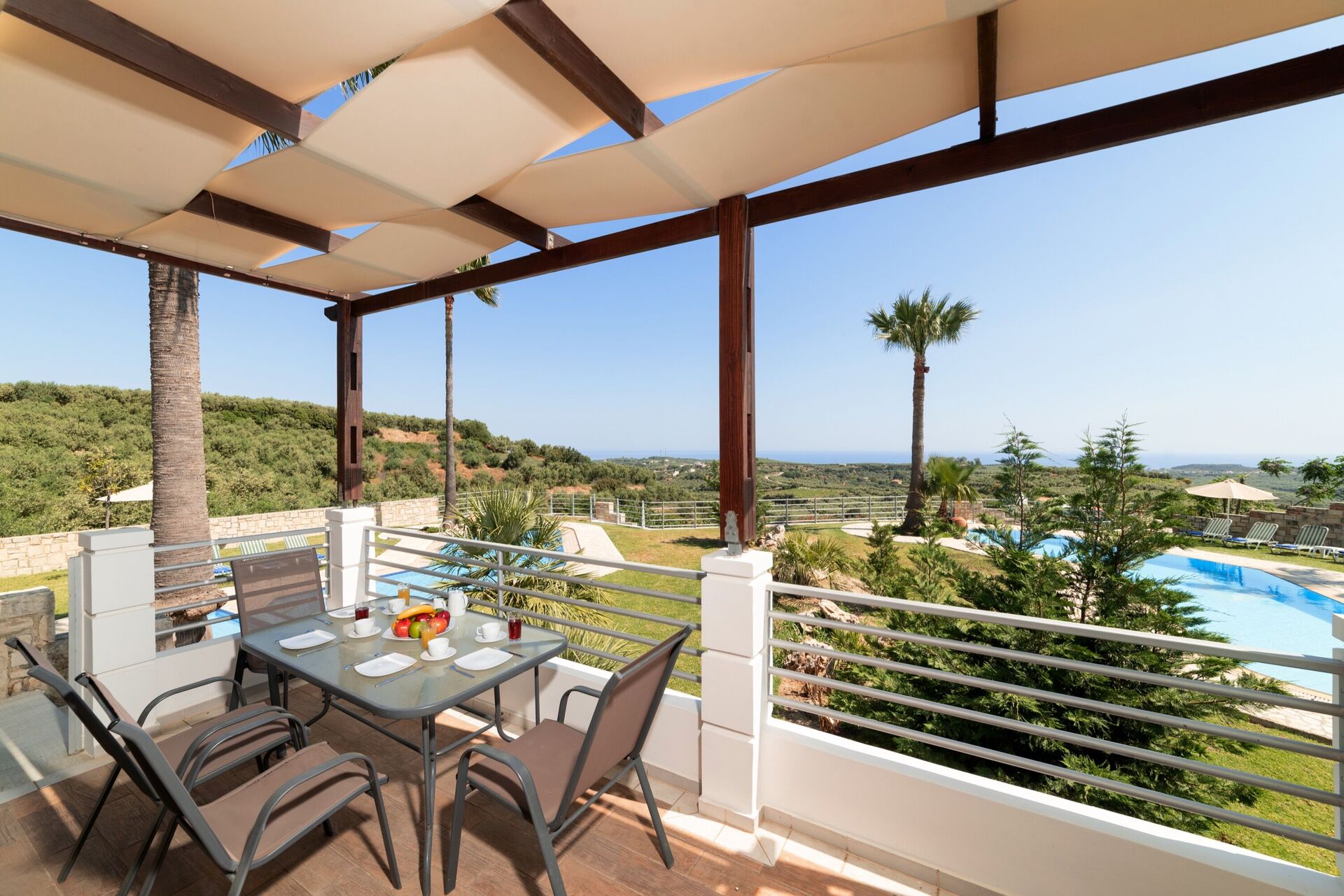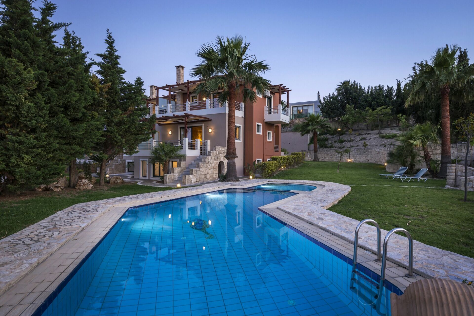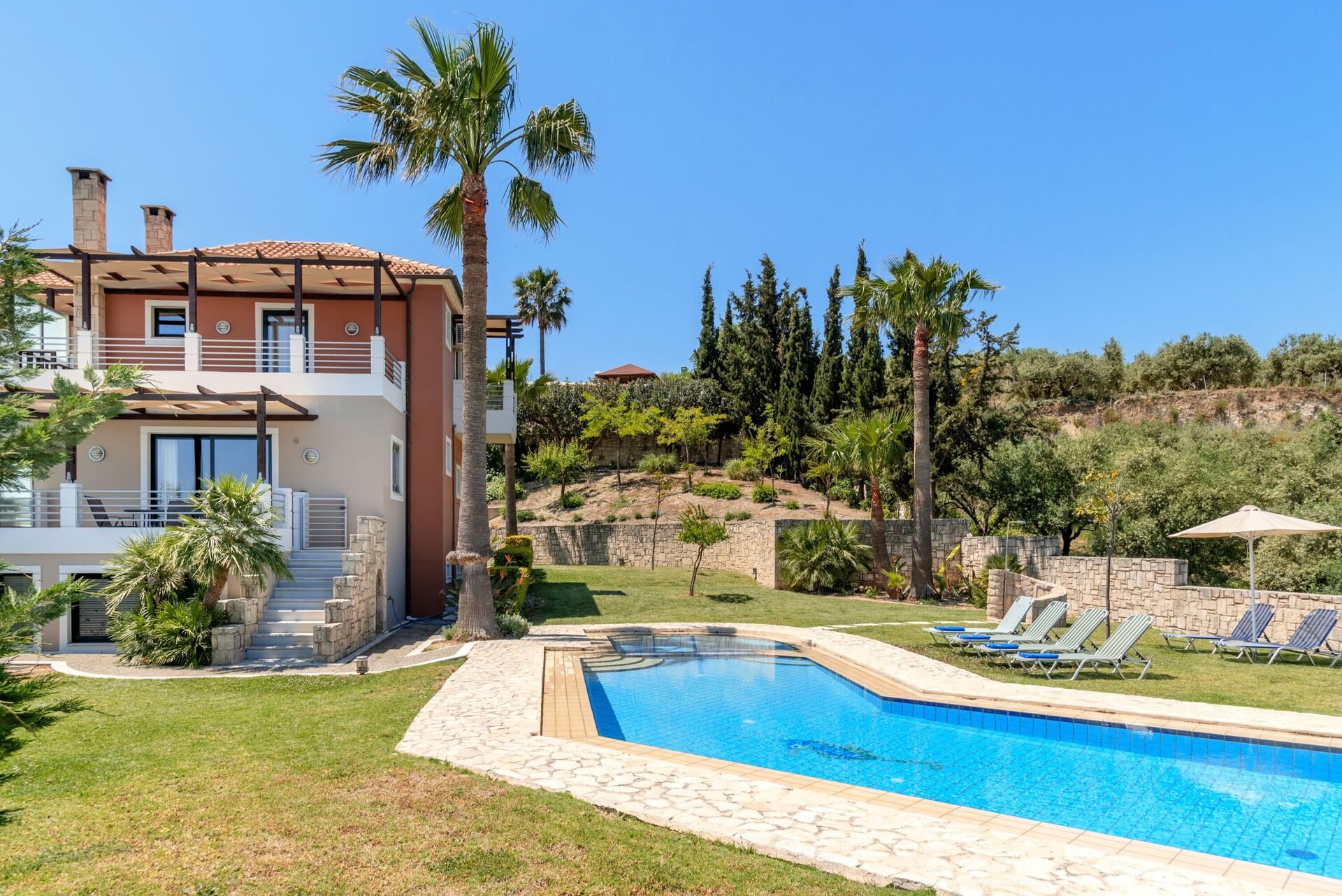 The stay at this villas was very good, the pool was very nice, we did notice the beds were quite hard. i would suggest its time to replace those matrasses ;) a car is needed for this stay. its generally a 10 to 5 minute drive to the supermarket or small town and 25 minute drive to Chania. we went with 7 persons and we had a great time.