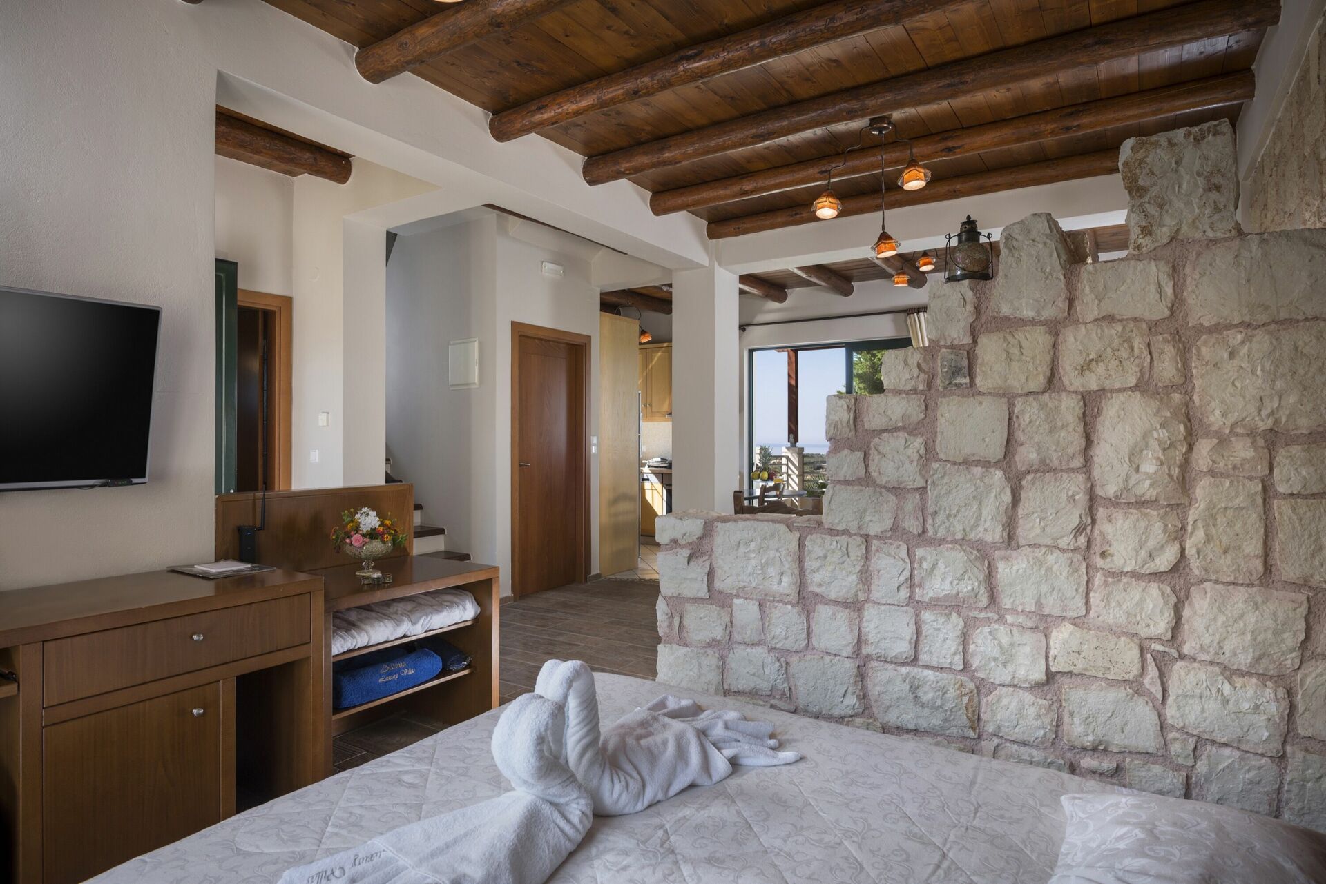 When you are looking for more activity, the lively Agia Marina is just 10 to 15 car-minutes away, and the town of Chania, which has a beautiful harbor just 30 to 35 minutes.