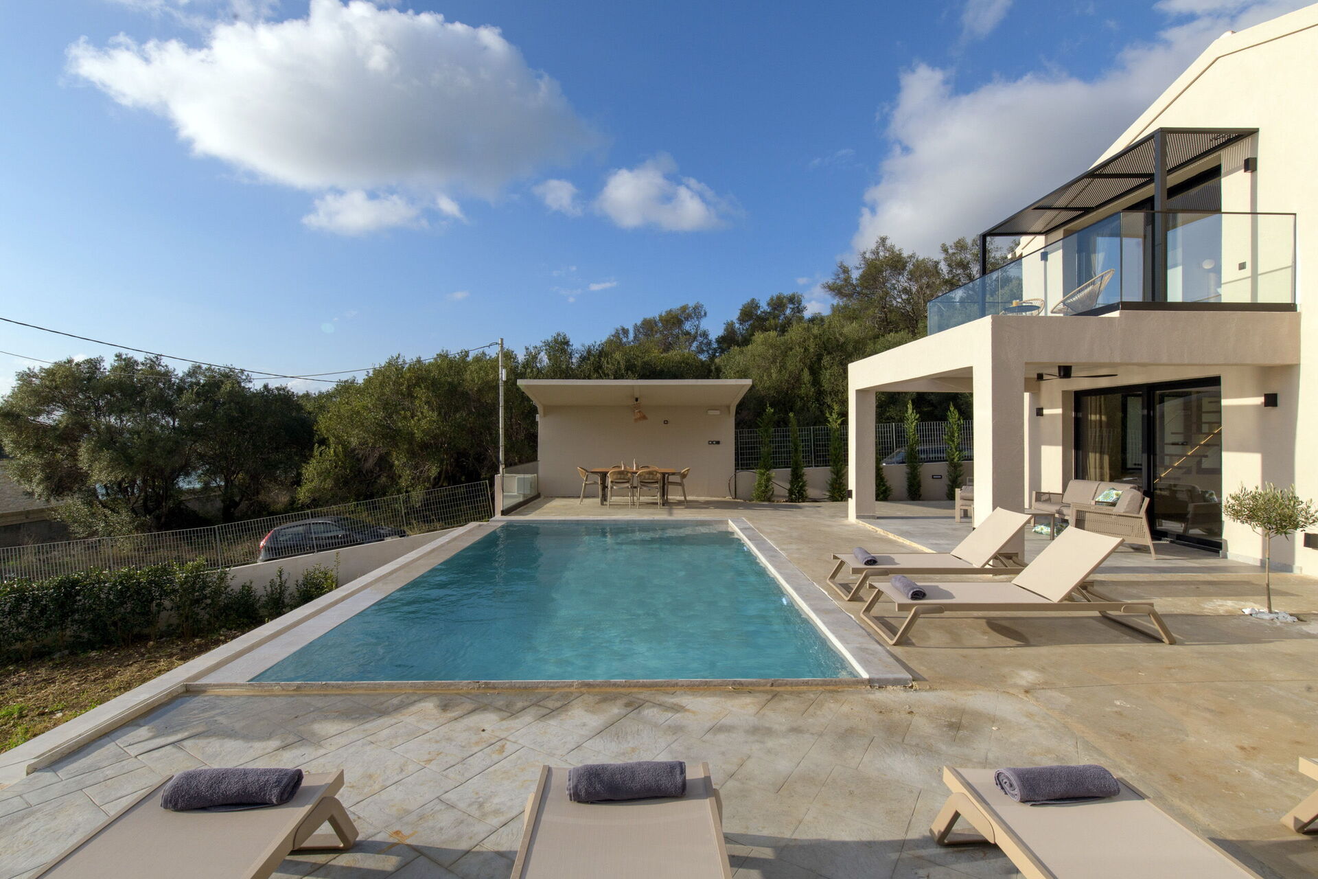 Grazie alla sua posizione questa bella villa con piscina in affitto per vacanze a Corfu vi regalerà un fantastico e rilassante soggiorno in compagnia di amici o familiari. Le sue tre camere da letto arredate con un gusto moderno sono perfette per ospitare 6 persone in un ambiente dove ogni dettaglio è studiato per stupire, offrendo un’atmosfera rinfrescata dalla costante brezza marina che rende piacevoli anche le ore più calde dell’estate greca.