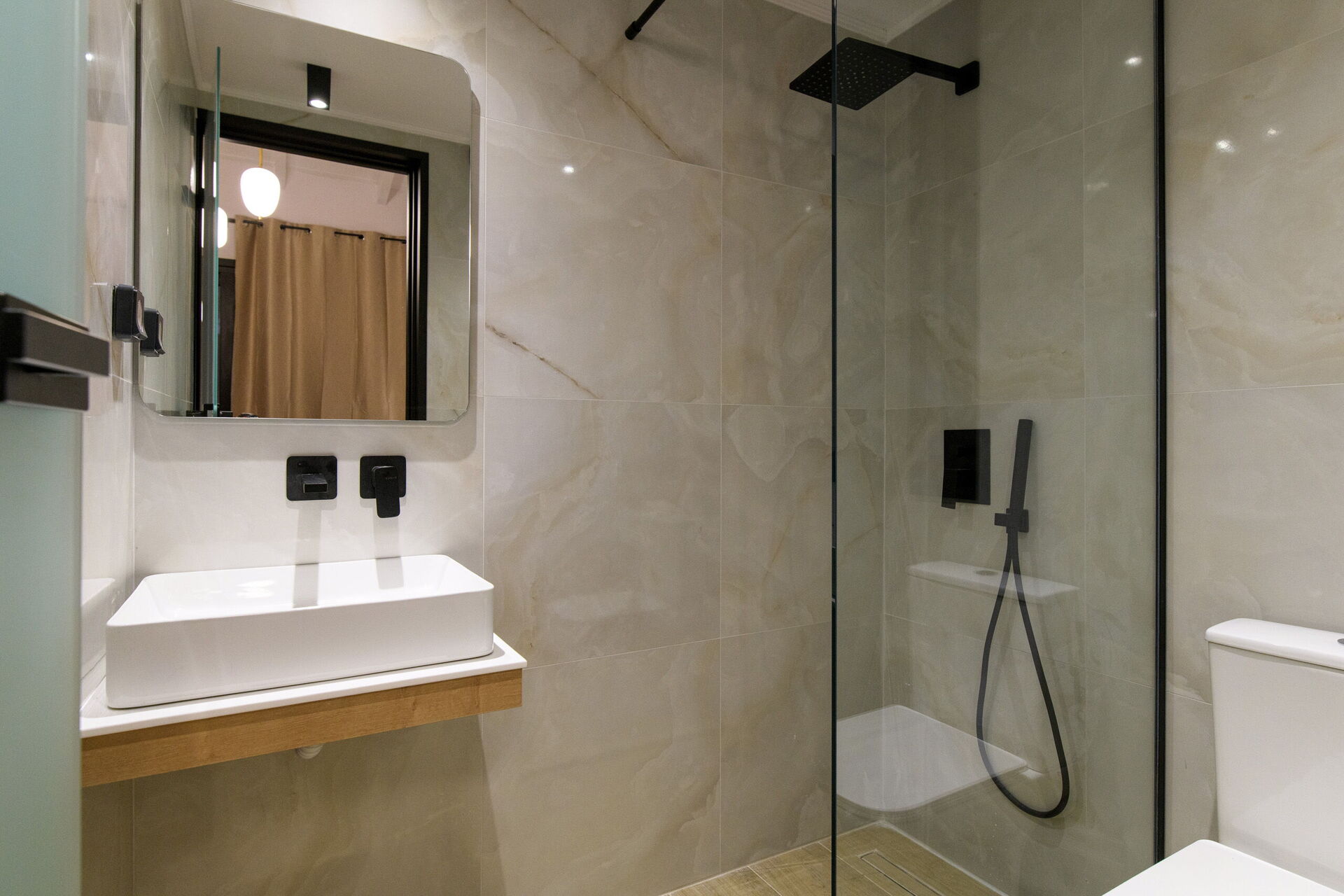 Primo piano: camera matrimoniale con bagno privato con doccia e accesso a balcone.