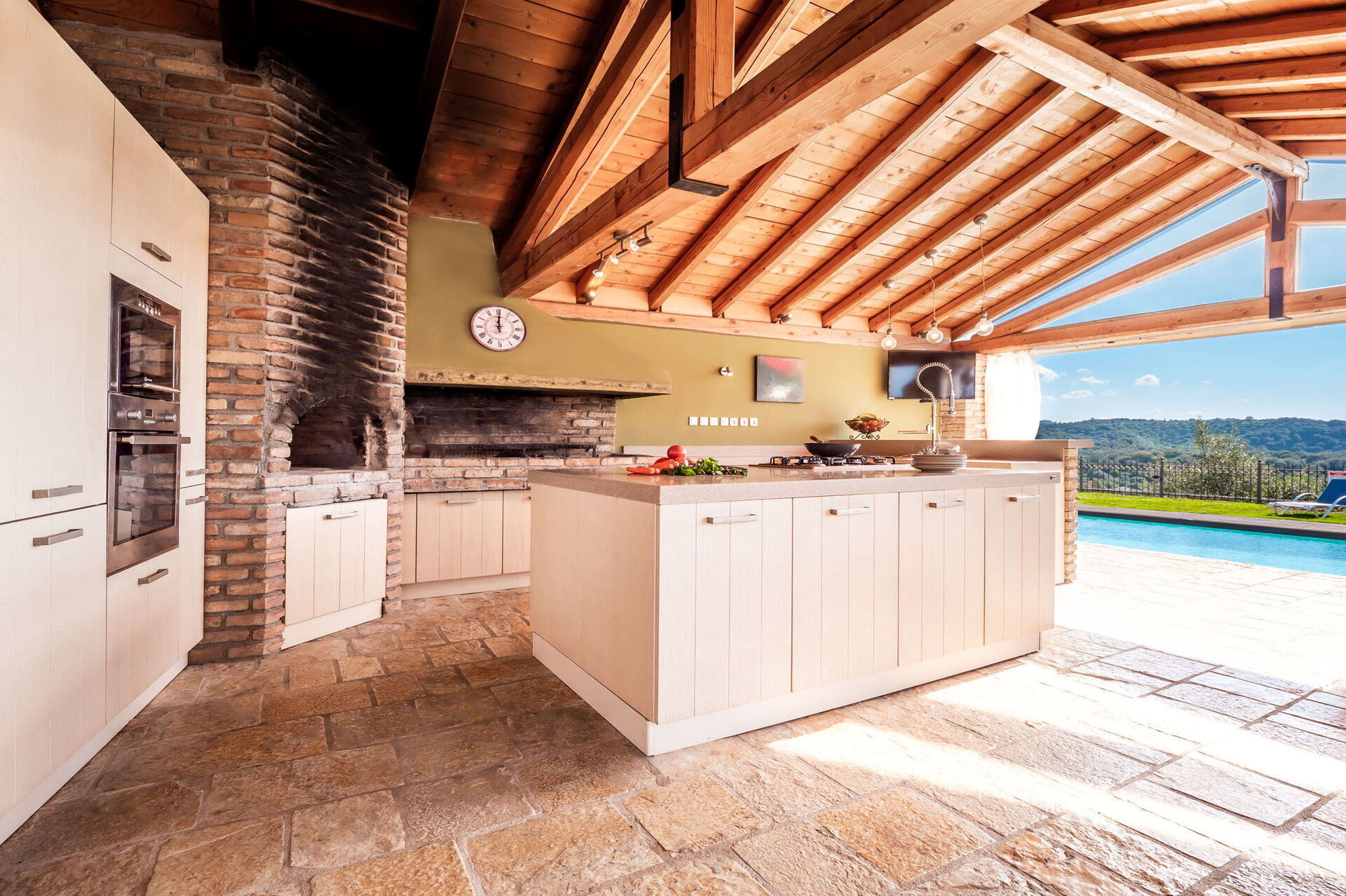 • grande sala esterna privata e attrezzata con cucina, barbecue e forno a legna