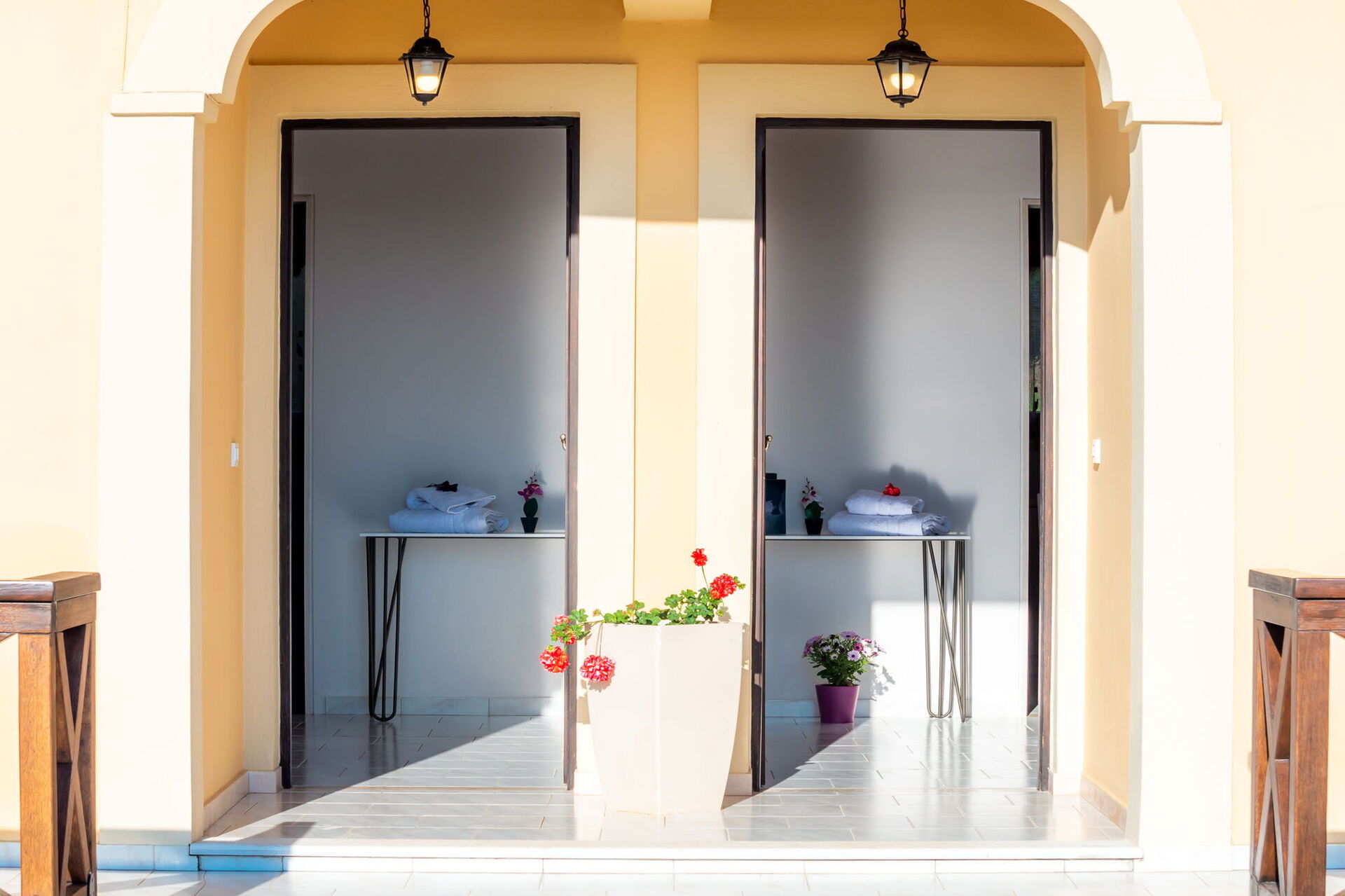 Grazie ai suoi panoramici e ben attrezzati spazi esterni è perfetta per rilassarsi e per godersi il sole di questa fantastica isola greca.