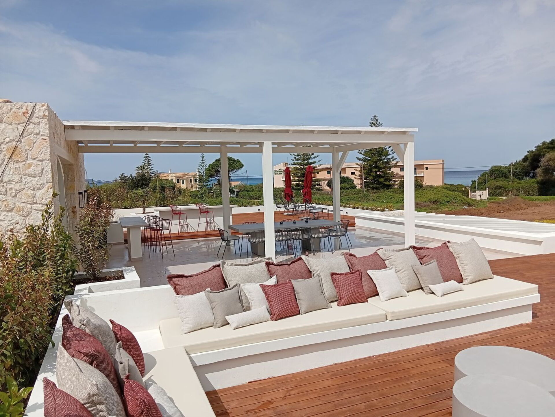 Le panoramiche zone esterne offrono numerose aree comuni e permettono agli ospiti di trascorrere un piacevole soggiorno in famiglia o tra amici, rilassandosi nell’ ampia zona piscina o nel magnifico rooftop attrezzato con cucina e con una fantastica zona pranzo esterna per mangiare all’aperto; una panoramica vista che spazia fino al mare e su fantastici tramonti sarà la vostra cornice per indimenticabili momenti durante la vostra vacanza in Grecia.