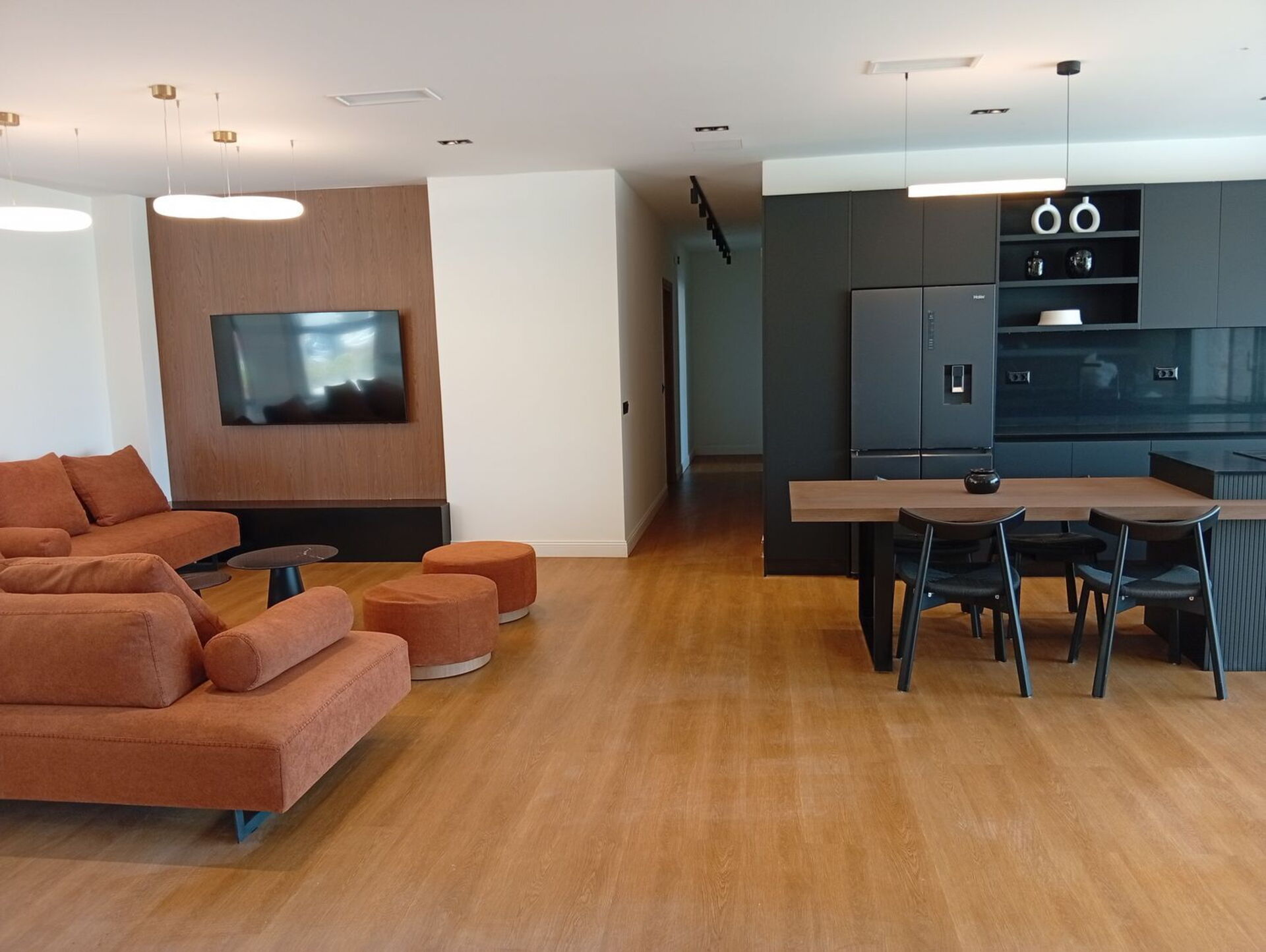 - ampia e luminosa zona giorno composta da soggiorno e smart TV, zona pranzo e cucina ben attrezzata (forno, freezer, frigorifero, lavastoviglie, cantinetta frigo per vini, macchina da caffè espresso, bollitore, tostapane)