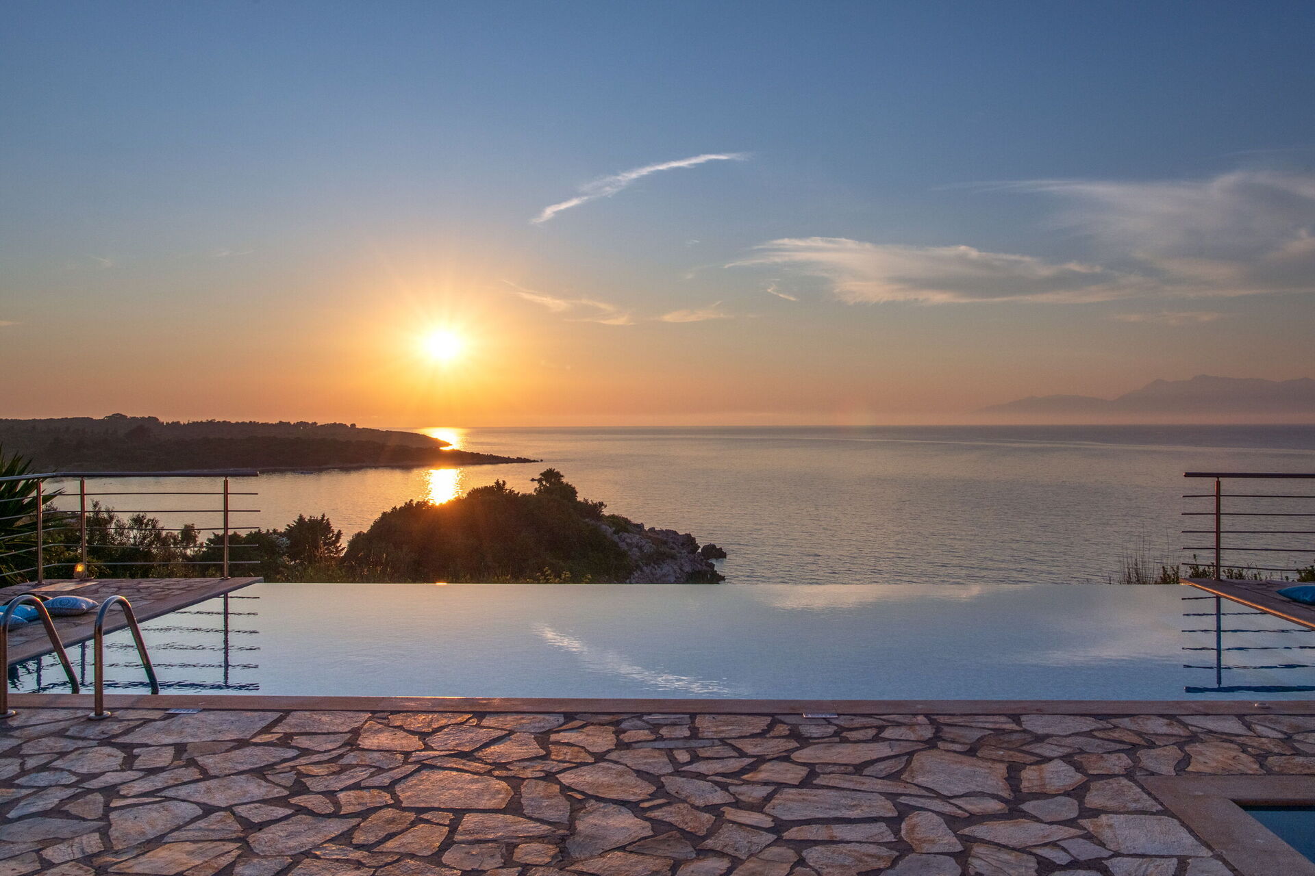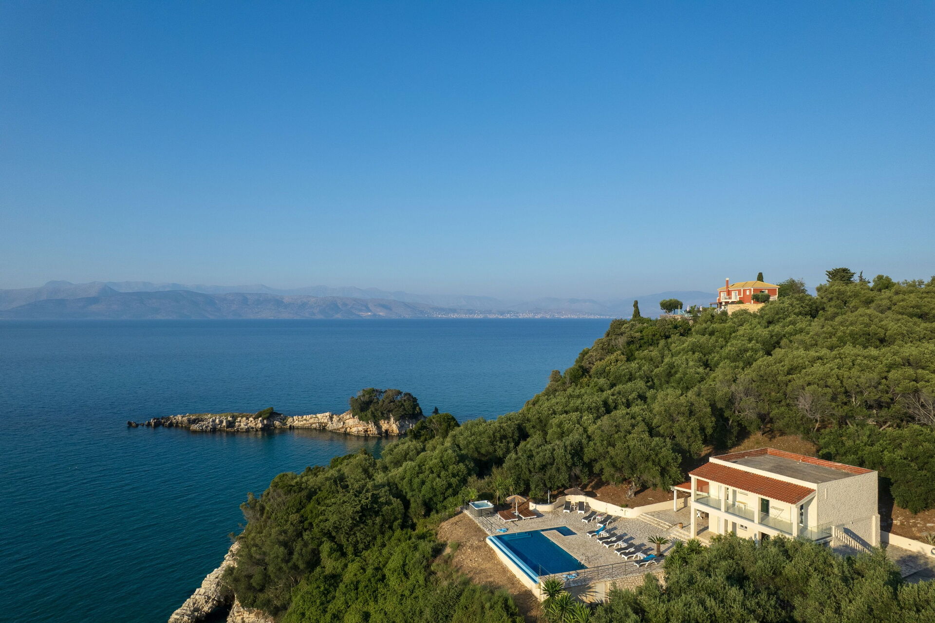 The first impressions of the Villa are the stunning views over the Ionian Sea to Albania and also over the lagoon towards north west Corfu. The sunsets are amazing.