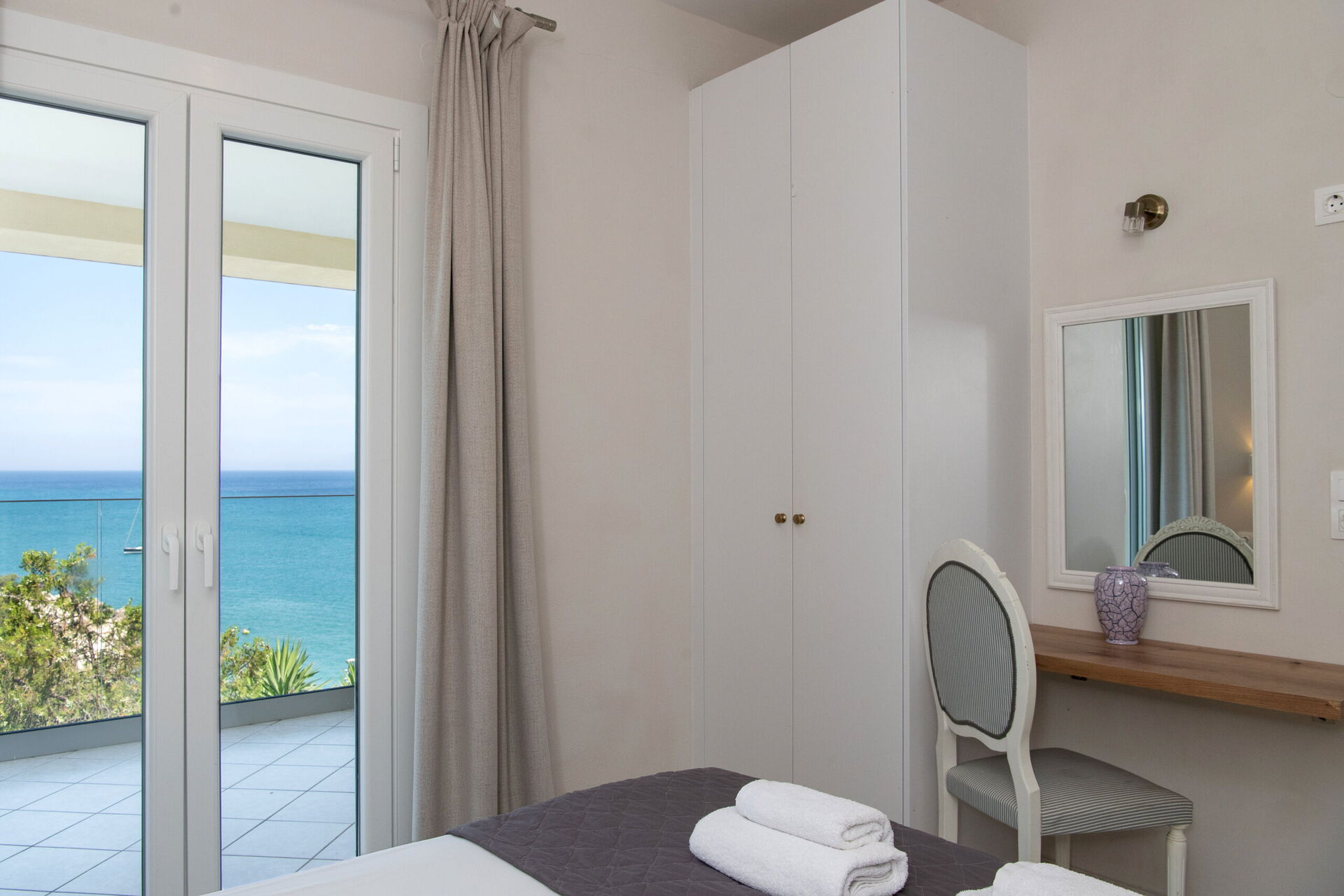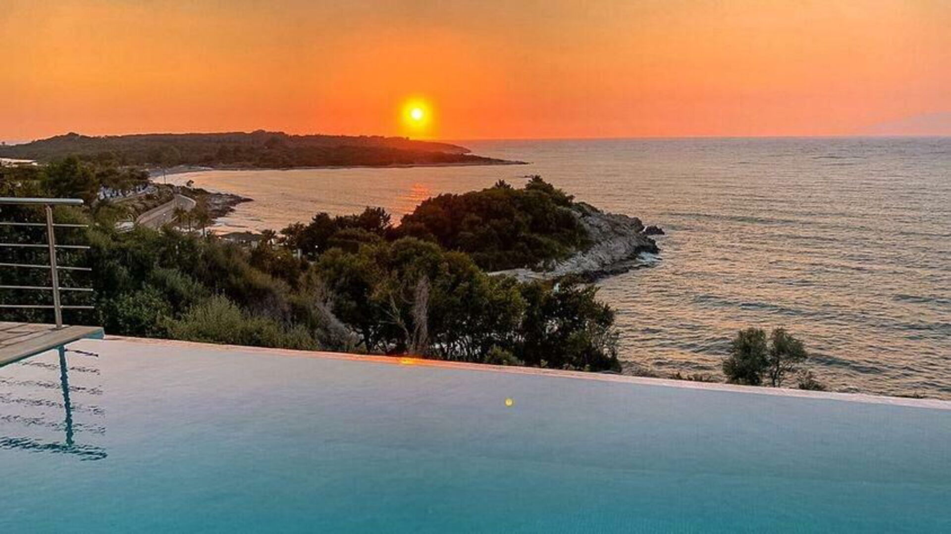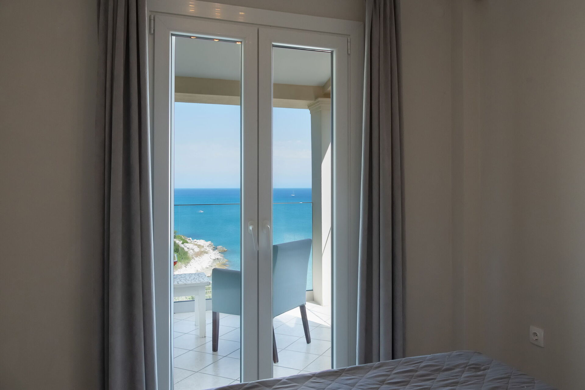 It is set in such a gorgeous setting with the most spectacular view of the bright blue sea and shadows of mountains a distance away.