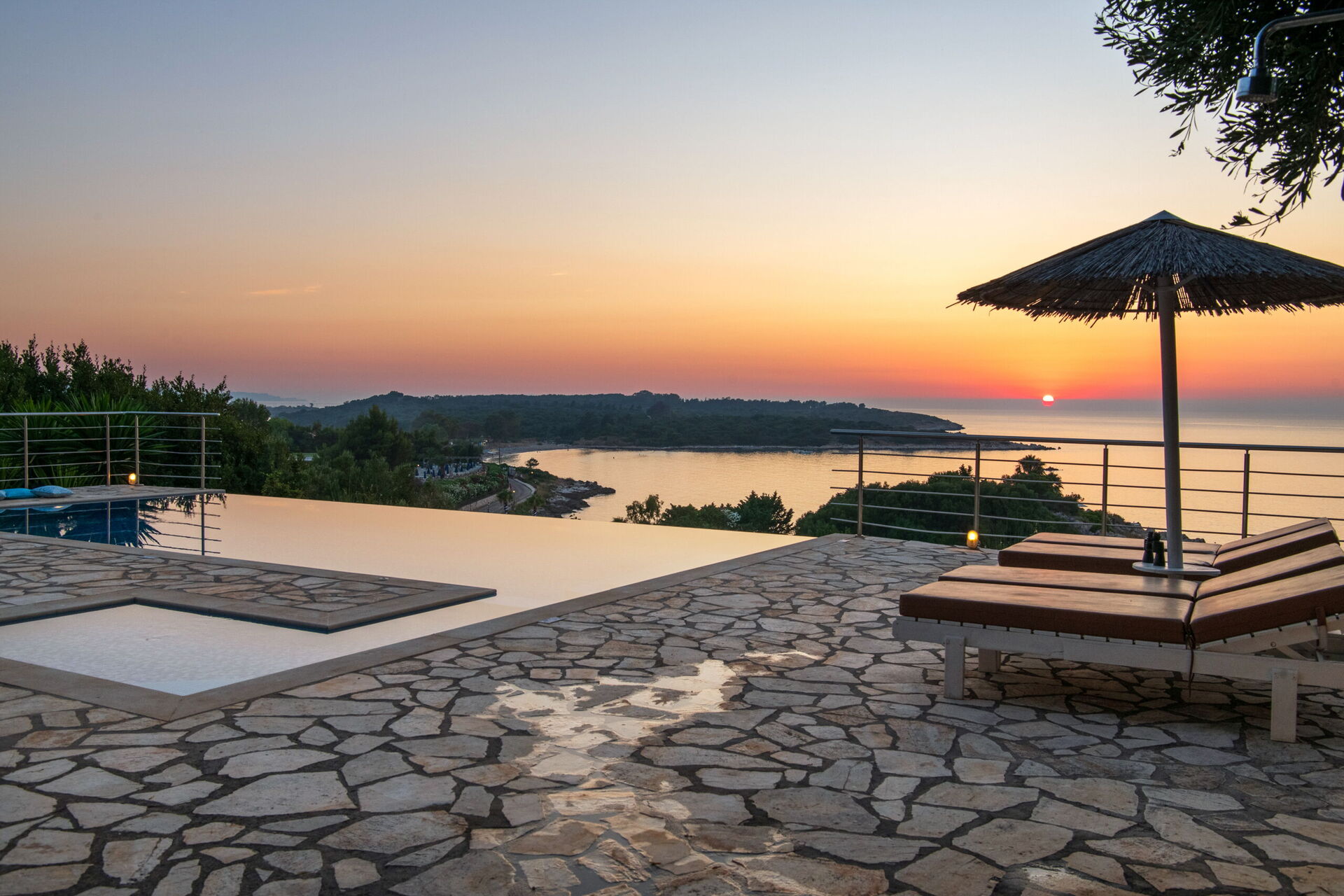 L'intera villa per vacanze, rifinita ed arredata secondo i più alti standard dai proprietari, gode di una vista panoramica estesa sul mare e il tramonto.