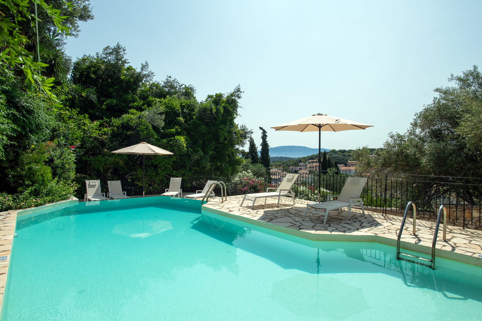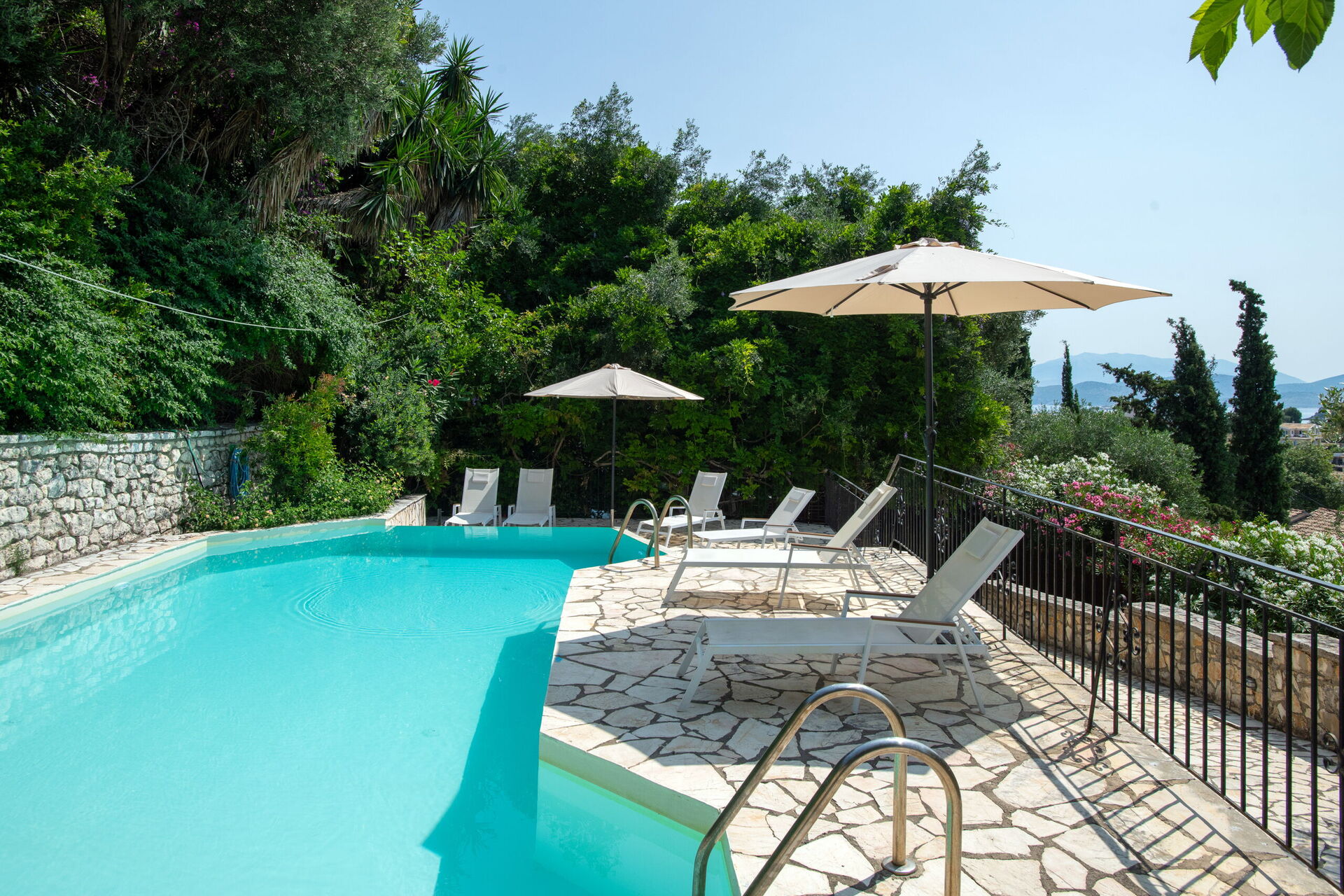 Overall we had a nice stay - Kassiopi is lovely, pretty, close to nature and lots of good restaurants. Staff responded quickly to all queries. The house was spacious, pretty and a good location but felt like we paid too much: - Needs more proactive maintenance. E.g. the aircon unit in one bedroom leaked water all over the floor. When we noticed the next morning, we told them and they were quick to respond but it took over a day to find someone to fix it. Another unit had had a bottle placed over the end for some time which shouldn't have been there. On the last evening the water stopped working, we let them know the next morning based on signs saying to contact them only if the outage was longer than 4 hours - which resulted in leaving without being able to shower the last day. - Some of the pool paint came off while using it so we got blue skin after using the pool - The kitchen was equipped with essentials but not more - didn't have 6 dinner plates for instance