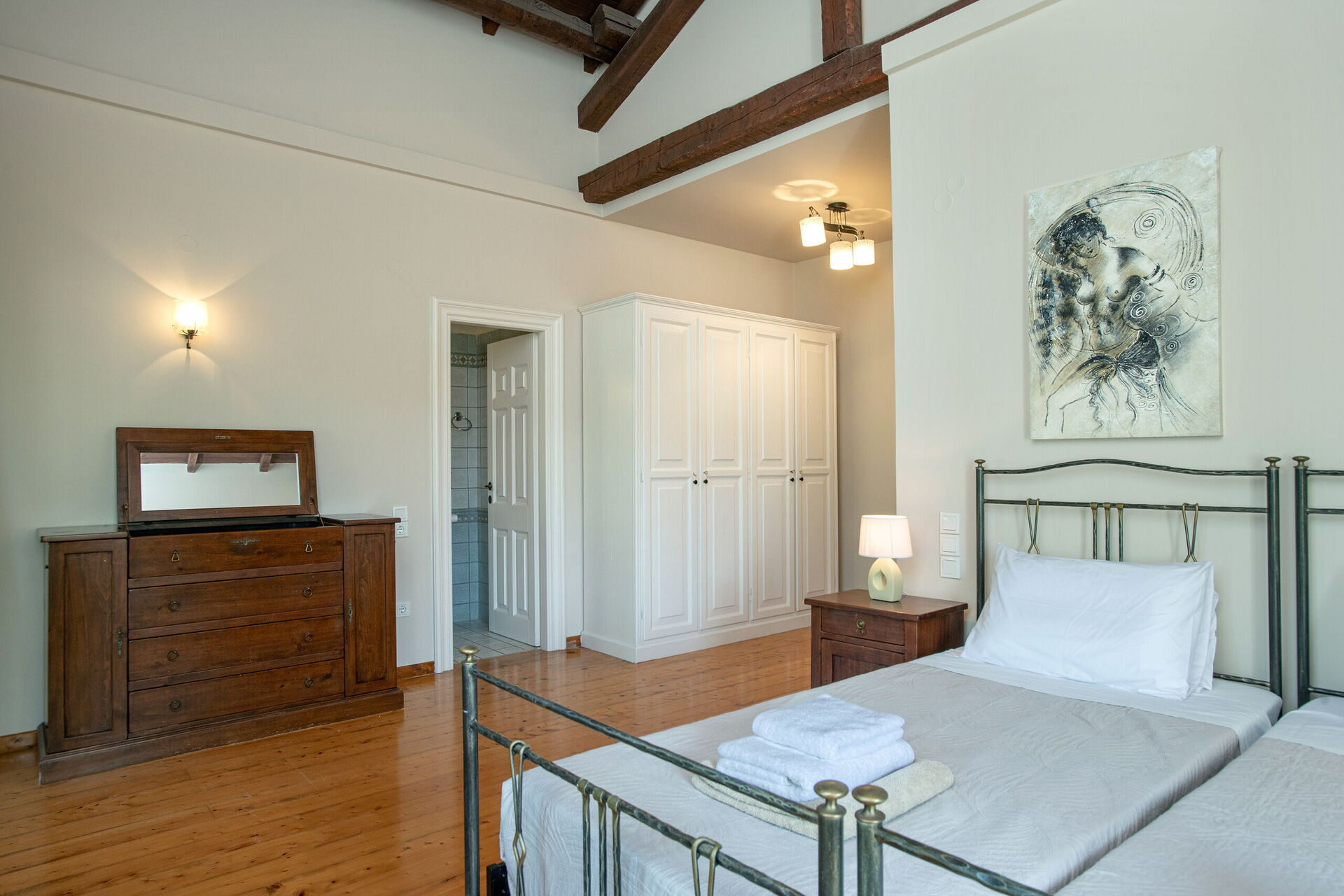 Gli interni della villa sono stati arredati con cura per garantire il massimo della comodità agli ospiti che vi soggiornano. Grazie alle sue 3 camere da letto, Villa Moyria può comodamente ospitare fino 6 persone in ambienti ampi e luminosi.