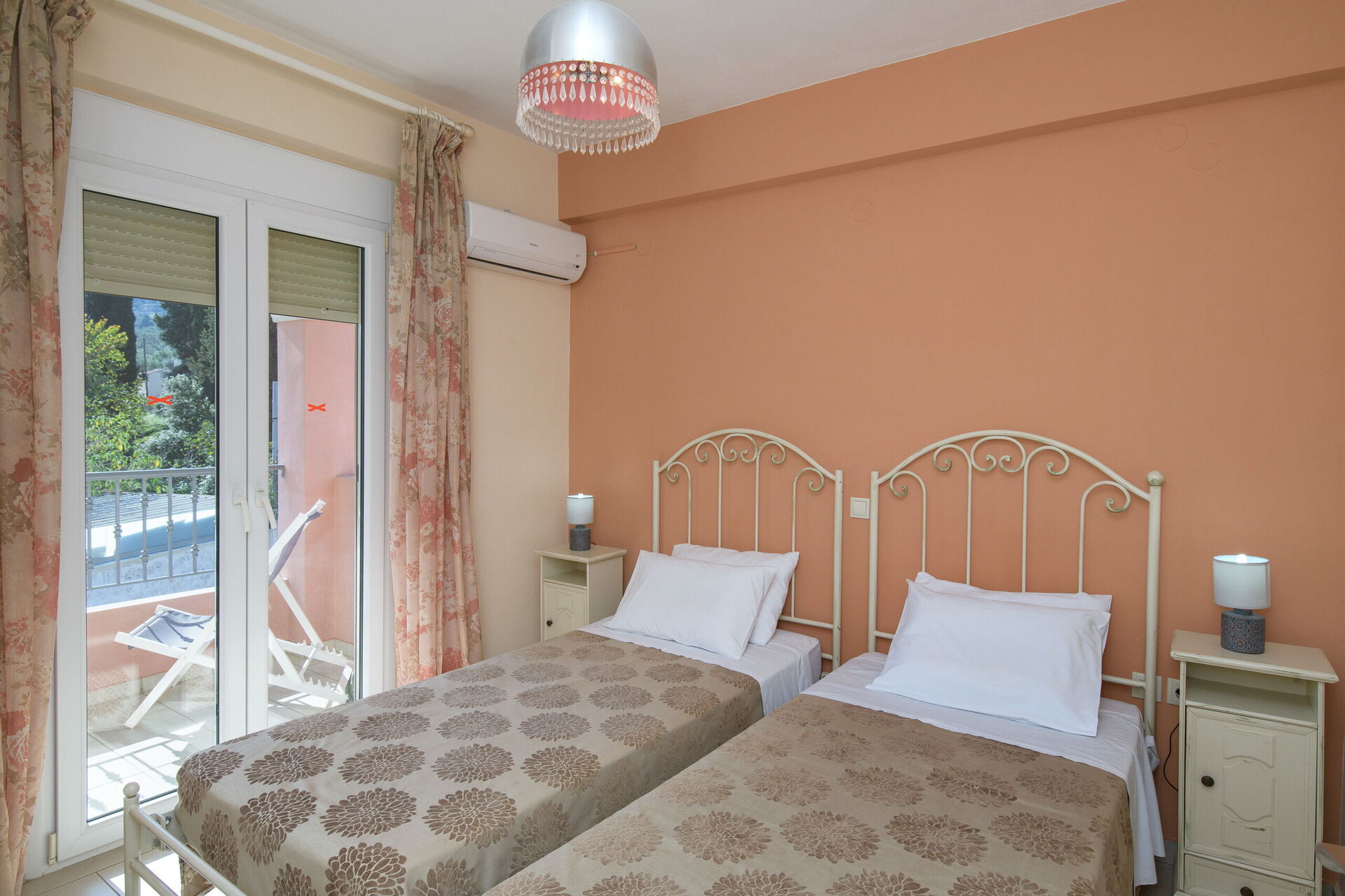 Distanze: mare a 400 metri; Kassiopi (bar, ristoranti e negozi di ogni genere) a poche decine di metri; Acharavi a 12 km, Corfu Town (aeroporto) a 36 Km, Palaiokastritsa a 38 km.