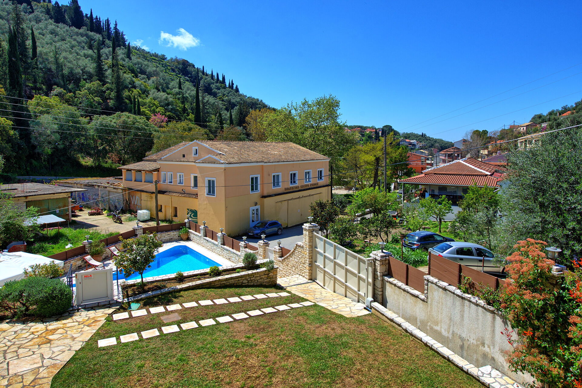 This is a spacious and comfortable house, with suitable equipment for a family, a wonderful and inviting swimming pool and a great location in the heart of a village in the mountains of Corfu. What we didn't like was the grass that was soaked in water even though it wasn't raining and the wifi didn't work most of the time.