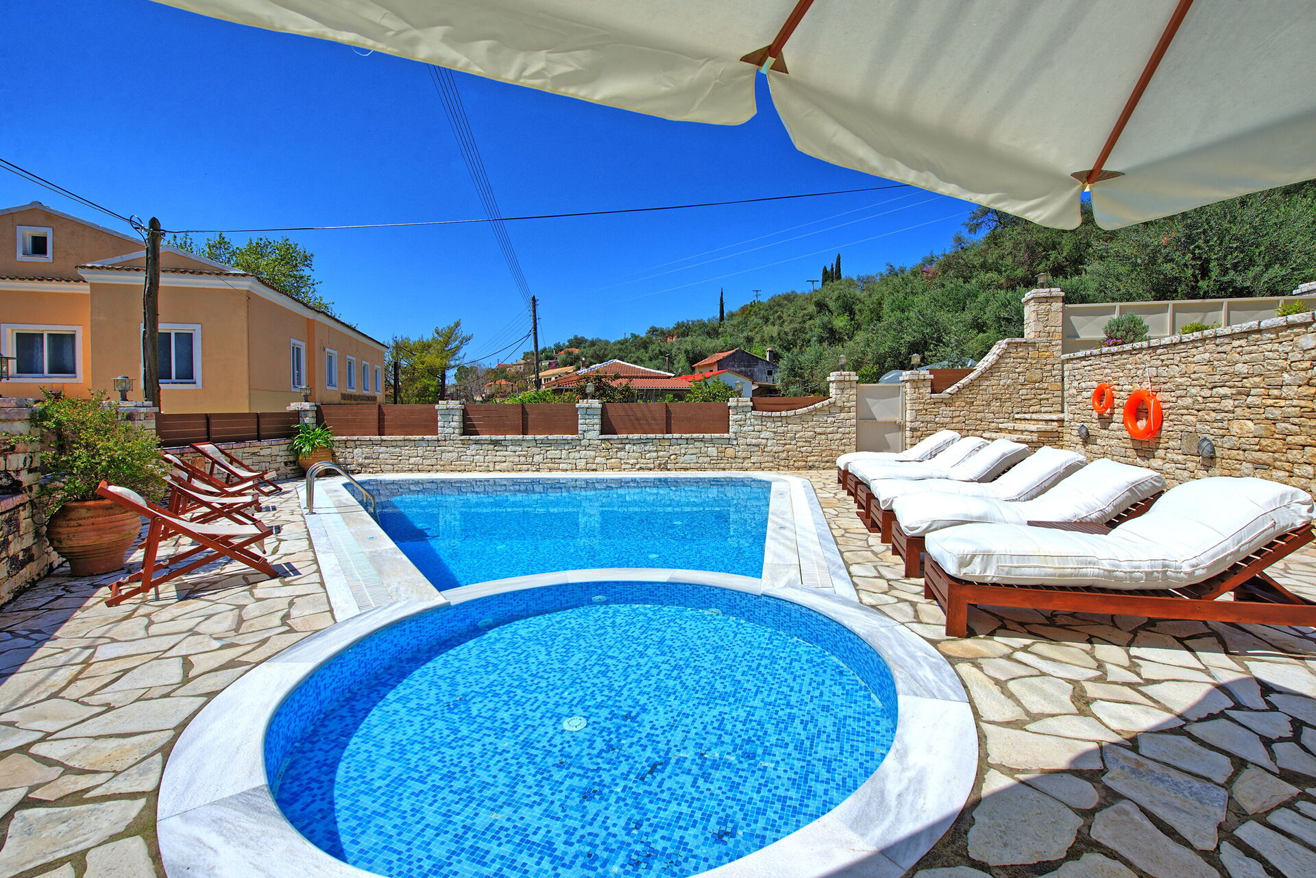 Villa Angie è una bella villa con piscina privata in affitto nel piccolo paese di Nymfes a Corfù, in Grecia.