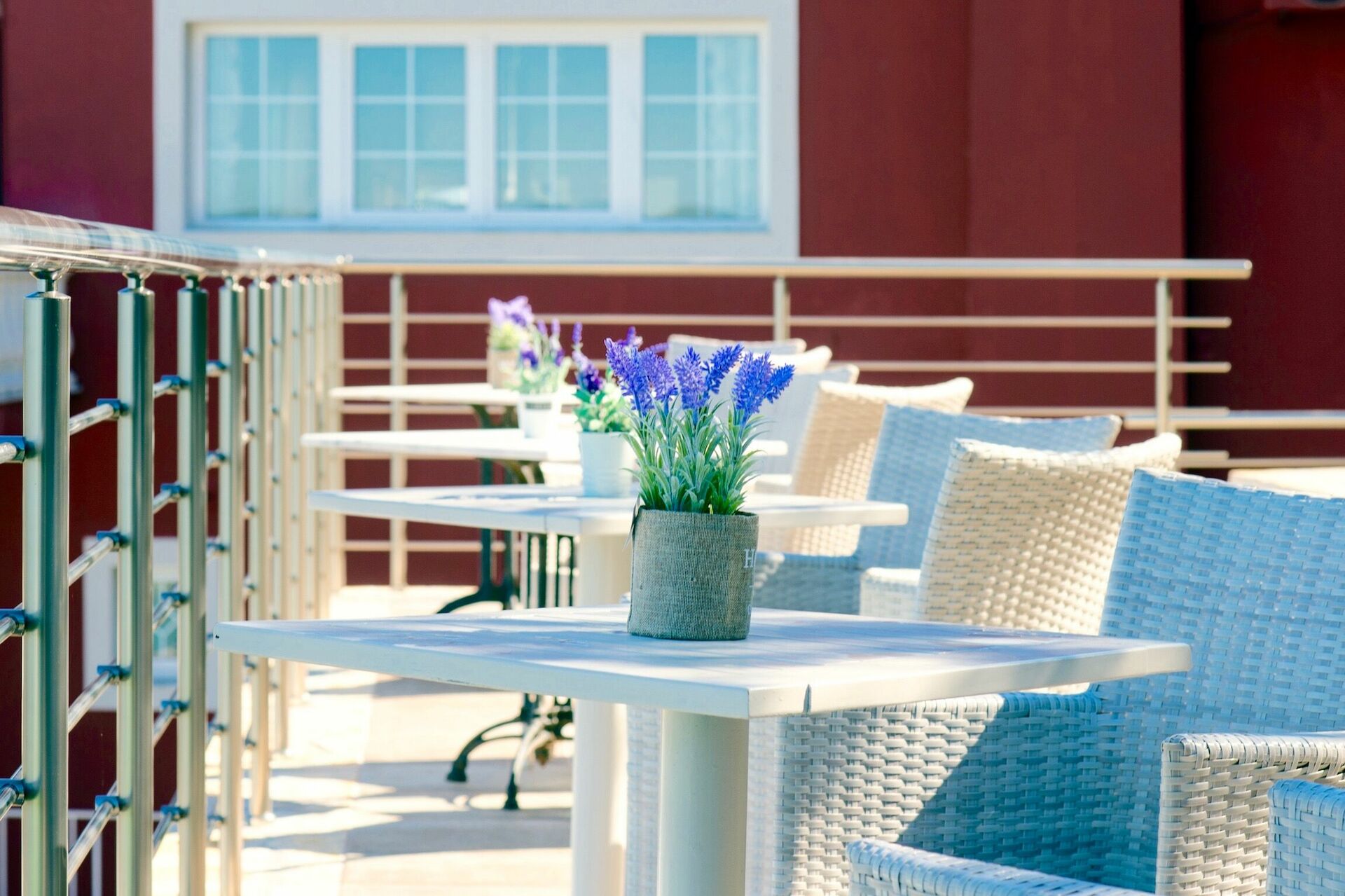 All'esterno sono presenti delle splendide terrazze panoramiche e attrezzate con i lettini dove potersi rilassare accarezzati dalla brezza costiera.