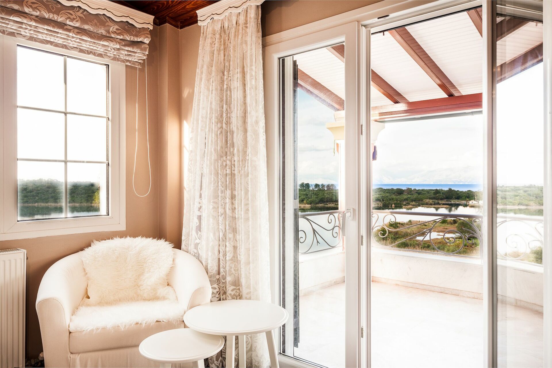 The northern Corfu, and area where the house is located is perfect. It is about 900m from a very nice sandy beach, and it overlooks a lake, a fishing area, where you can always buy fresh fish, and Prokletije mountains in the distance, which always paint a different landscape in mornings and evenings. The nearest touristic village is Kassiopi, about 10 minutes of driving so the house is isolated enough to provide peace and calm to its guests, but many nice beaches are not far away – Sidari is about 20 minutes of driving, Paleocastritsa 45 mins, Corfu city also 45mins. There are many activities offered right there – Horse riding, bike rentals with beautiful tours around the lake and nearest sandy beaches. At 5mins walking, there is a shop with everything you might need on daily basis – Lola shop and a nice beach bar to the right of the main beach, called Pyramid. In Acharavi, the nearest village – 5 mins driving from the house, you can find bigger supermarkets, but also diving and boat rentals, but I can recommend boat rentals in Sidari or Paleocastritsa.