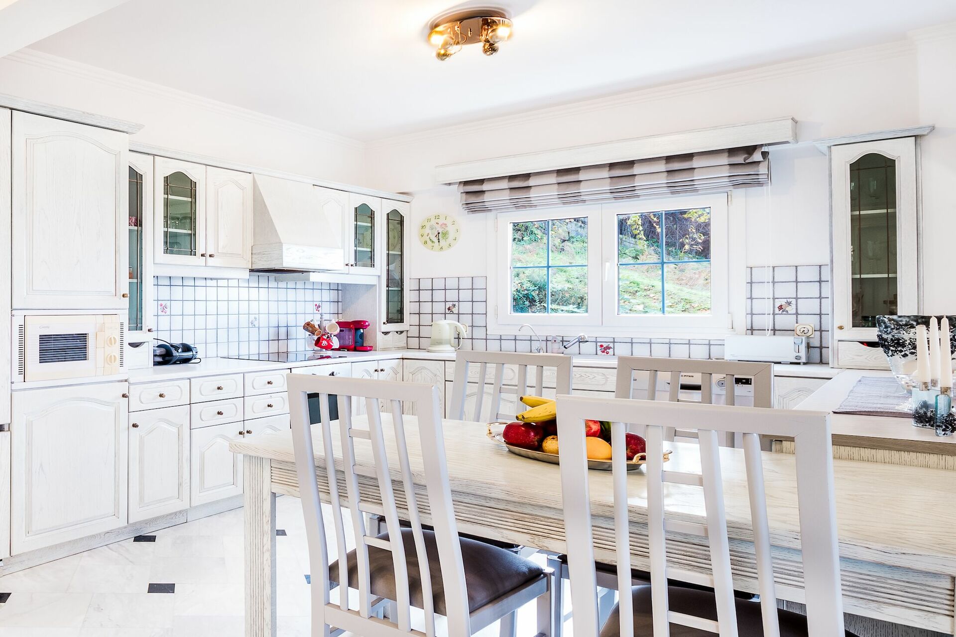 This is an amazing villa. It is a unique offer because of its size and concept. There are 4 independent apartments, with their own kitchen and baths. There is also a large living room as common space, and every other room has access to balconies, with wonderful view. The most valuable part of the house is the pool kitchen, barbecue, and common space near the pool, ideal for diners and breakfast. This is ideal for up to four families, it offers as much comfort and privacy as possible, the best of both - the world of hotels and private accommodation. Every apartment contains a big screen TV (in case you need a TV in such rich environment with natural beauties). All amenities that you can possibly need are there, from the hair dryers to the coffee-machines. Bed sheets and towels are changed every 4-5 days, cleaning is done regularly but you can arrange anything with Sofia. Cleanliness is on a highest level. A very nice family that owns the property has thought of each detail, anything you might need, they will certainly make available for you. The photos are not covering all that the house is offering. There is also a small basketball court (We have ran over the basketball with a car, the last day, sorry about that) and a brand new tennis table unit, tennis rackets, balls, playing cards, chess, all barbeque necessities, every little detail is provided for your comfort – amazing.