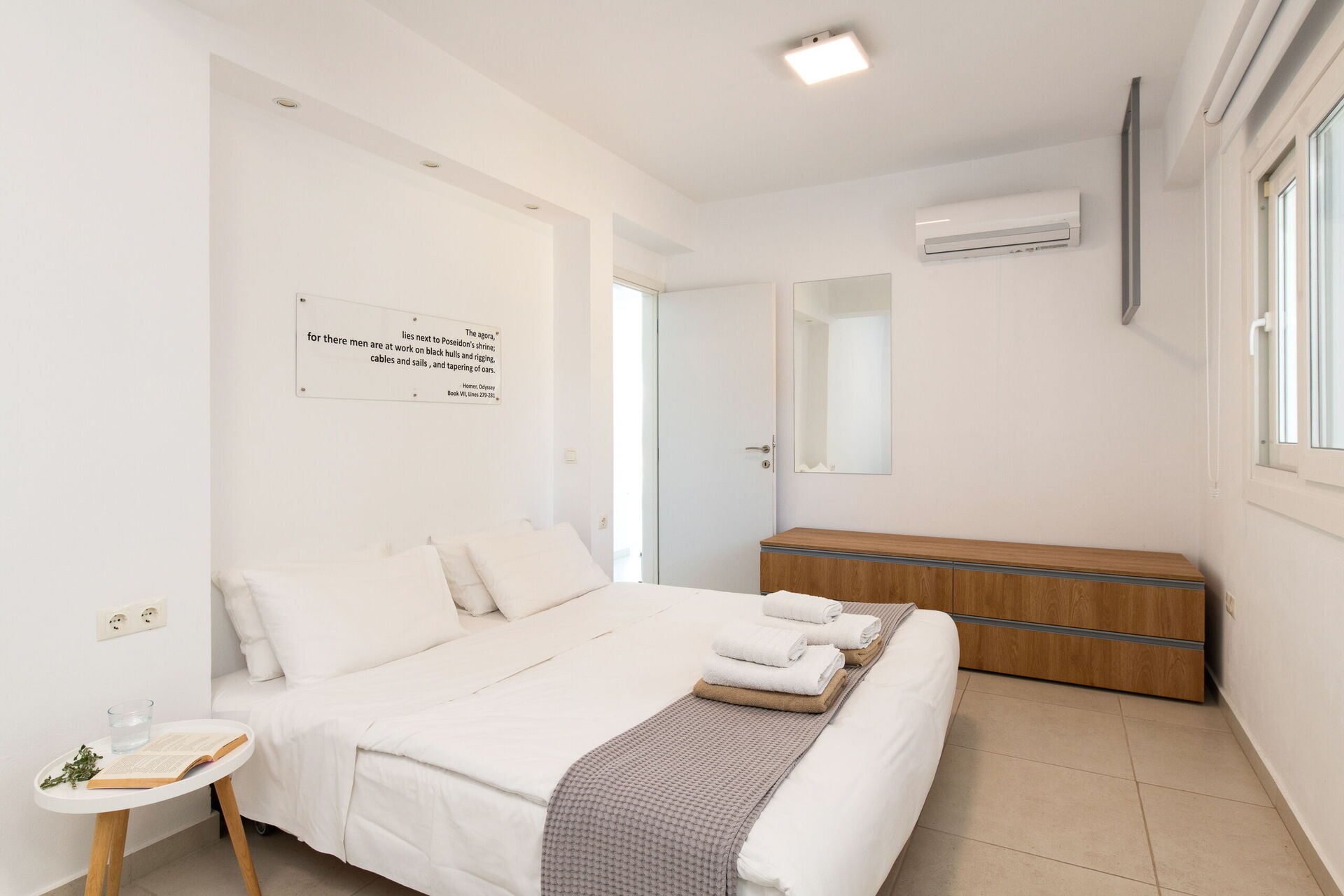 Al suo interno questa panoramica villa è disposta su 2 piani collegati da una scala laterale. Dotata di enormi porte finestre e grandi vetrate Villa Nafsika gode di tutto il sole e la luce che la Grecia può offrire.