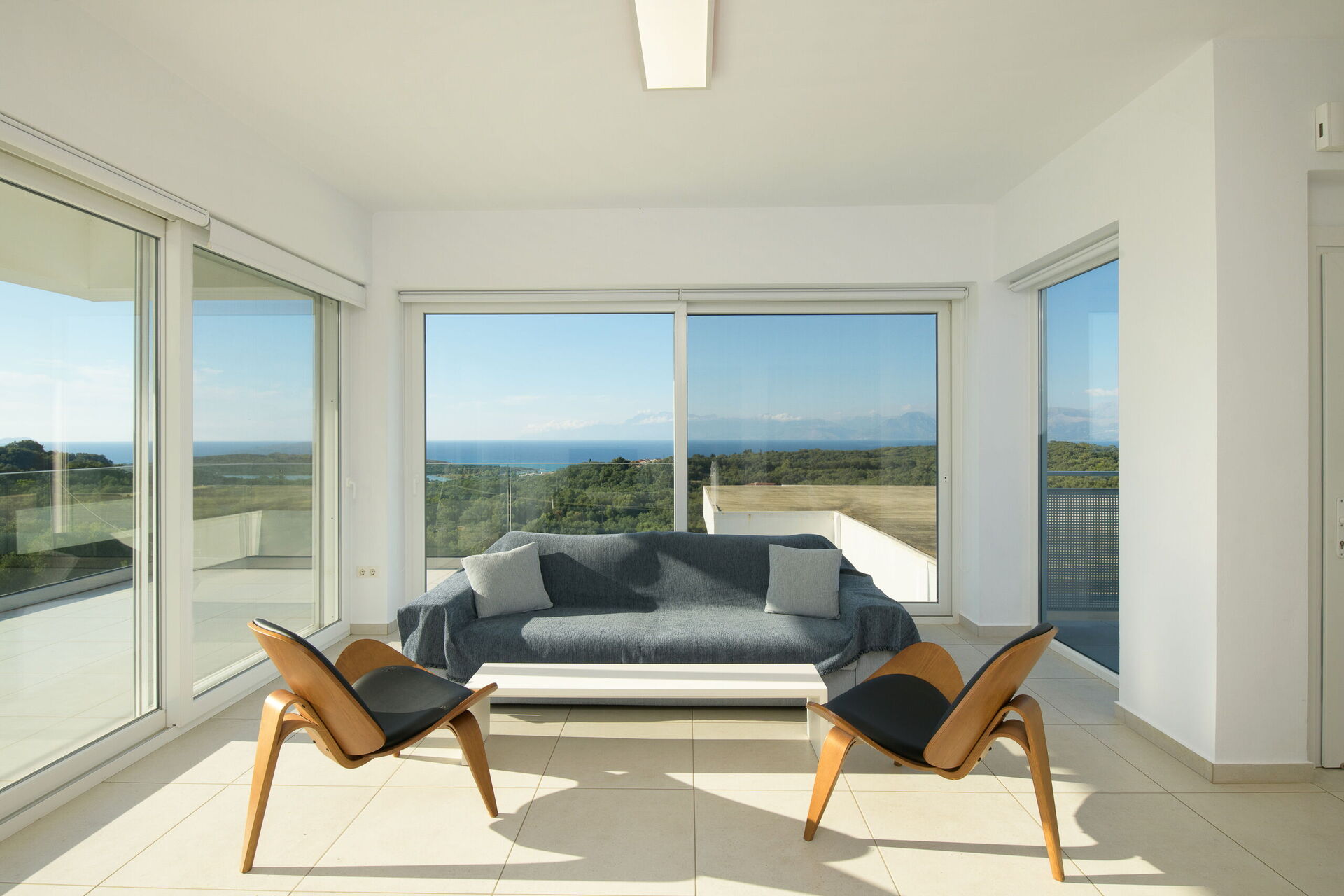 Il piano superiore è identico a quello inferiore, tranne per il fatto che la camera da letto principale ha solo un letto matrimoniale e non un divano letto supplementare. Ampi terrazzi su entrambi i piani offrono una vista magica sul Mar Ionio e sulla costa albanese.