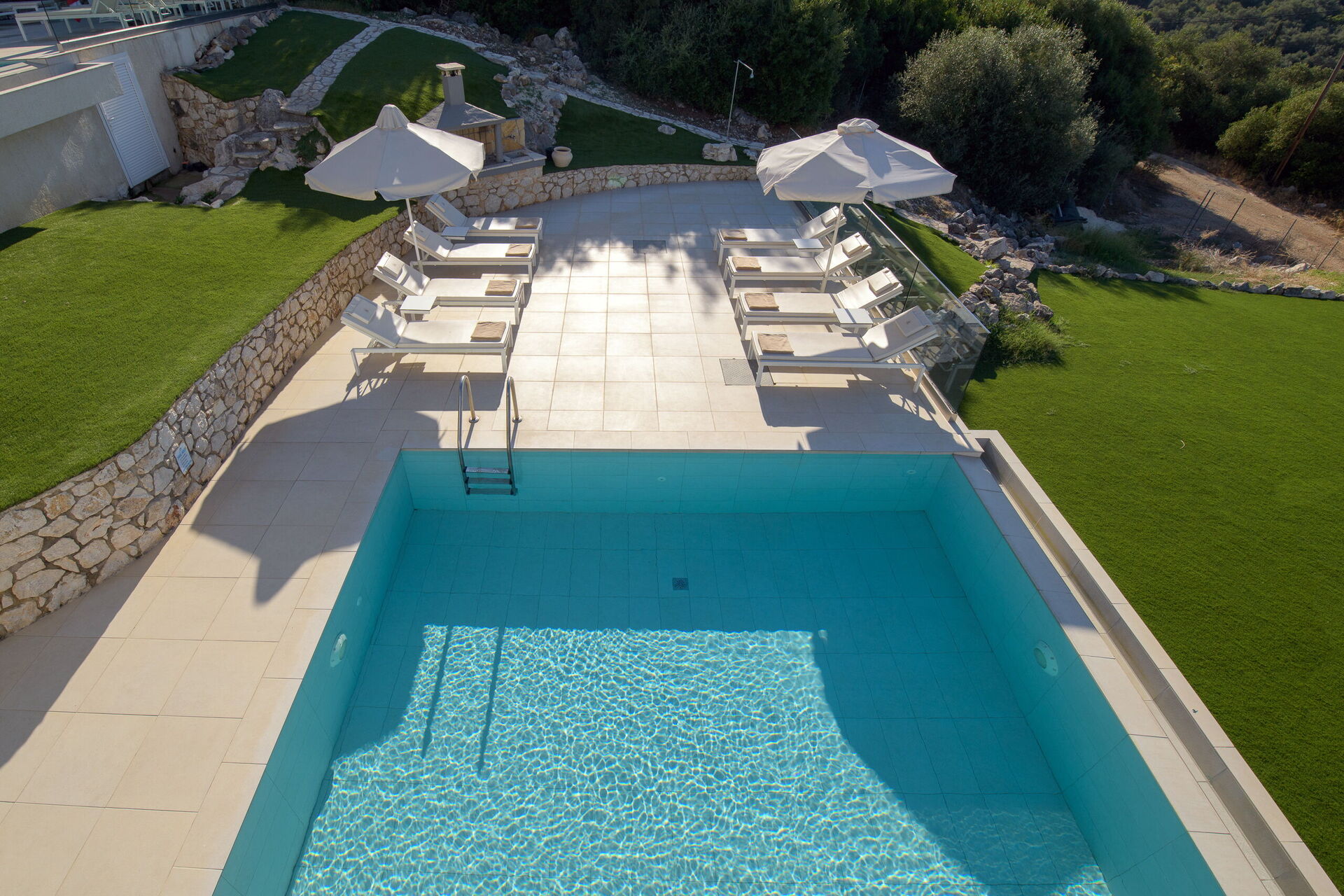 La piscina privata misura 7,5 metri x 5,7 metri (profondità 1,5 m) ed è splendidamente illuminata di notte. Grazie al suo design intelligente, offre un'eccellente privacy ed è il luogo perfetto per godersi un tuffo rinfrescante o un drink ammirando il tramonto sul mare.