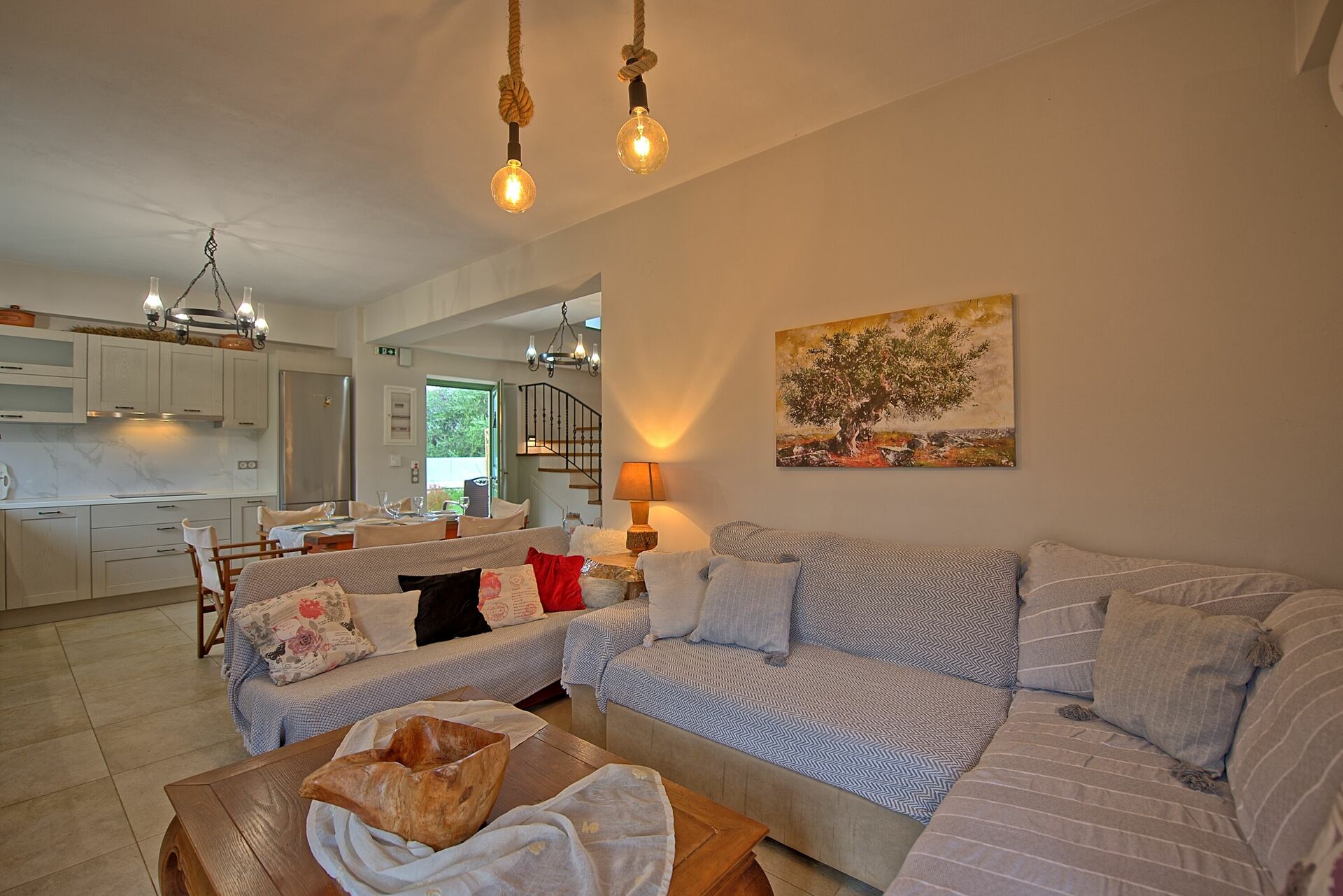 Circondata dal verde questa villa in affitto per vacanze a Corfù può ospitare fino a 6 persone grazie alle sue 3 camere da letto. Gli interni sono stati arredati con gusto e semplicità e sono molto accoglienti.
