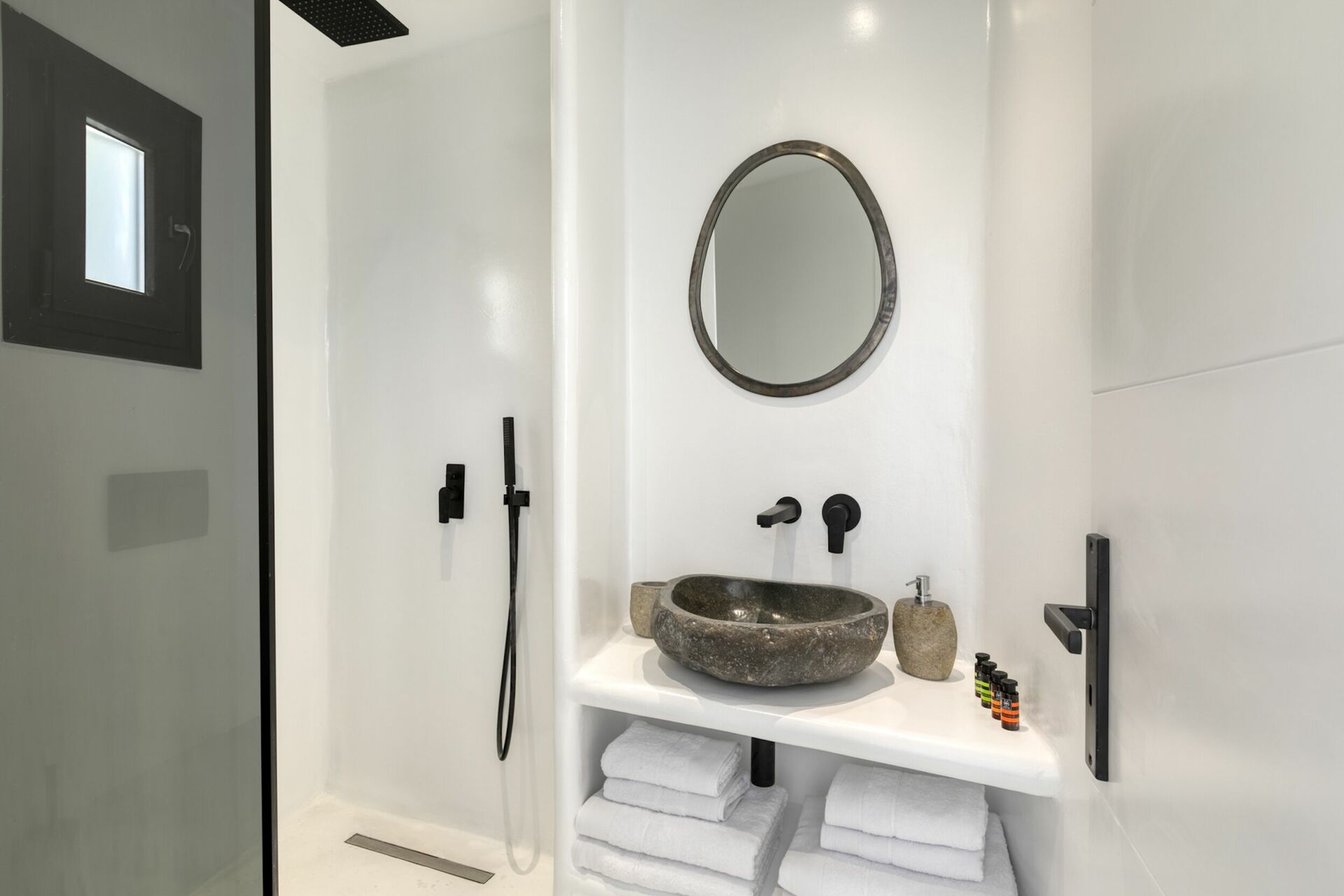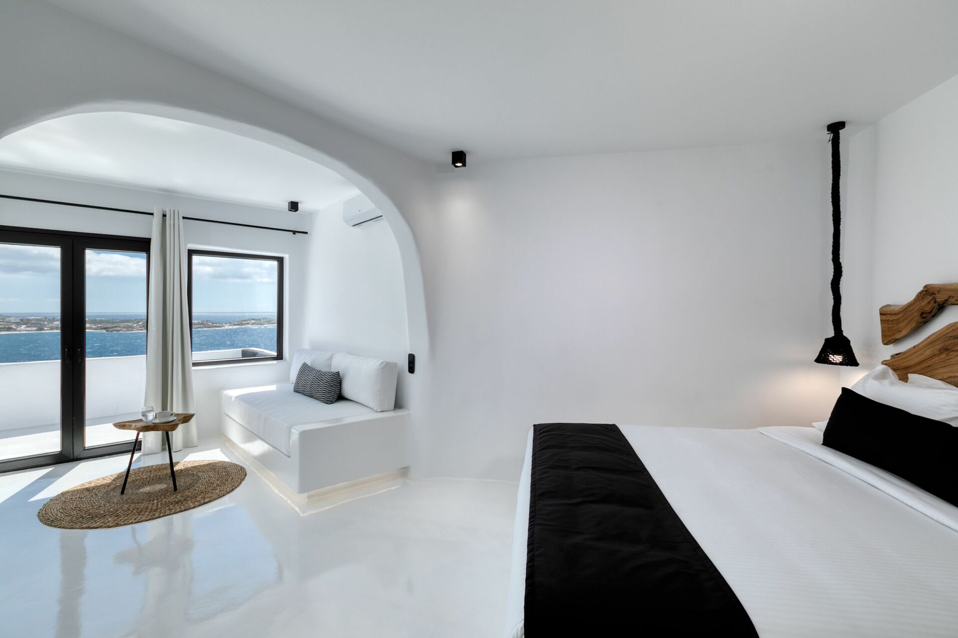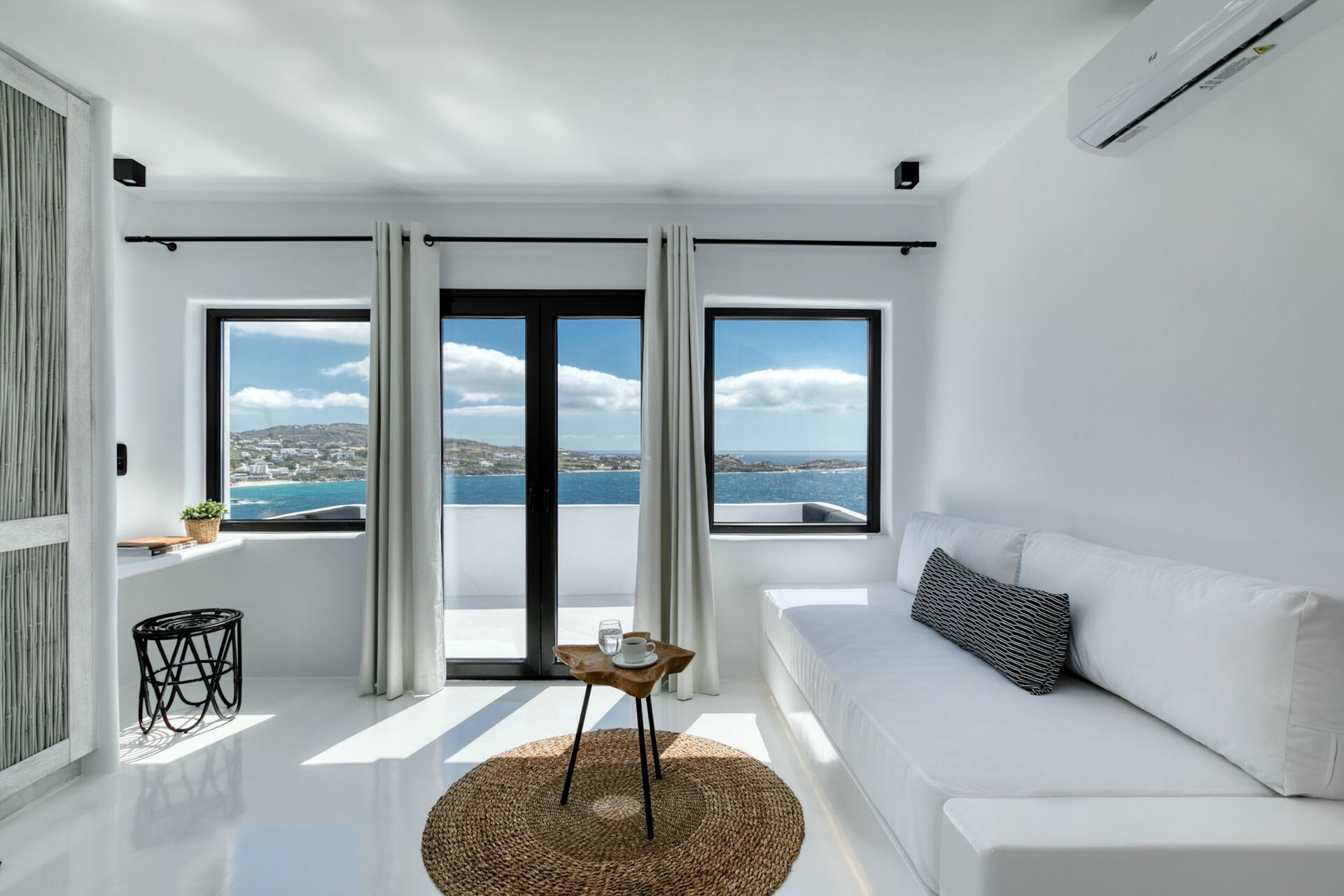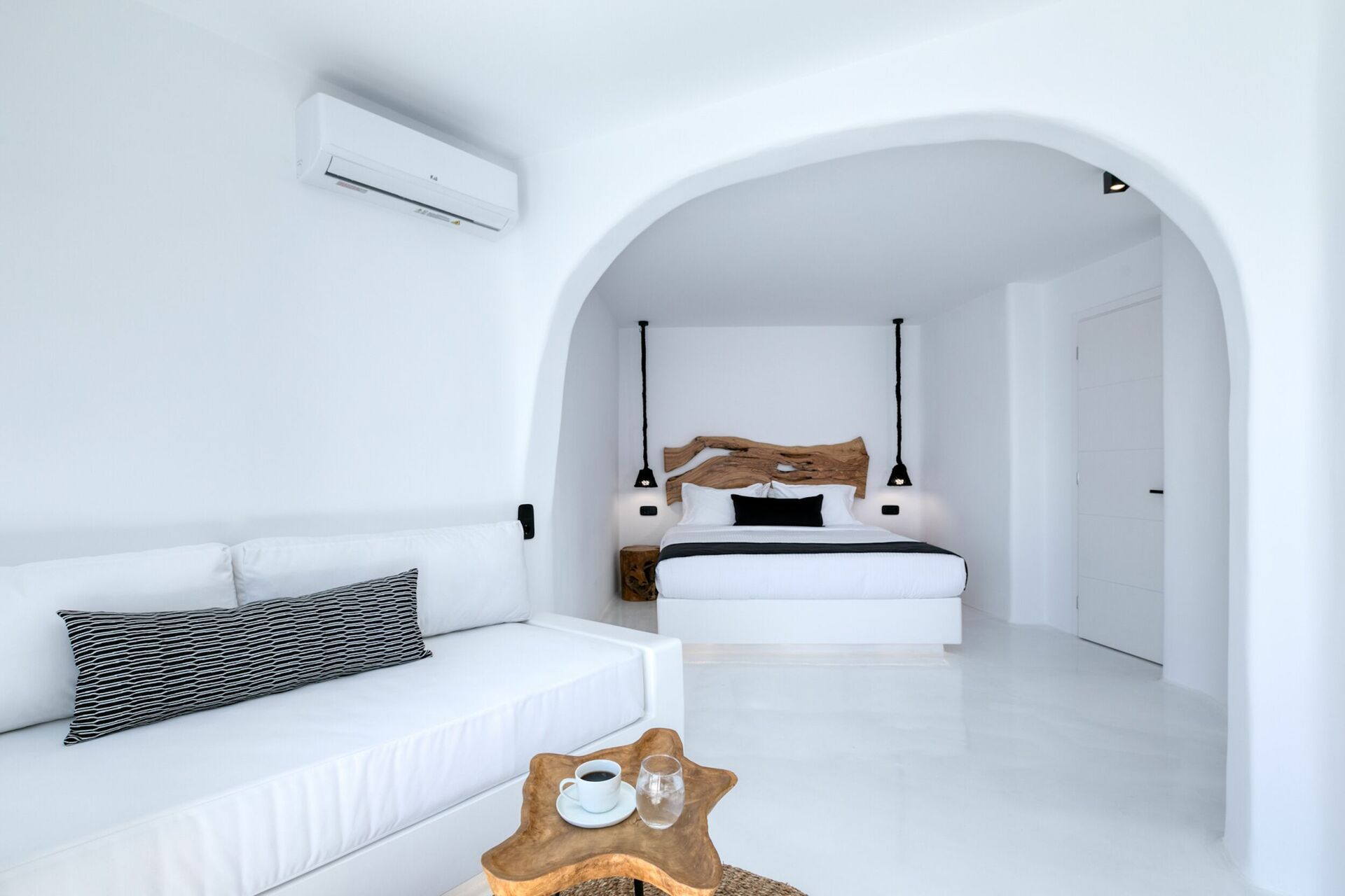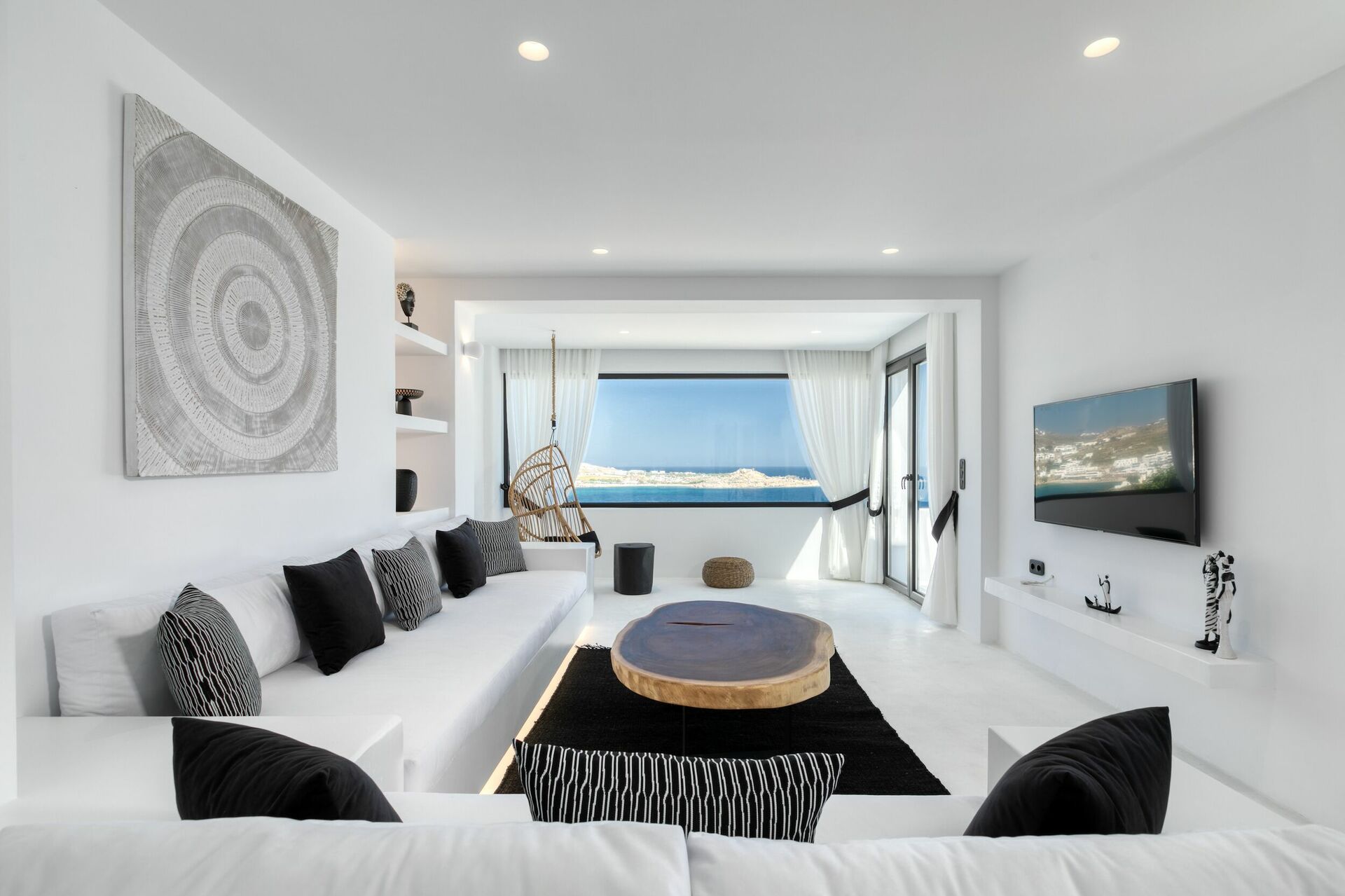 All' interno troviamo un arredamento tradizionale delle Cicladi unito ad elementi moderni per garantire il massimo del comfort.
