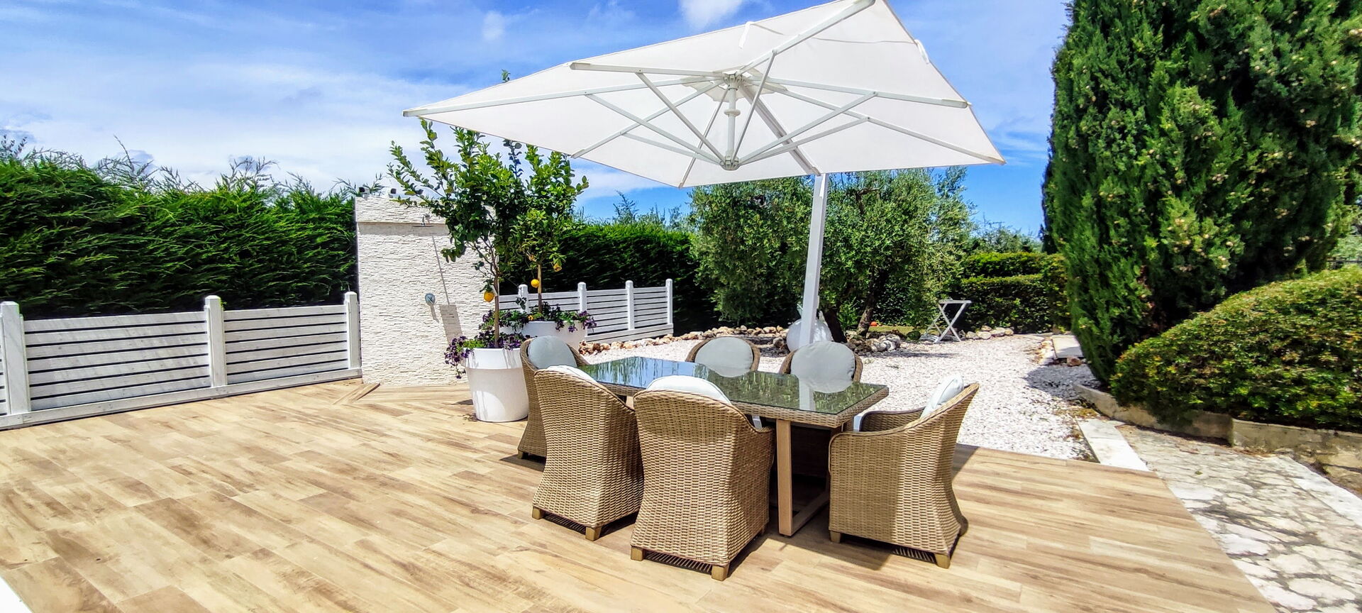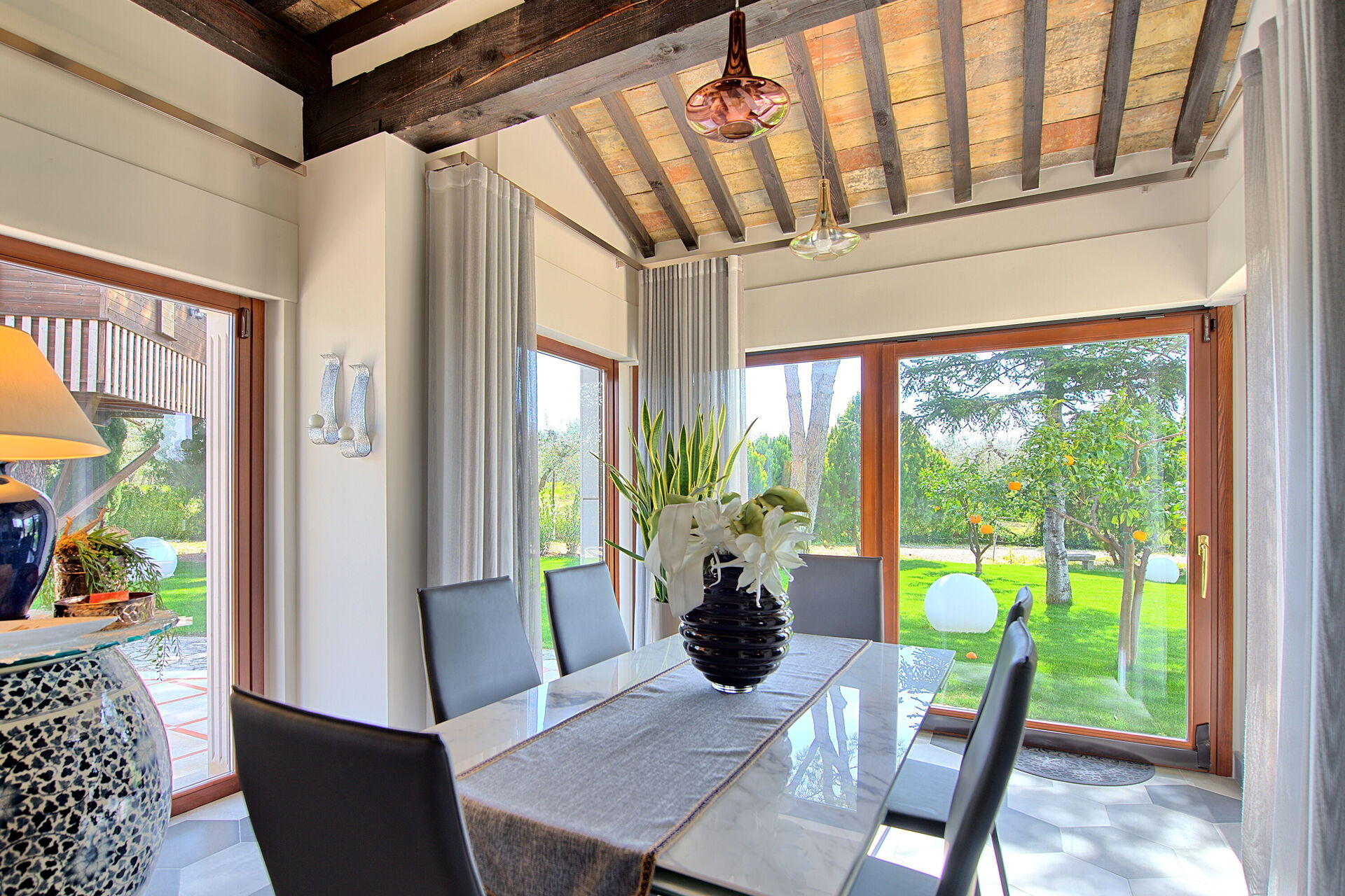 Questa moderna villa in affitto, è stata recentemente ristrutturata ed offre arredamenti ricercati e curati nei minimi dettagli.