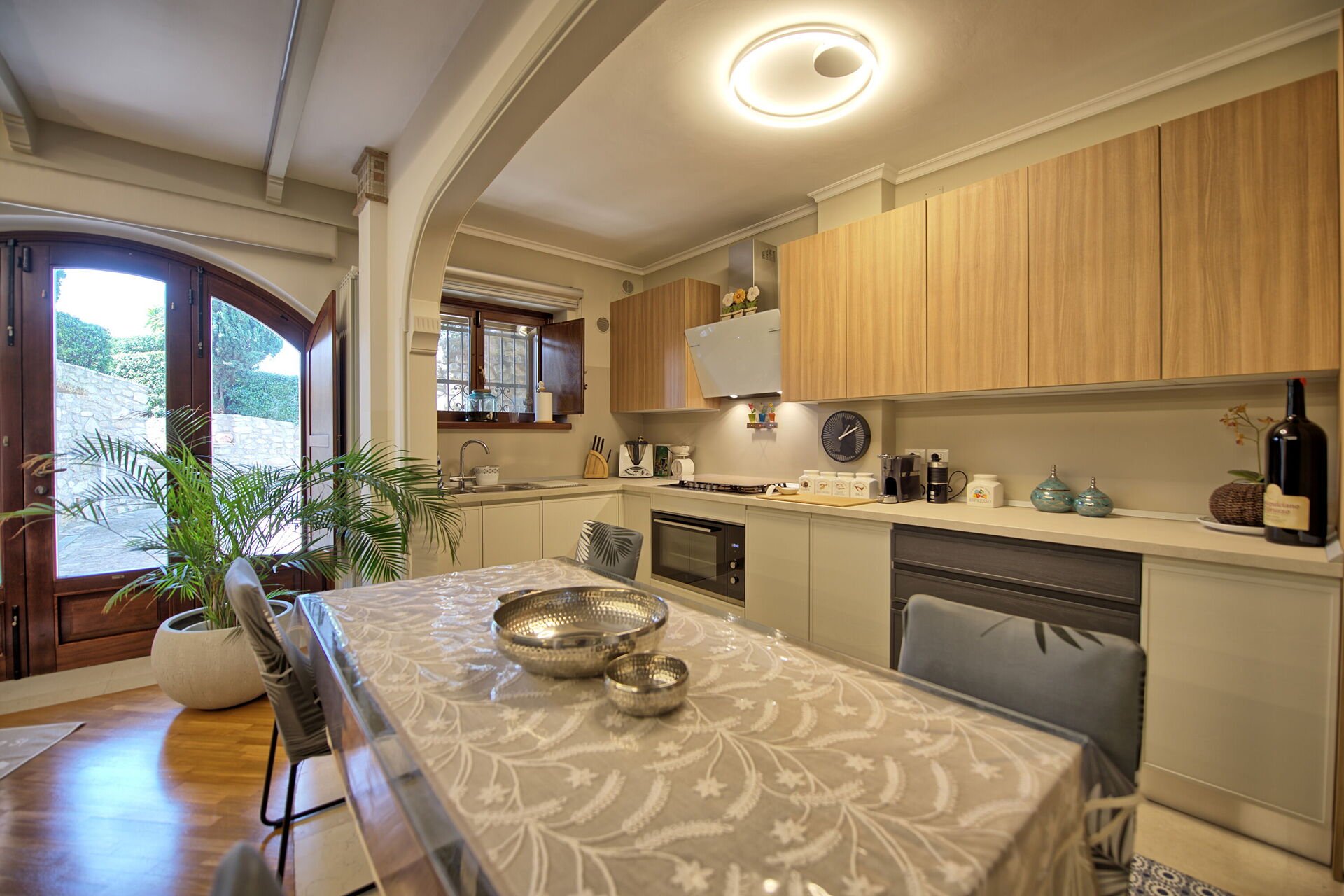 Villa dotata di ogni comfort sia all'interno che all'esterno, con mille spazi e ambienti da sfruttare dalla piscina, al forno, al giardino immenso. Personale sempre cordiale, disponibile e mai invadente. Consigliatissima!