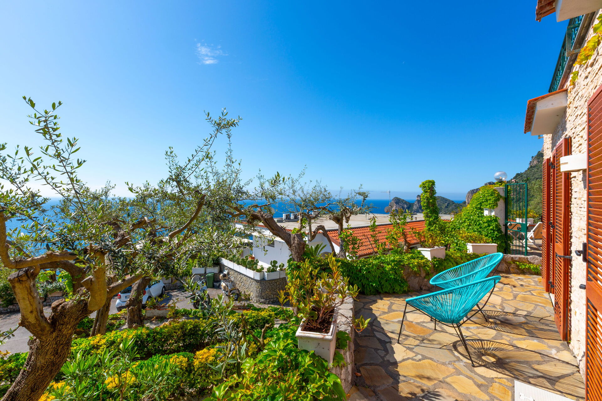 Come tutte le case della Costiera si sviluppa su vari livelli e da ognuno di questi si può ammirare un fantastico panorama: uno spazio esterno ben curato (costituito da terrazzamenti pavimentati) dispone di una piscina riservata all'uso esclusivo degli ospiti e di spazi attrezzati per prendere il sole e mangiare all'aria aperta.