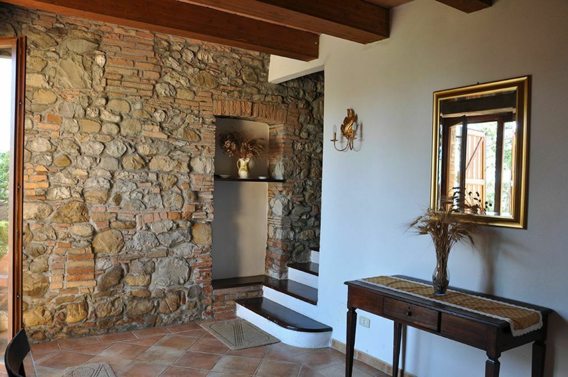 Piano Terra: salotto con camino e zona pranzo, cucina, bagno con doccia. Spazio esterno attrezzato