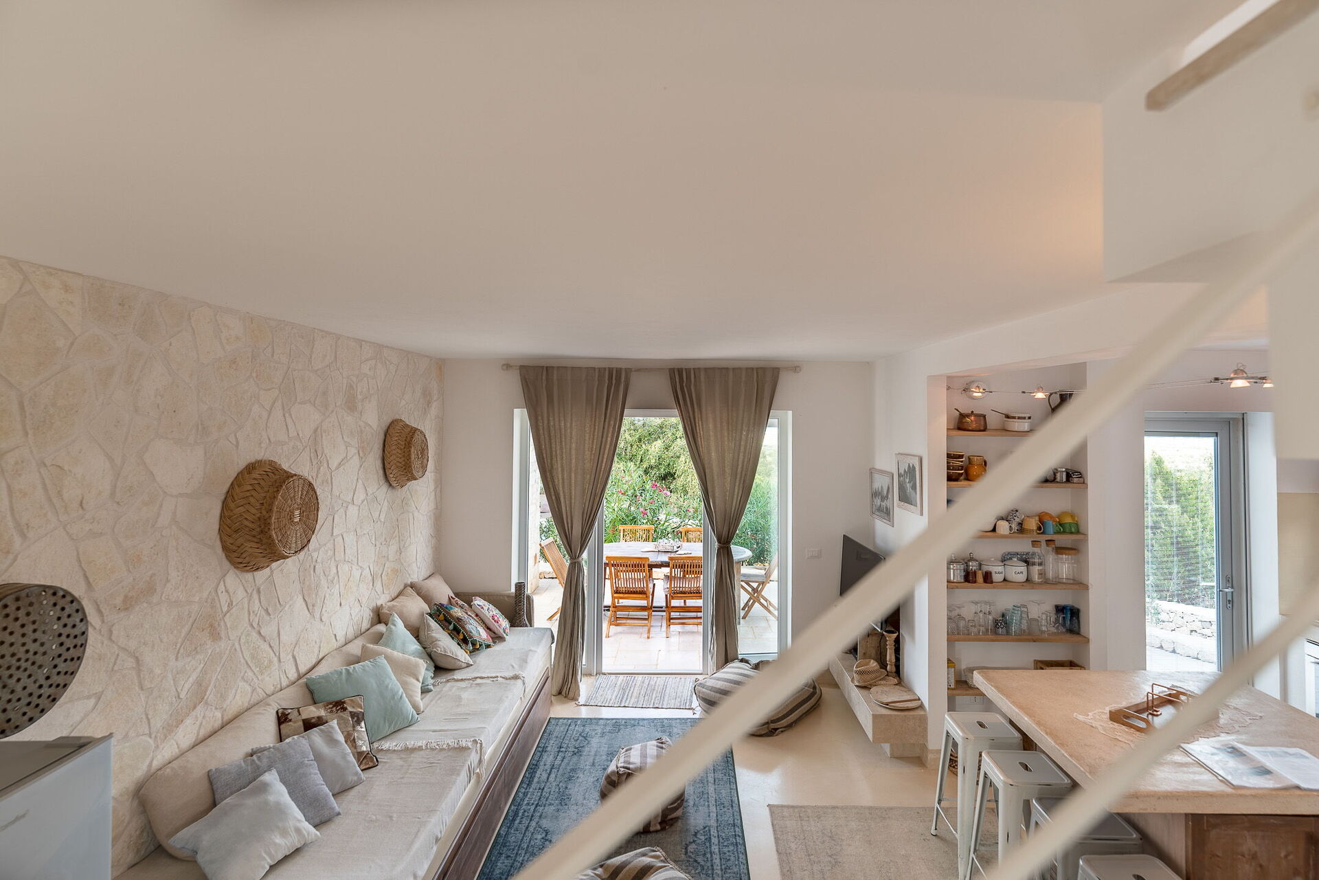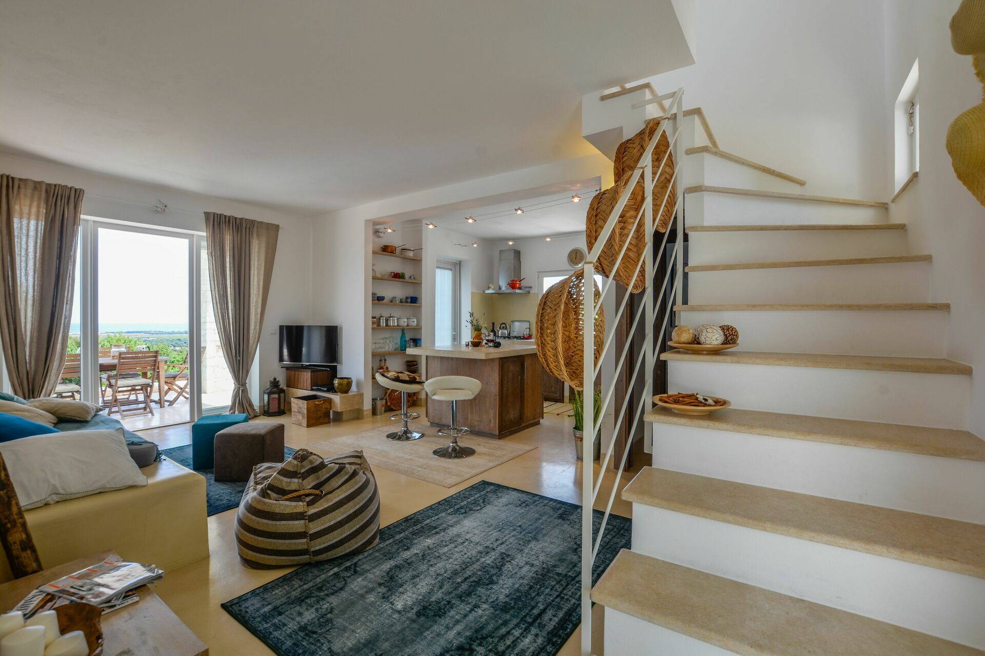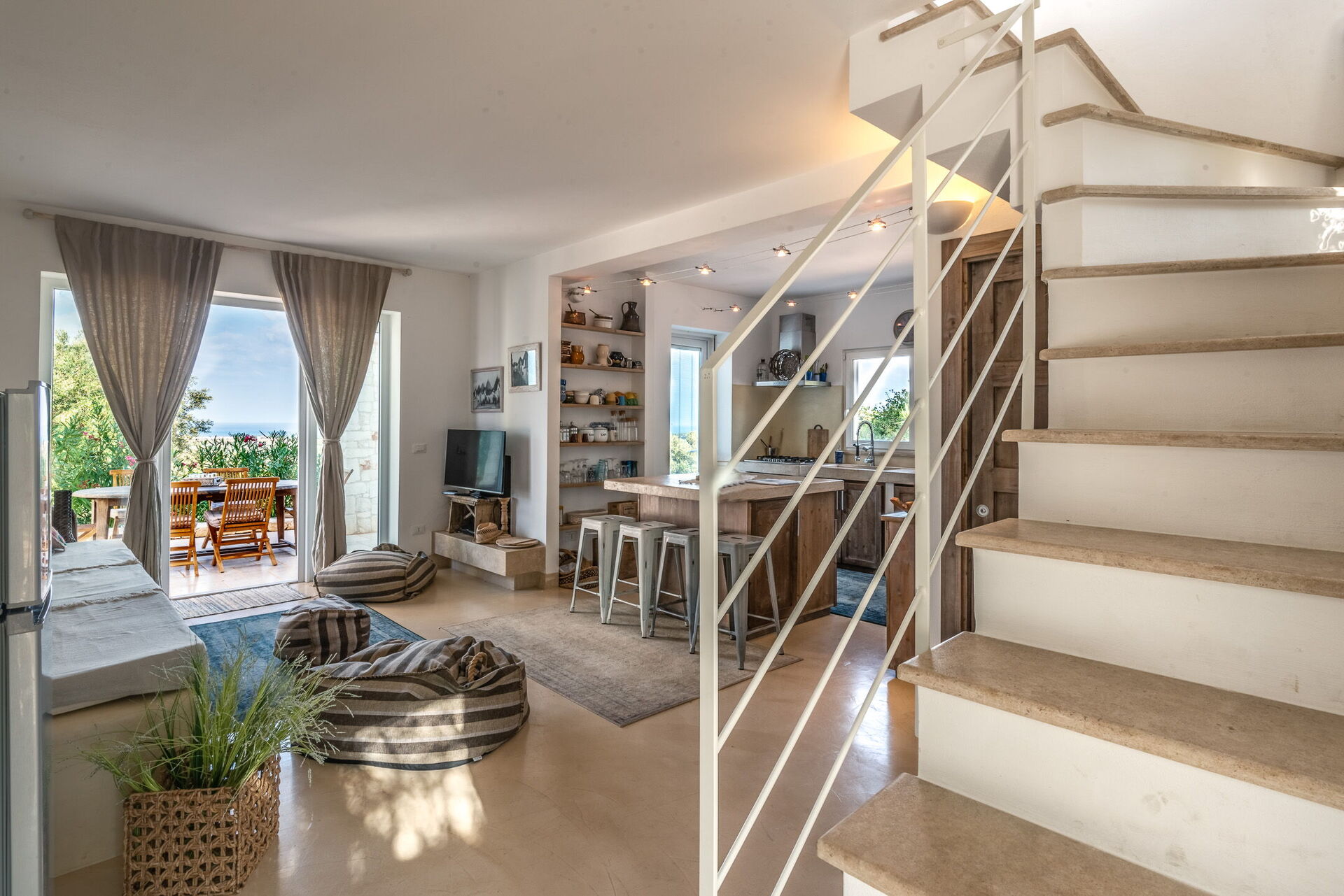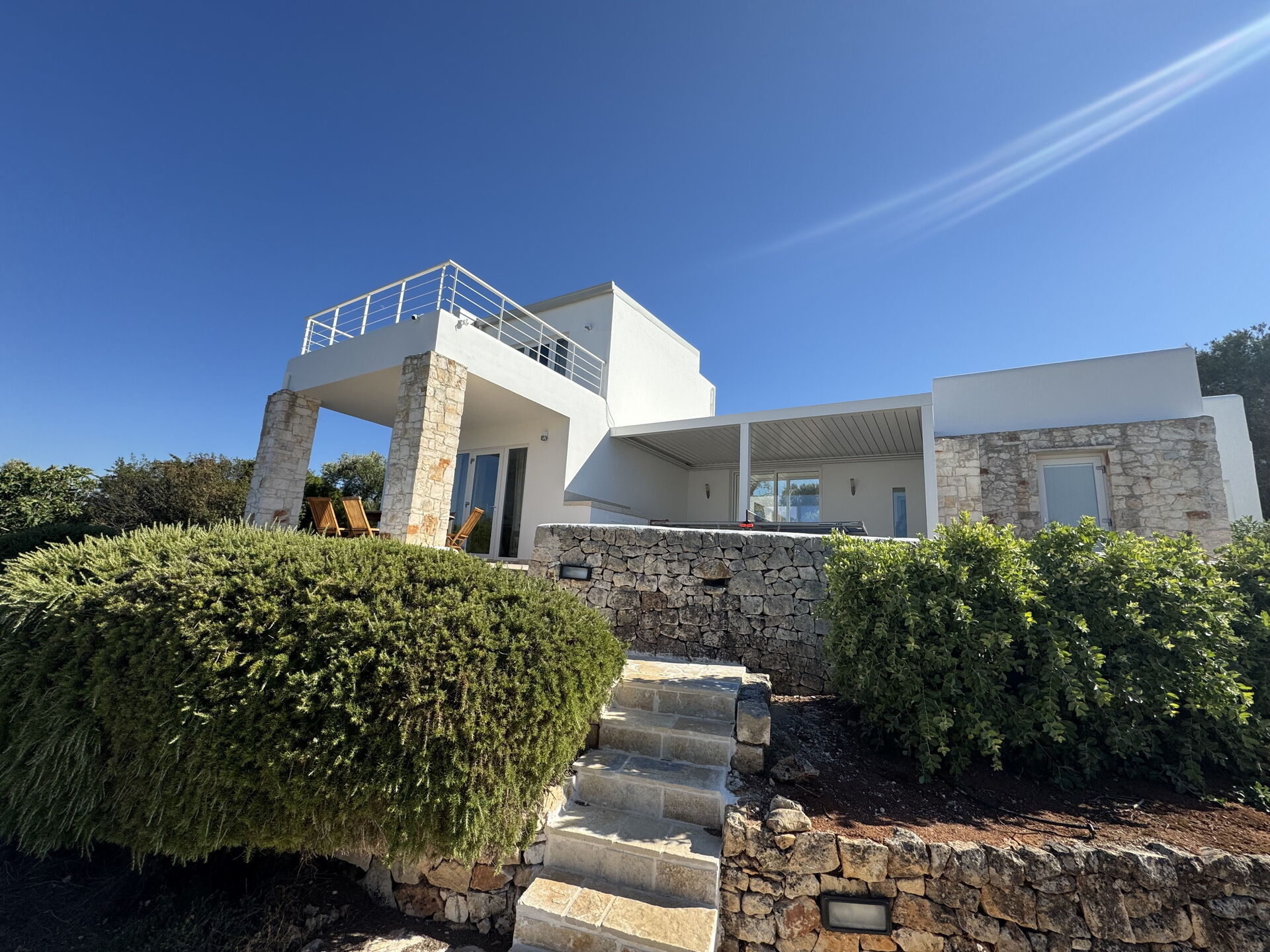 Concludono la varietà degli spazi esterni le due terrazze al primo piano con accesso dalla romantica camera matrimoniale: i tramonti sul mare diventeranno la vostra rilassante routine quotidiana.