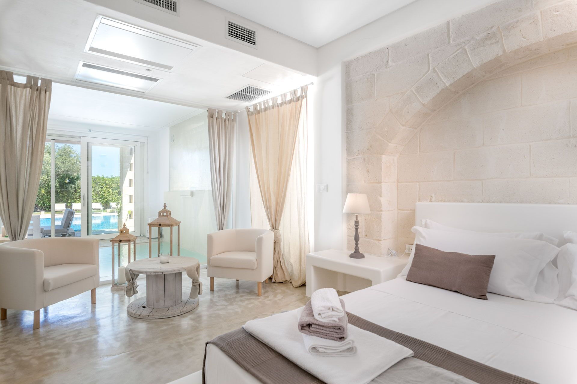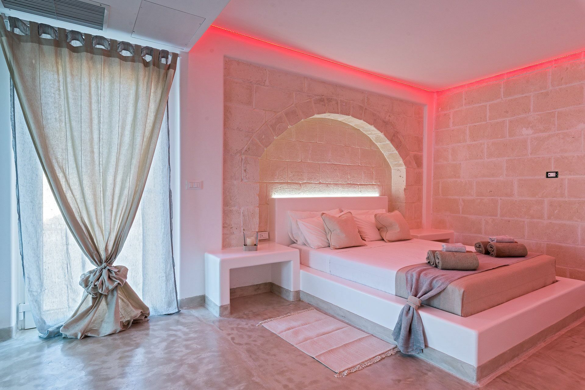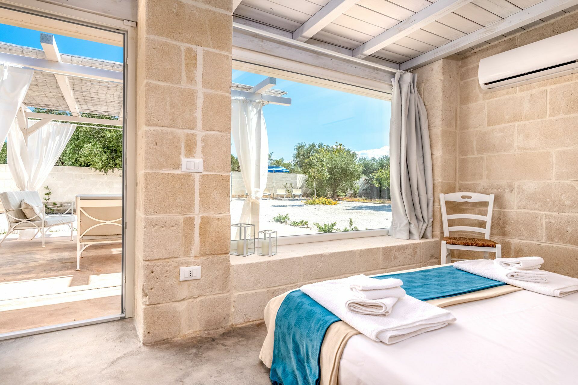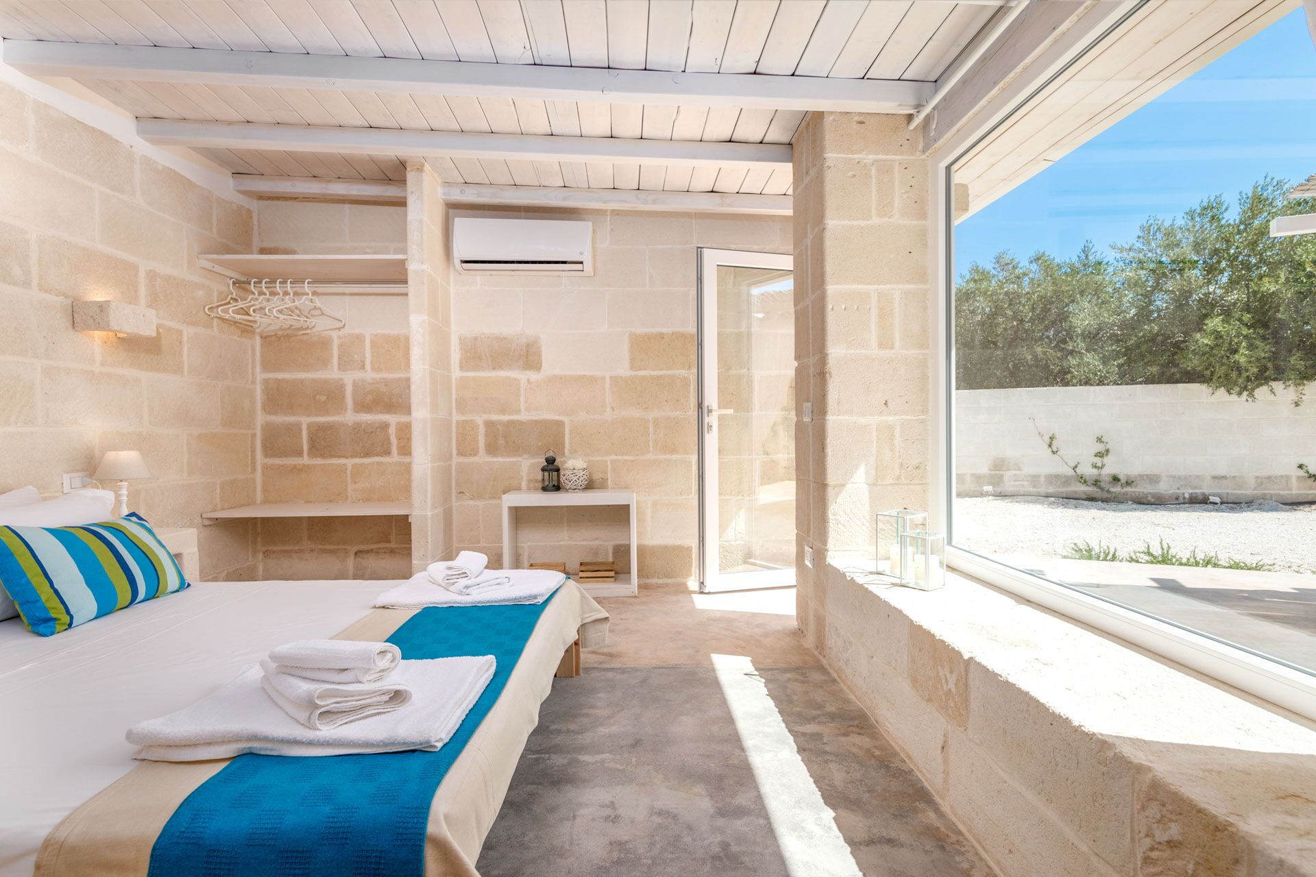 Grazie alle 6 camere da letto matrimoniali, distribuite tra il corpo principale e la dependance, la proprietà è in grado di ospitare comodamente 12 persone. Sarà un’esperienza irripetibile dormire in letti ricavati nella pietra. Ogni camera è dotata del suo bagno privato completo.