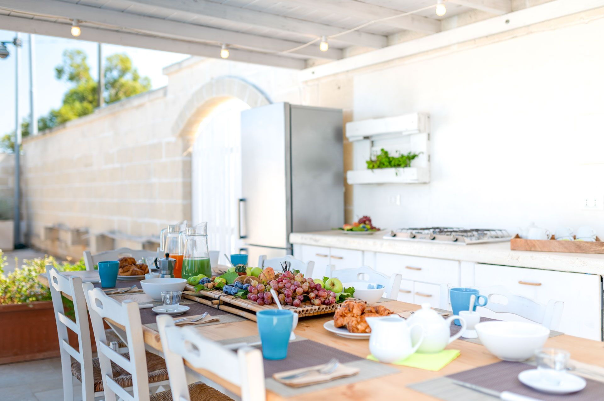 Gli ospiti potranno vivere gli spazi all'aria aperta in ogni momento della giornata grazie al piccolo e curato salottino esterno, al patio dotato di tavolo da pranzo con angolo cottura e al barbecue per le cene a base di prodotti locali.