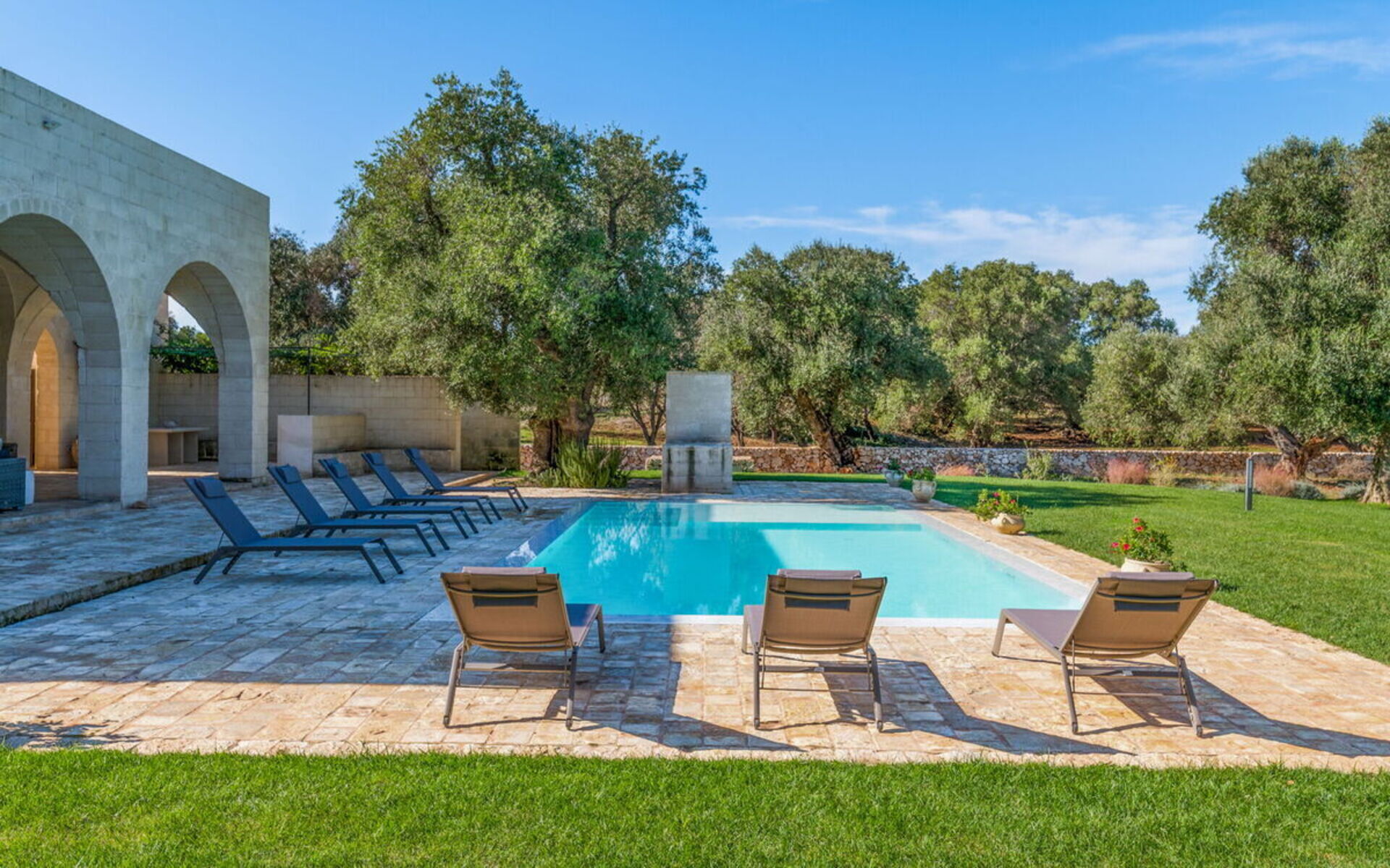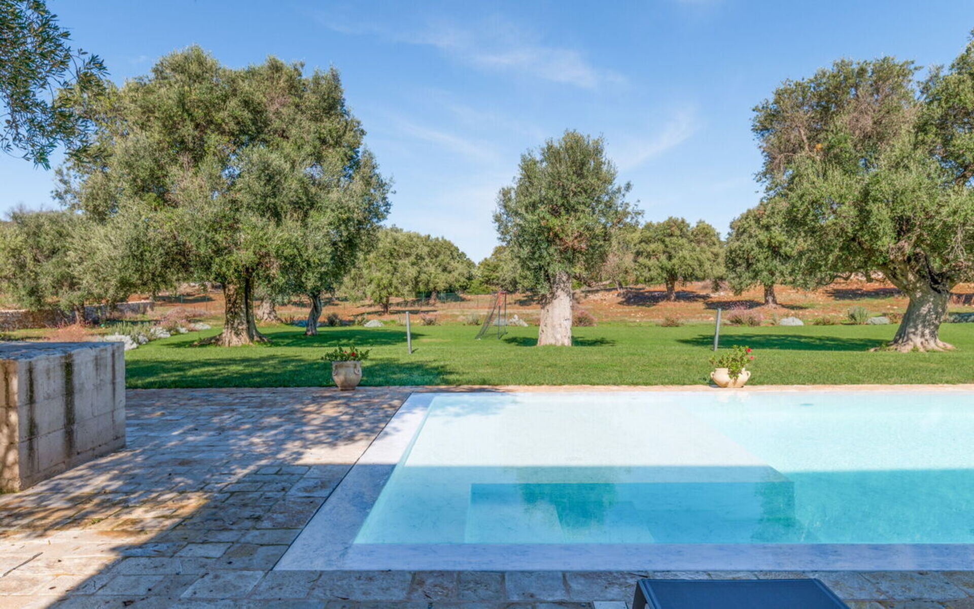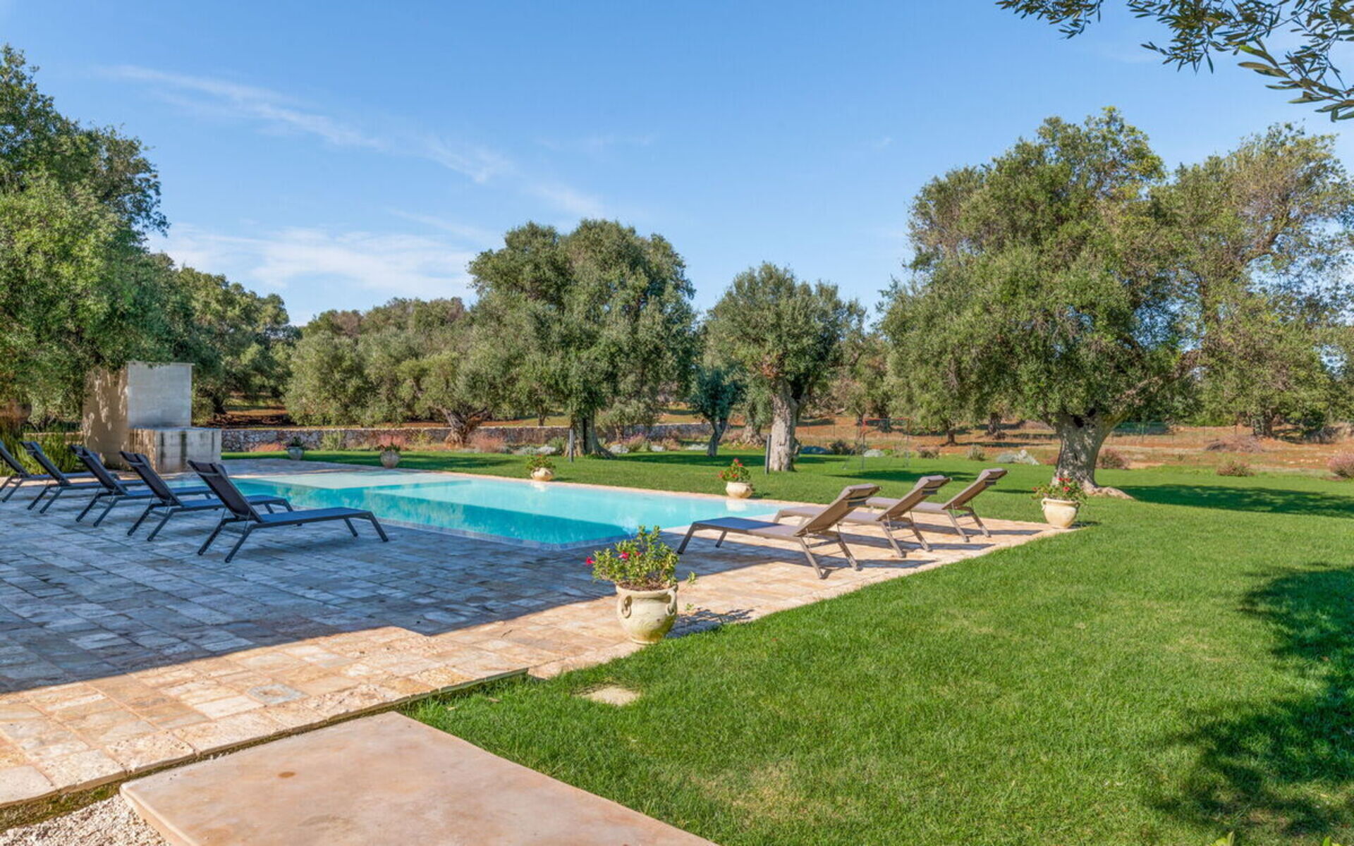 Nell’ampio giardino, disseminato di olivi secolari, avrete modo di rilassarvi a bordo della piscina a sfioro o di godervi momenti conviviali grazie all’elegante loggiato fronte piscina ed alla vicina zona barbecue.