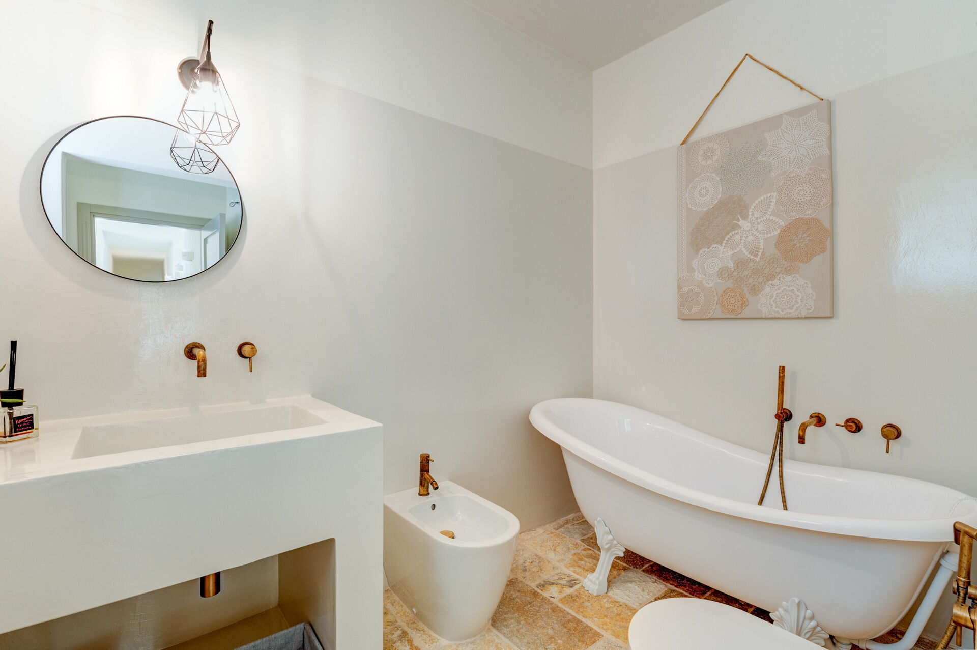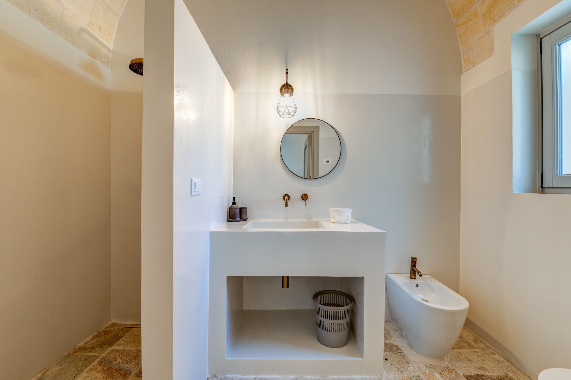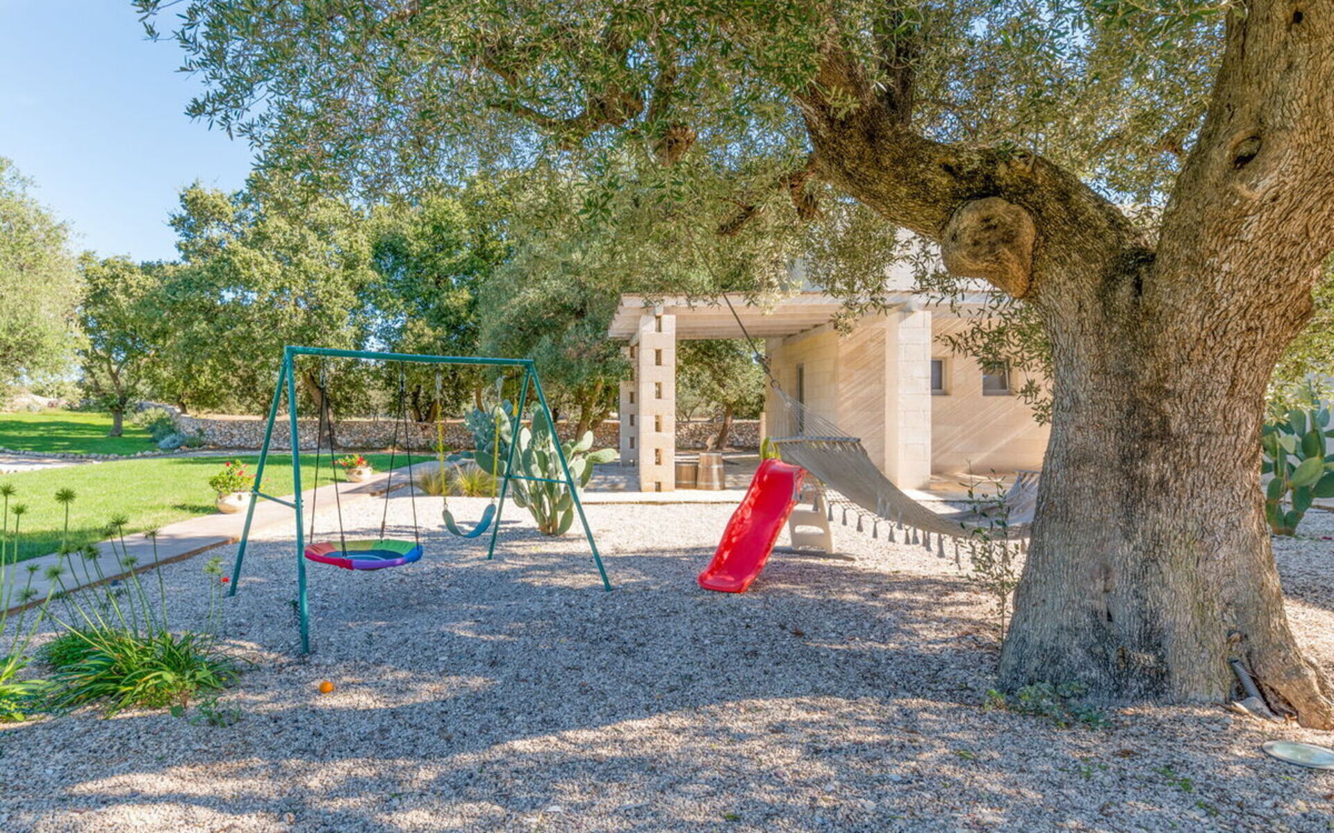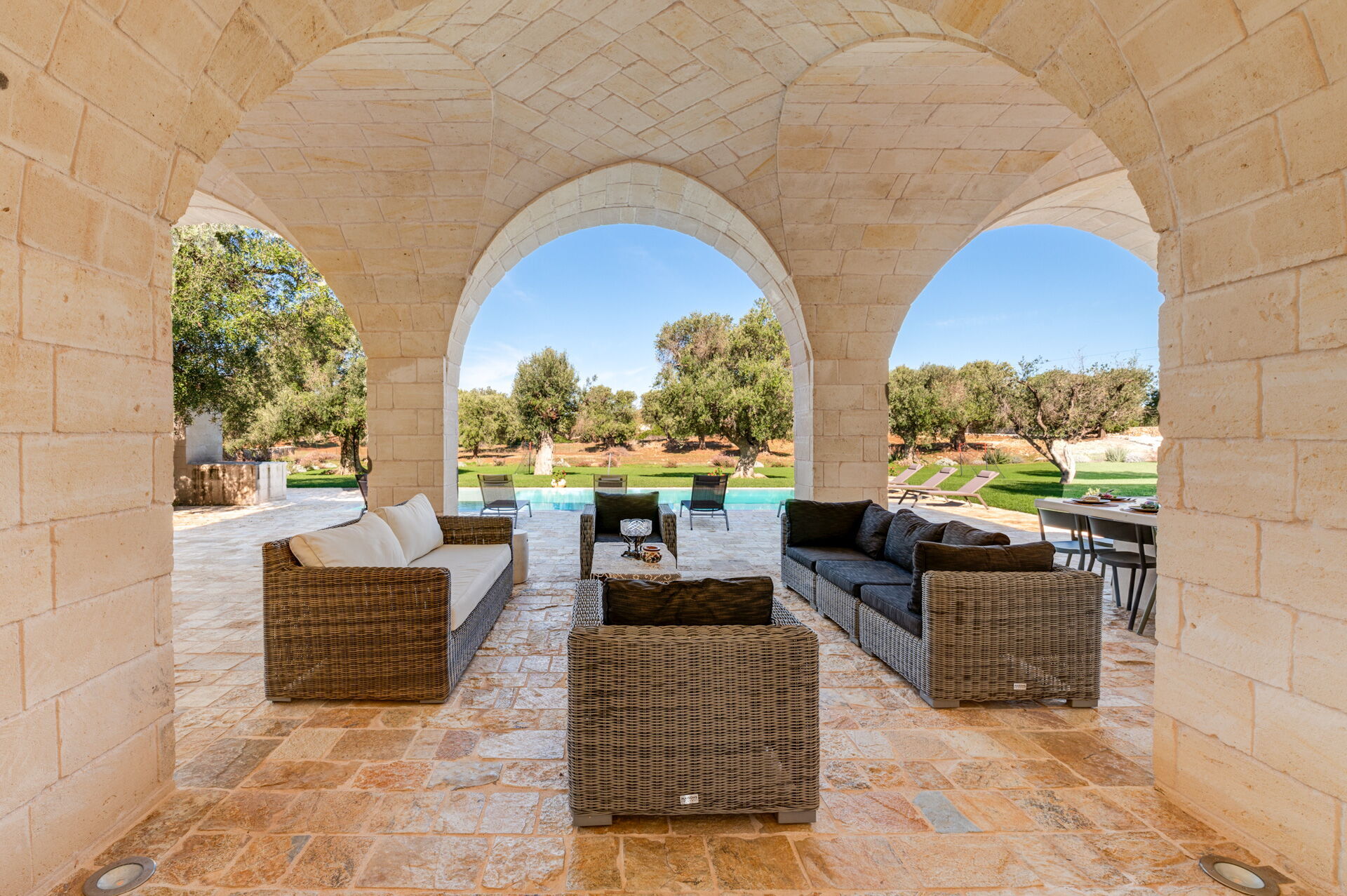 Nell’ampio giardino, disseminato di olivi secolari, avrete modo di rilassarvi a bordo della piscina a sfioro o di godervi momenti conviviali grazie all’elegante loggiato fronte piscina ed alla vicina zona barbecue.