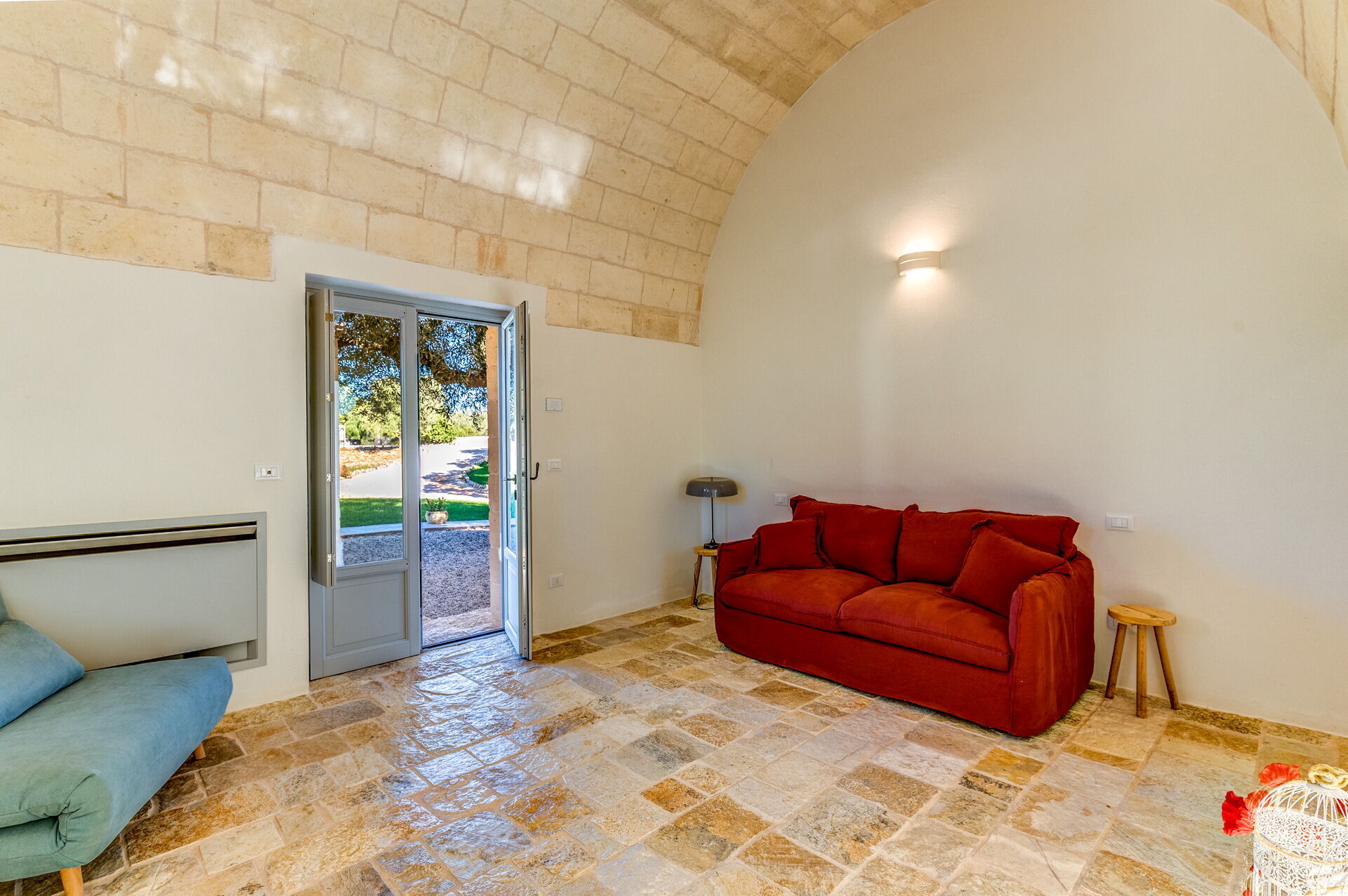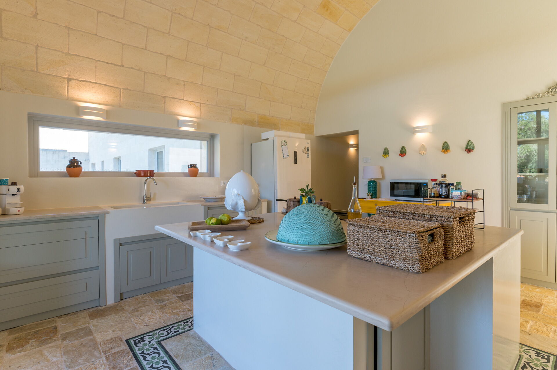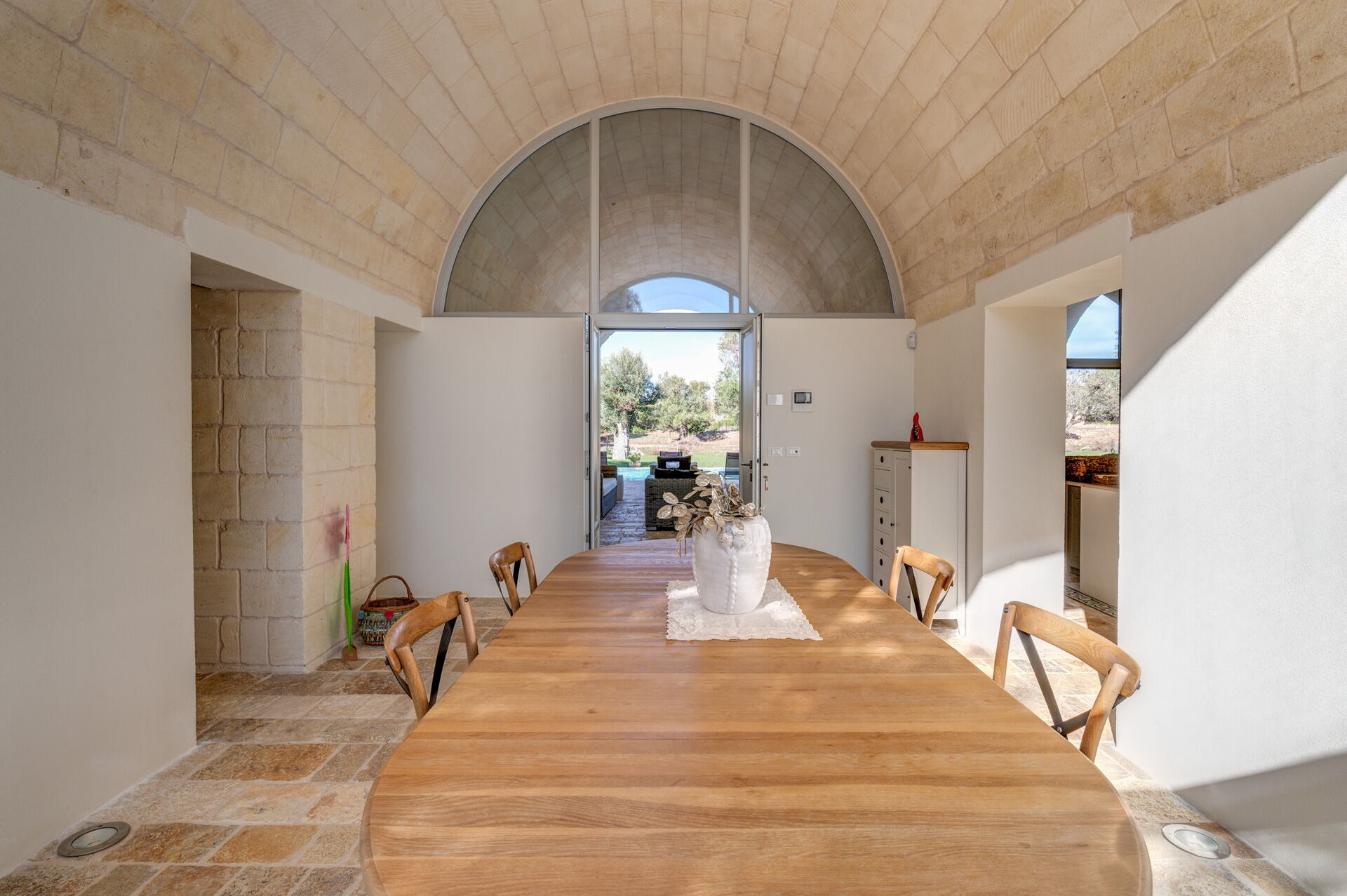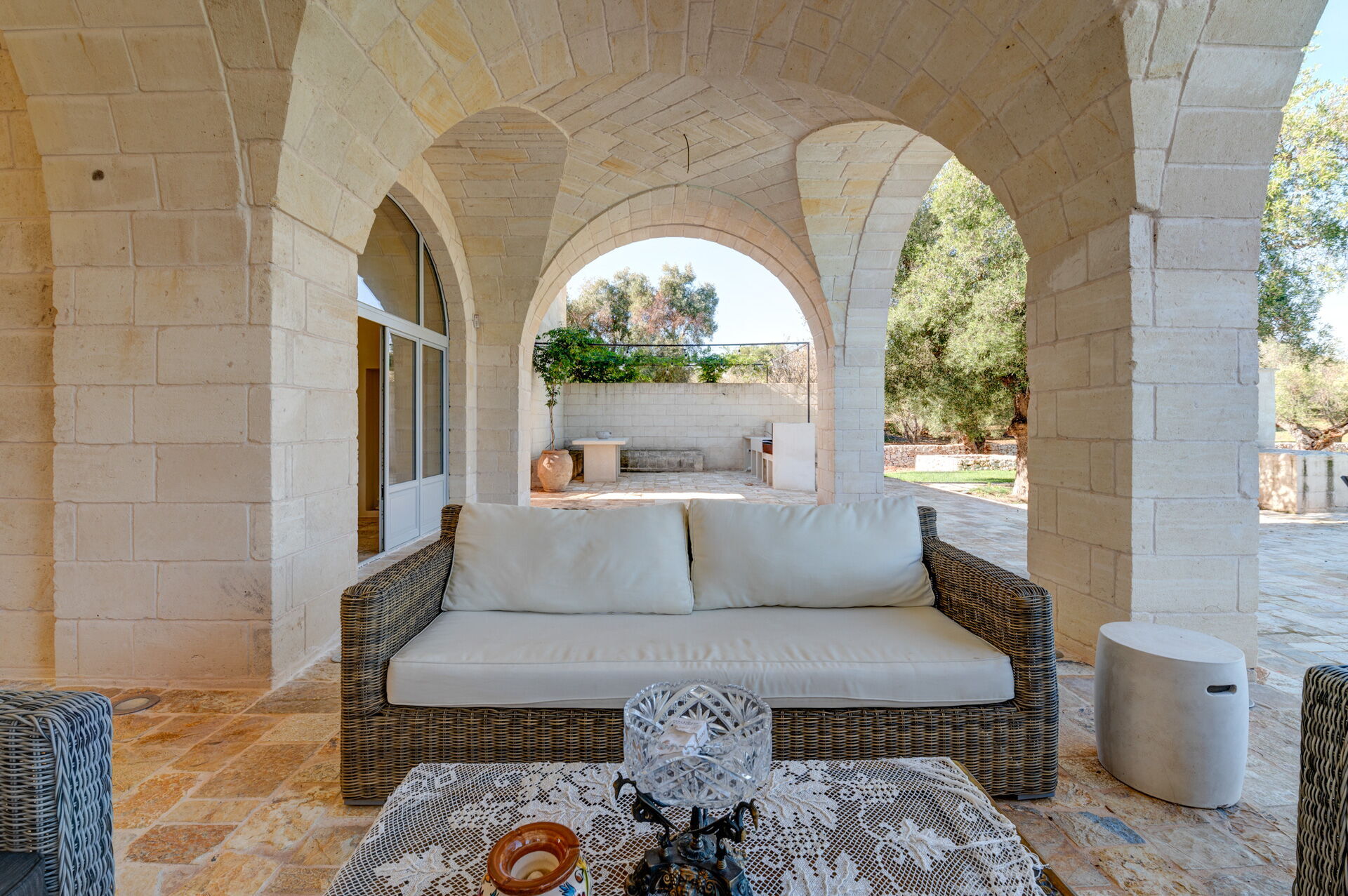 Internamente questa meravigliosa villa si distingue per i pregiati arredi e per la luminosità, dovuta alle grandi vetrate, in perfetto connubio con la tradizionale struttura architettonica salentina (soffitti a volta, pareti a pietra e mura bianche).