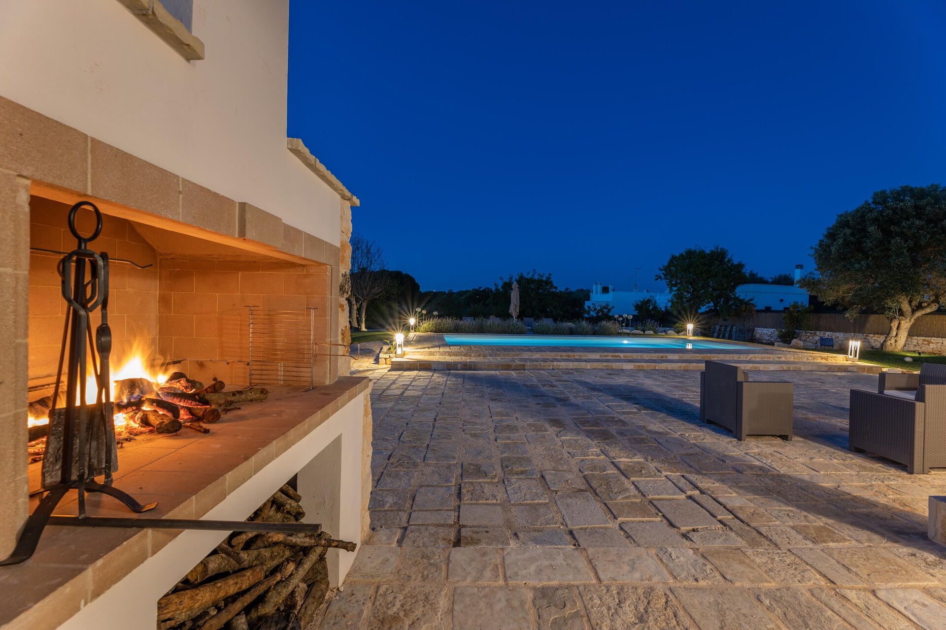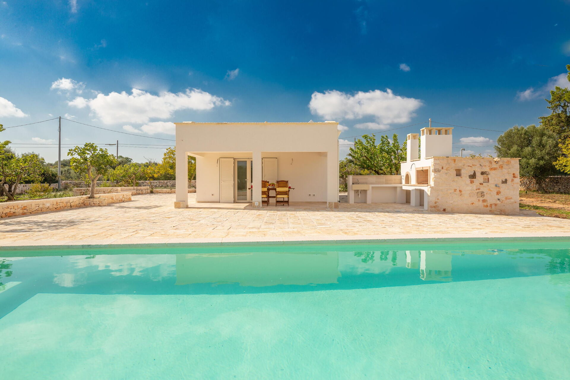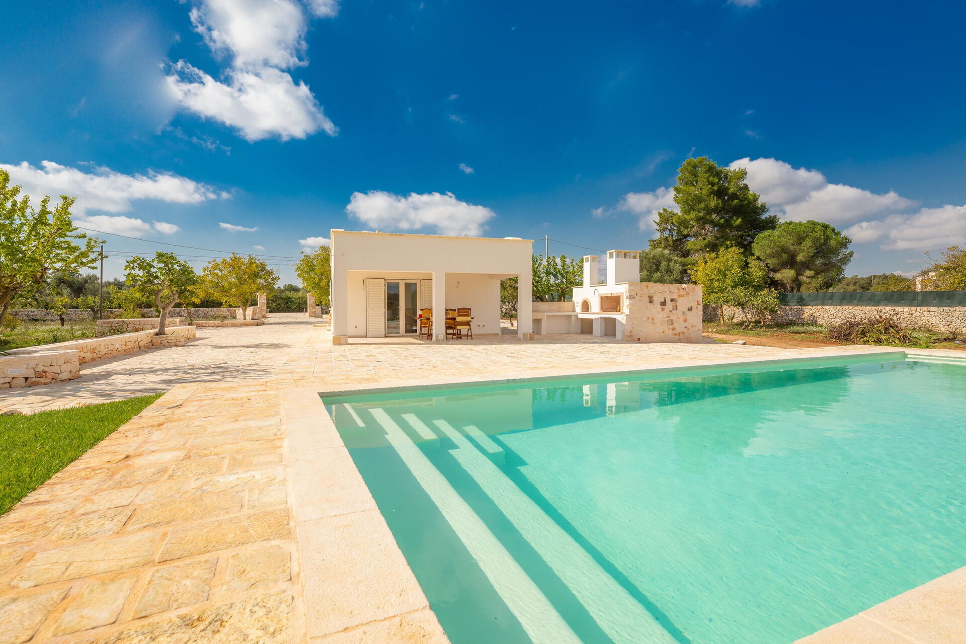 Immersa in un ampio giardino recintato di circa 4000 metri quadri, questa villa in affitto vi permetterà di trascorrere le calde giornate pugliesi all’aperto: rilassandovi sul bordo dell’elegante piscina privata con ingresso a scala romana; godendovi un appetitoso momento di convivialità con i vostri amici sotto alla veranda; passeggiando per il parco tra alberi e ulivi.