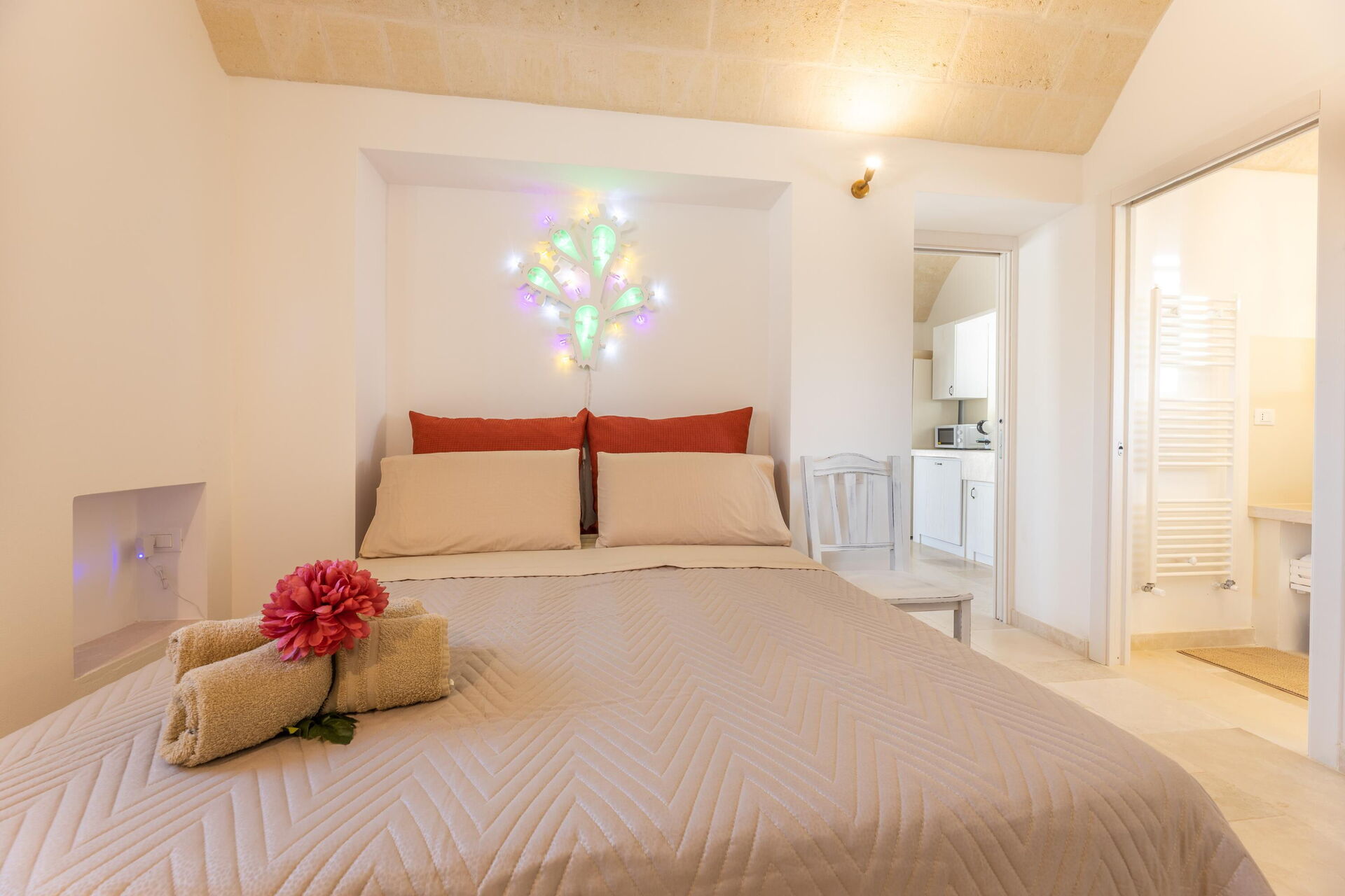 Se siete alla ricerca di un luogo tranquillo e tipico del Salento, Trullo Adea è la soluzione ideale per voi. Grazie alle 2 camere e al divano letto matrimoniale (disponibile su richiesta ed a un prezzo extra), questo trullo in affitto può ospitare dalle 4 alle 6 persone.