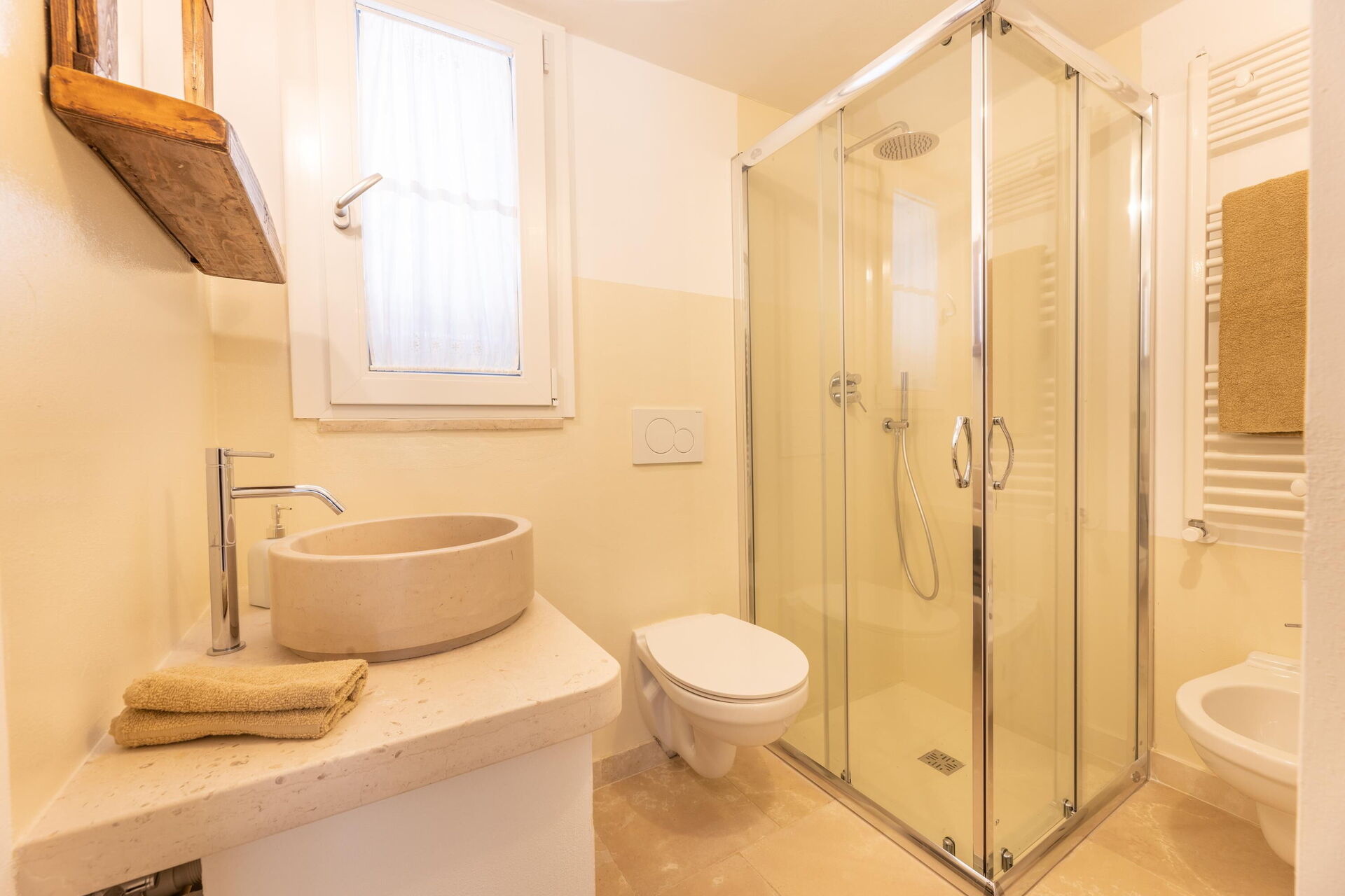 Dalla cucina/soggiorno e dalla camera più grande si accede direttamente al giardino e alla piscina.