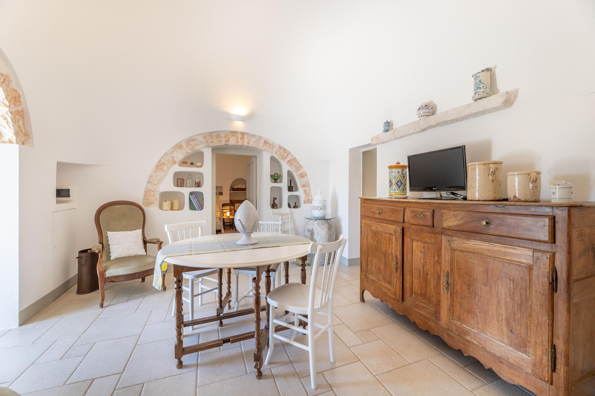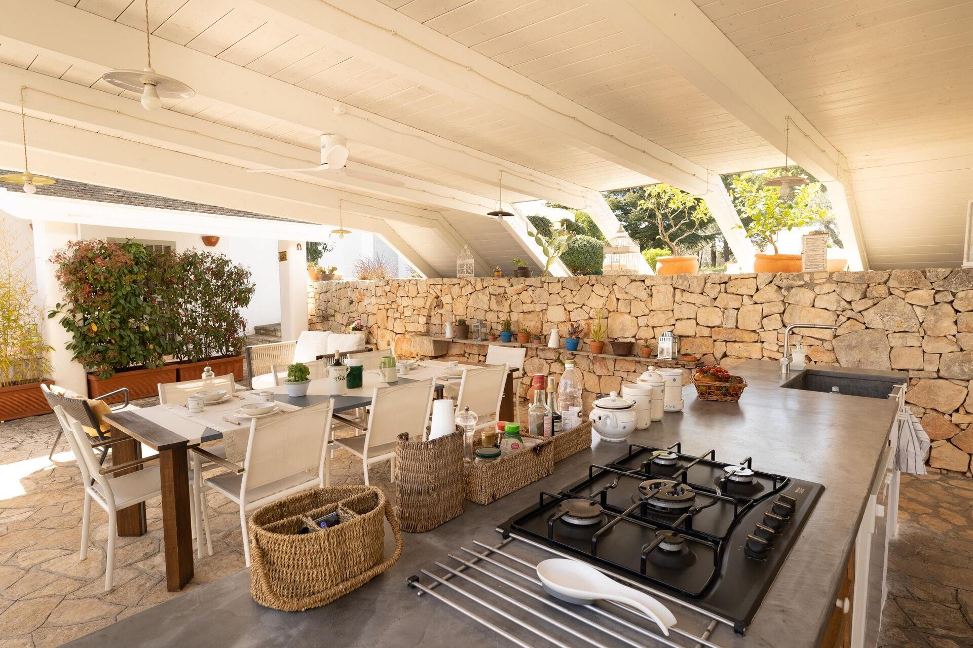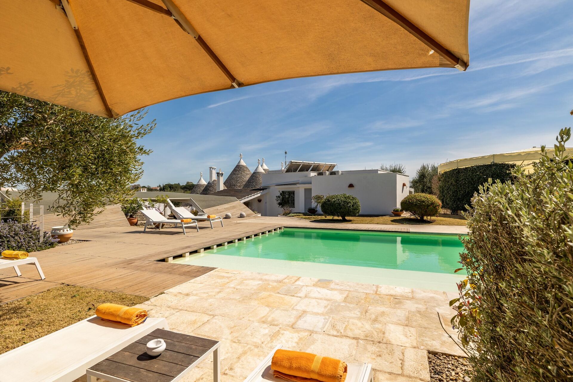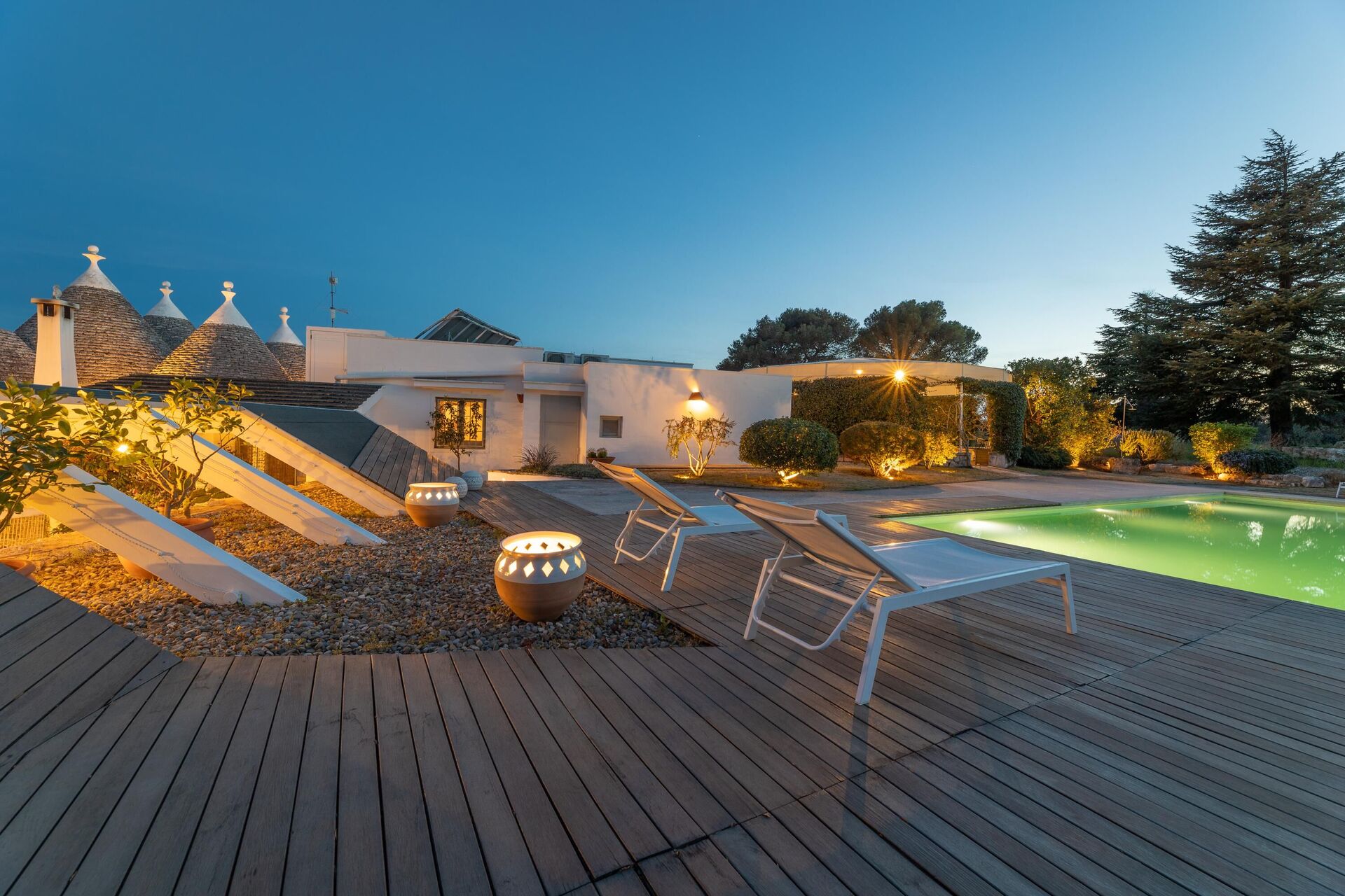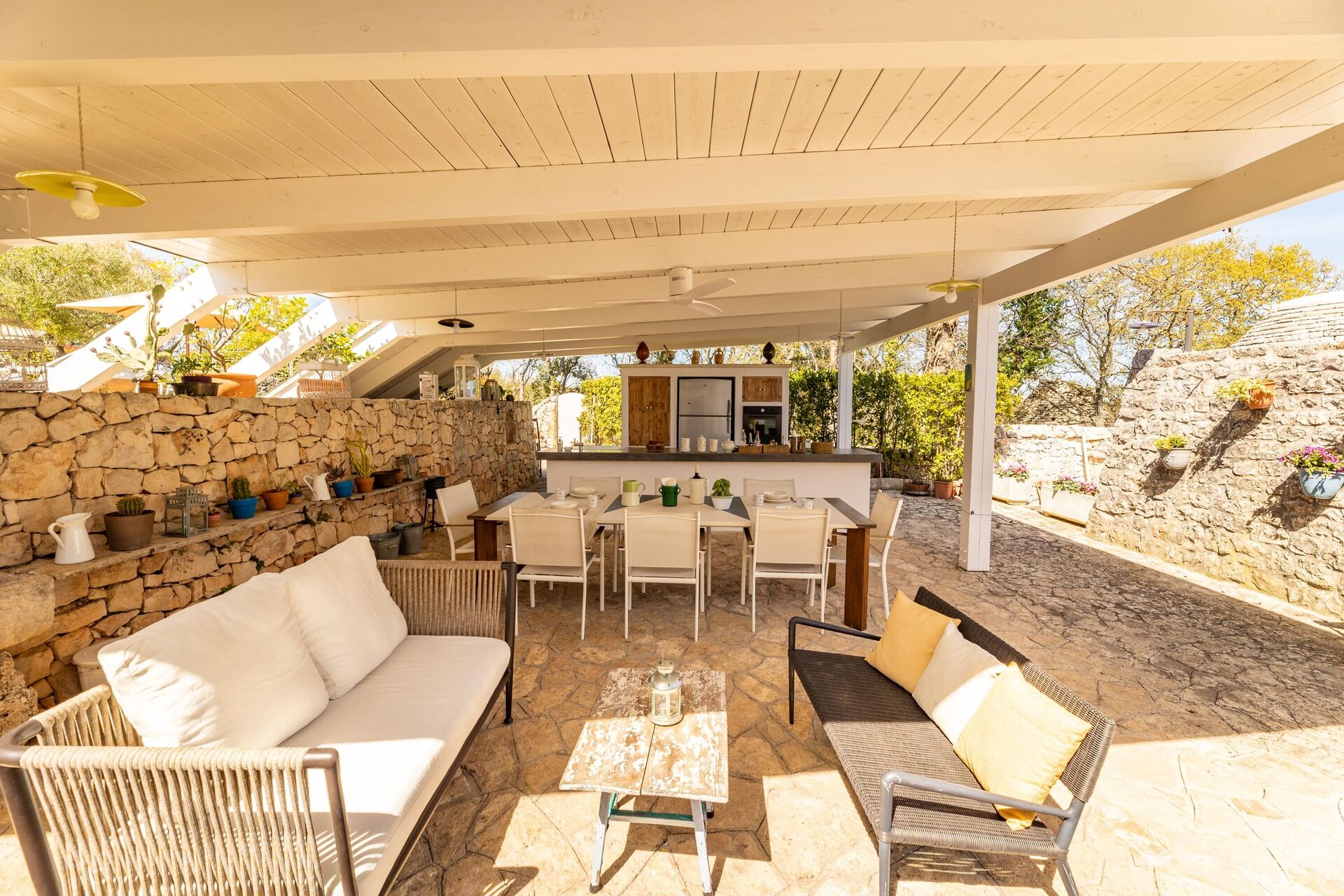 La meravigliosa villa in affitto è un connubio perfetto tra tradizione e modernità. Grazie alle 5 camere, può ospitare fino a 10 persone. La struttura, composta da 2 corpi indipendenti (un trullo e una lamia), è la soluzione ideale per una vacanza tra amici o parenti.