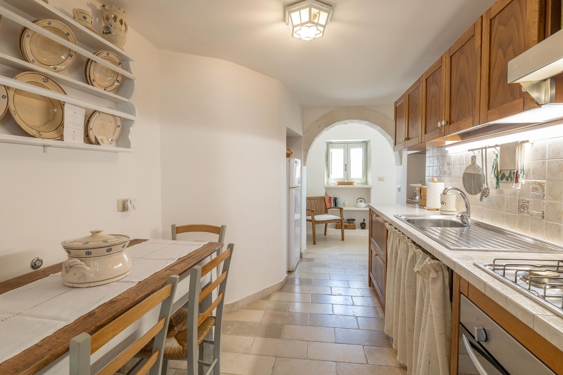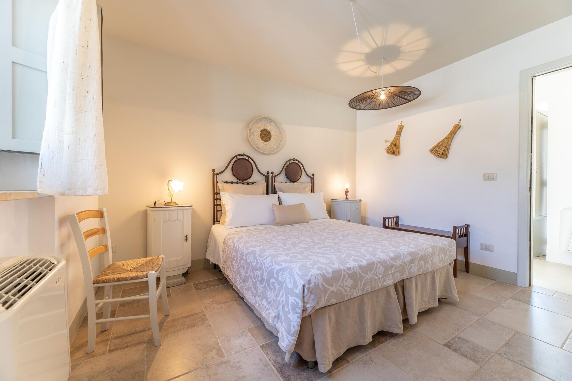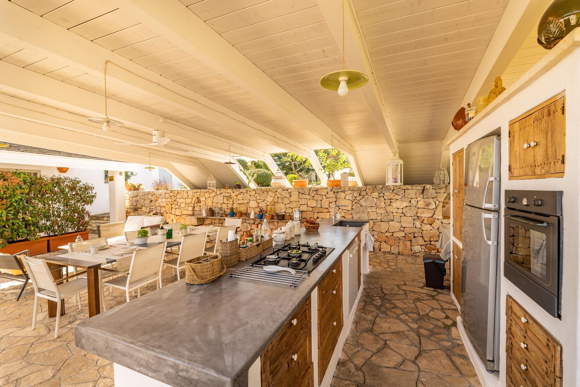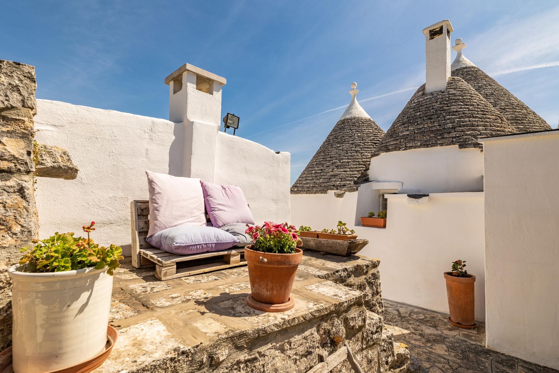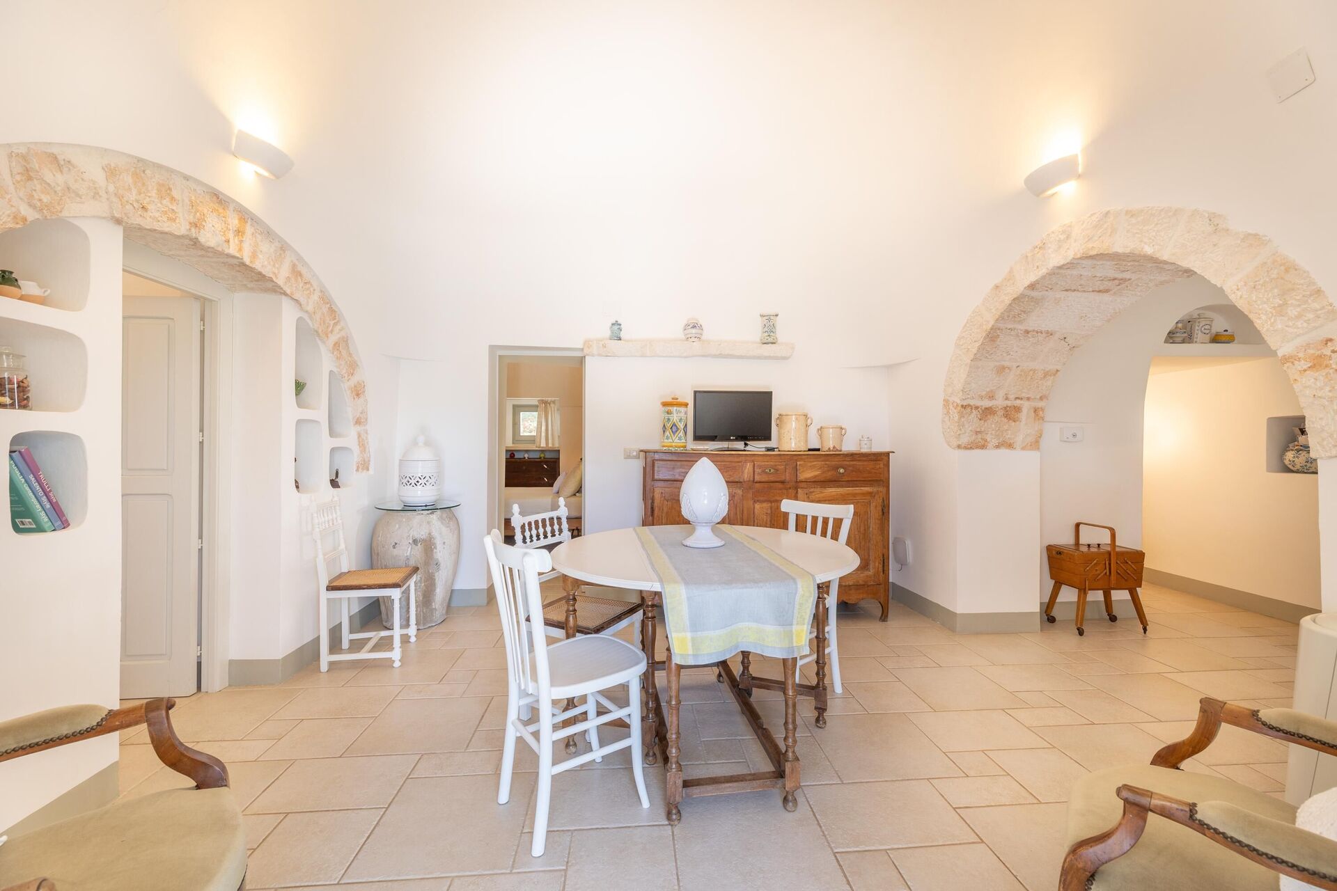 La meravigliosa villa in affitto è un connubio perfetto tra tradizione e modernità. Grazie alle 5 camere, può ospitare fino a 10 persone. La struttura, composta da 2 corpi indipendenti (un trullo e una lamia), è la soluzione ideale per una vacanza tra amici o parenti.