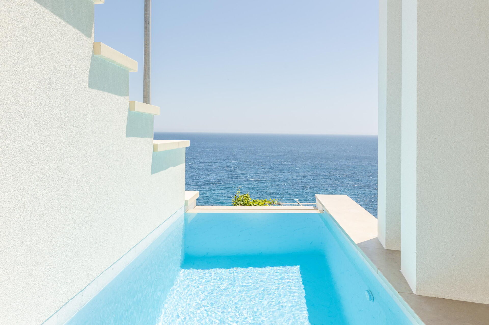 La dimora dispone una terrazza panoramica coperta con grandi aperture a arco, attrezzata con tavolo e sedie per poter mangiare all’aria aperta e una piscina privata (riscaldabile in primavera e autunno incluso nel prezzo) che regalano una piacevole vista sul mare blu della Puglia.