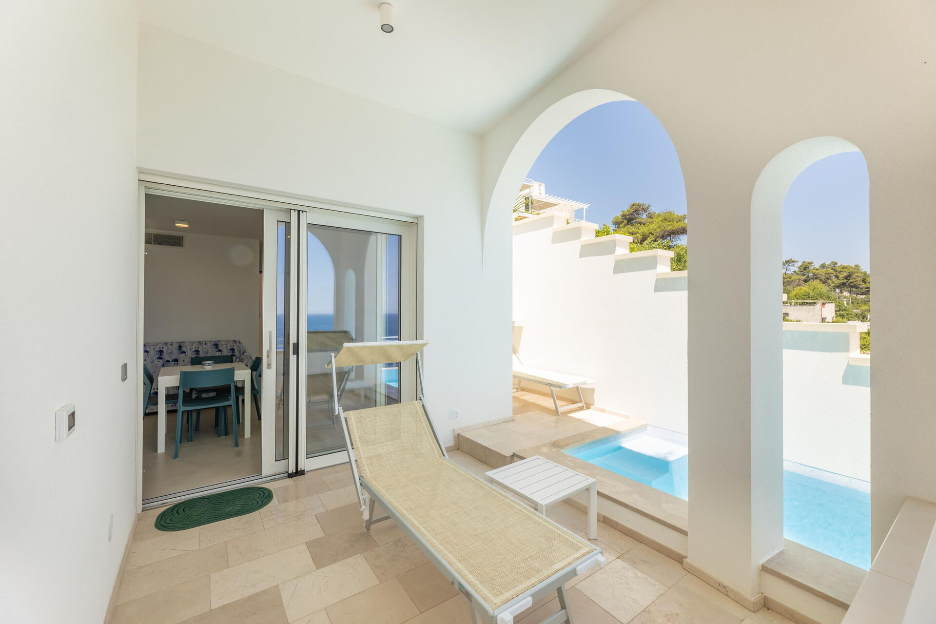 Marinaia Archi è un bell’appartamento con piscina privata in affitto, ubicata nel cuore del Salento, sulla costa orientale della Puglia a Marina di Marittima.