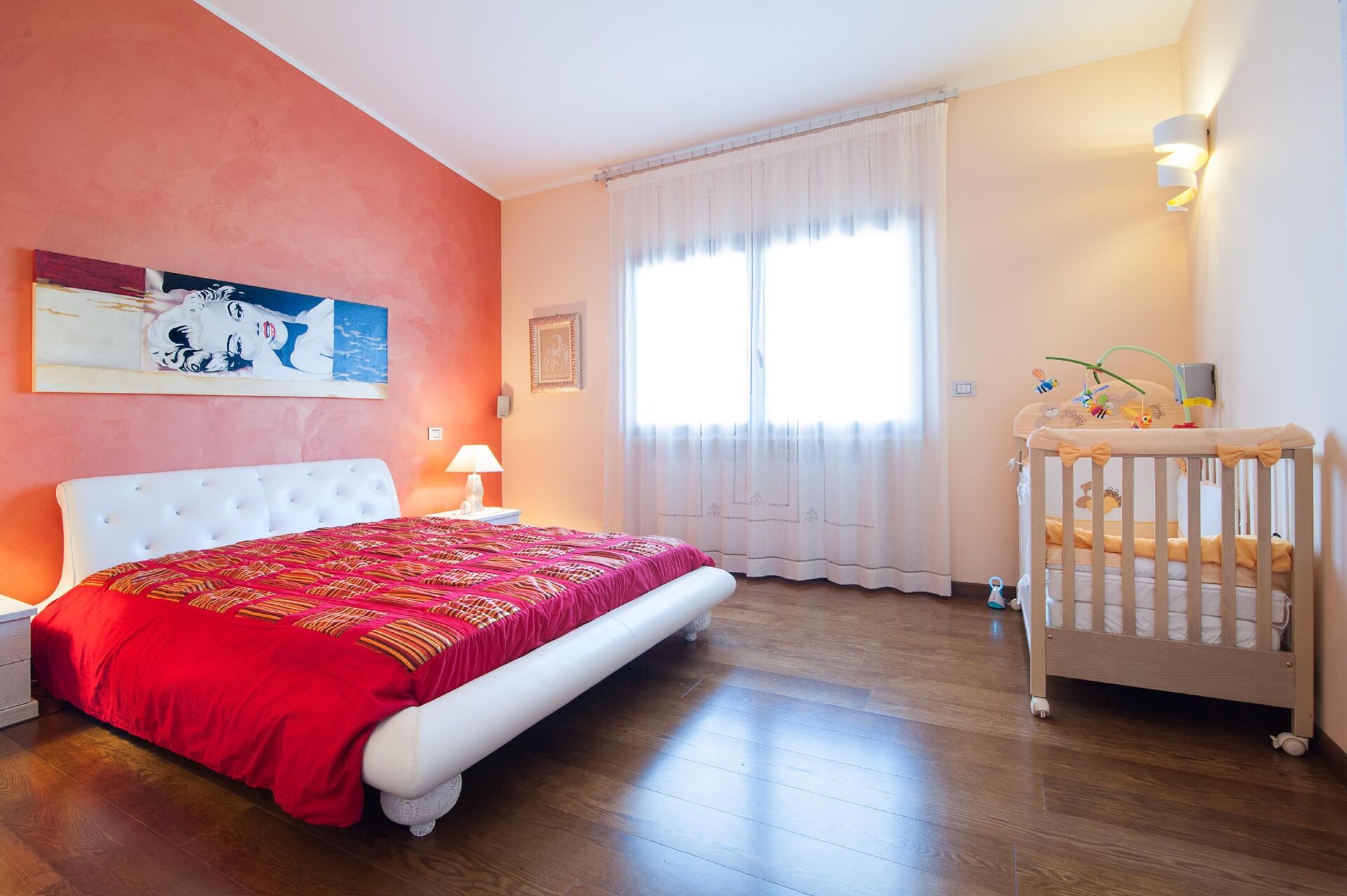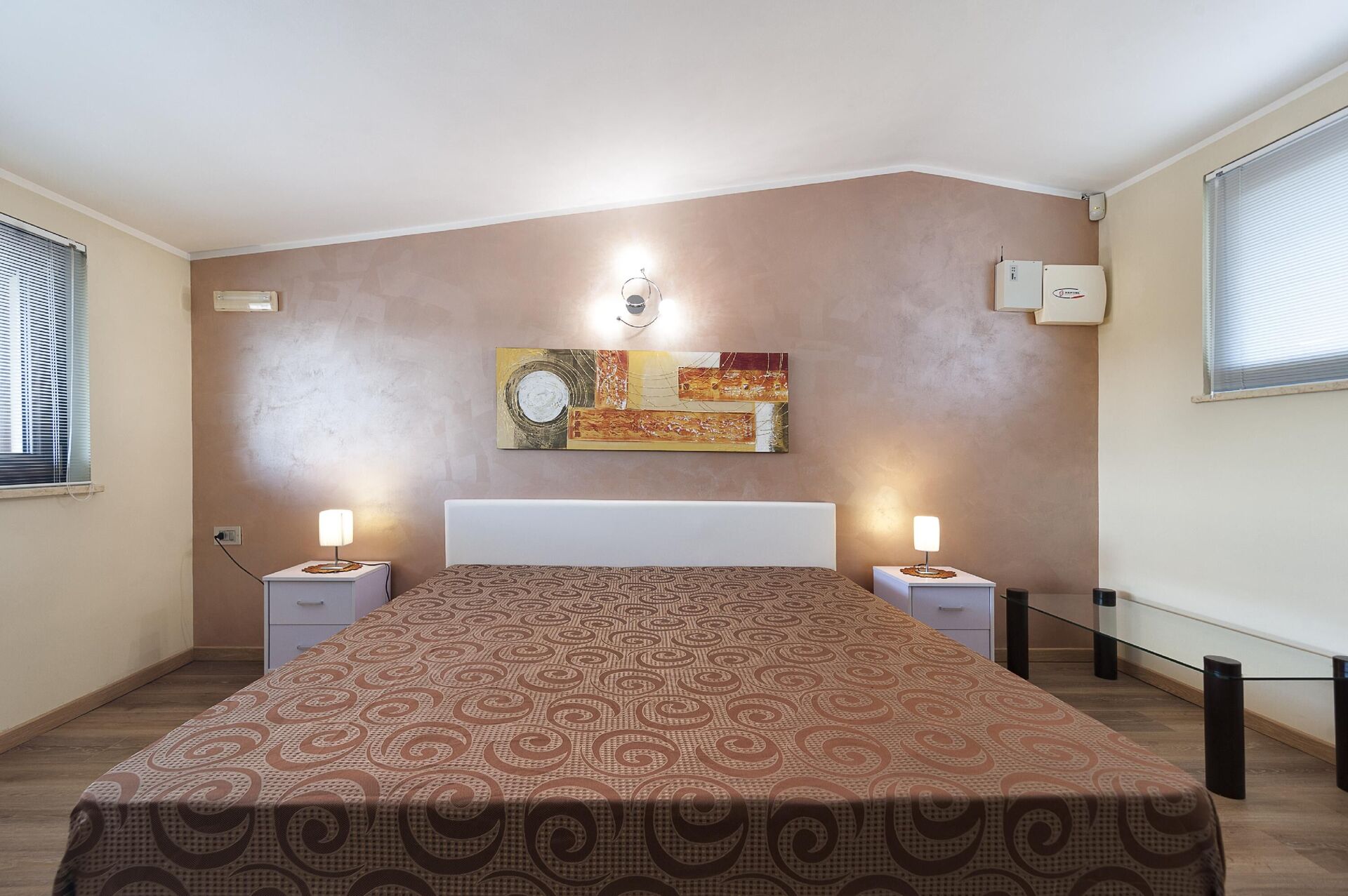 La villa, elegantemente arredata, dispone di 4 comode camere, 3 bagni e può ospitare fino a 12 persone. Il suo giardino comprende anche una zona con veranda arredata con tavolo e sedie dove poter consumare pasti all'aperto.