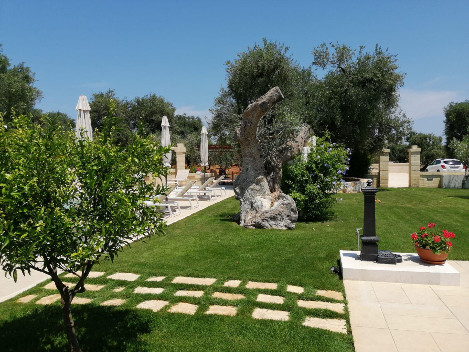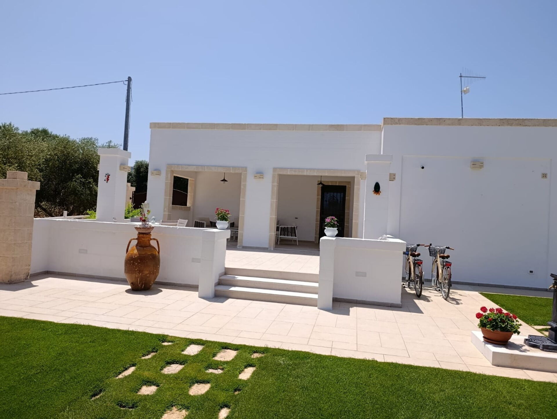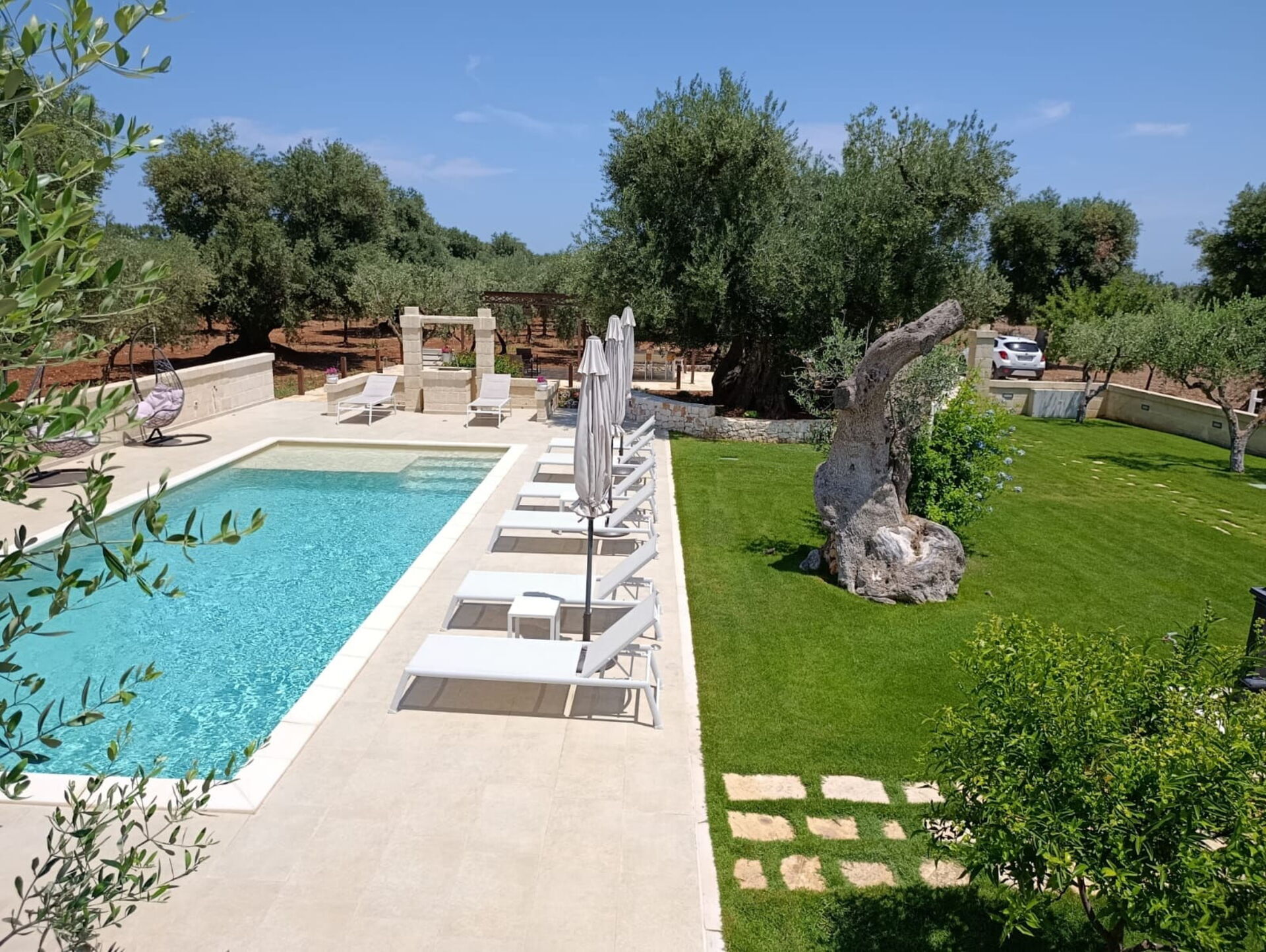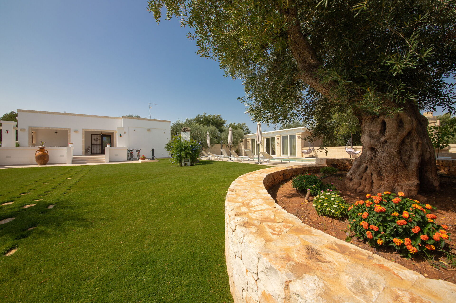 La casa è immersa in uno splendido contesto rurale in mezzo a ulivi millenari e la sua posizione centrale vi permetterà di visitare comodamente i piccoli paesi tipici della Valle d’Itria e godervi le spiagge sabbiose della costa adriatica.