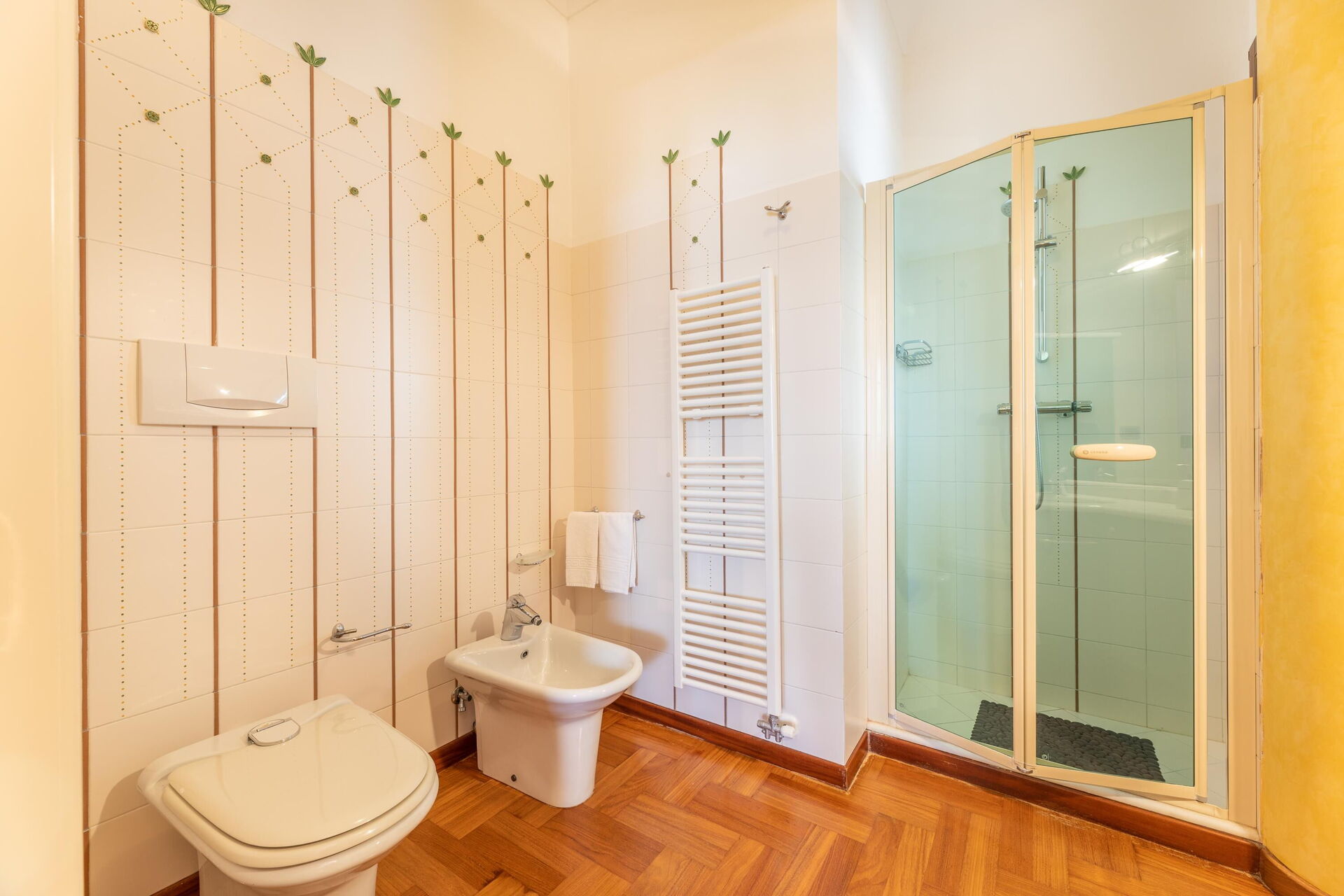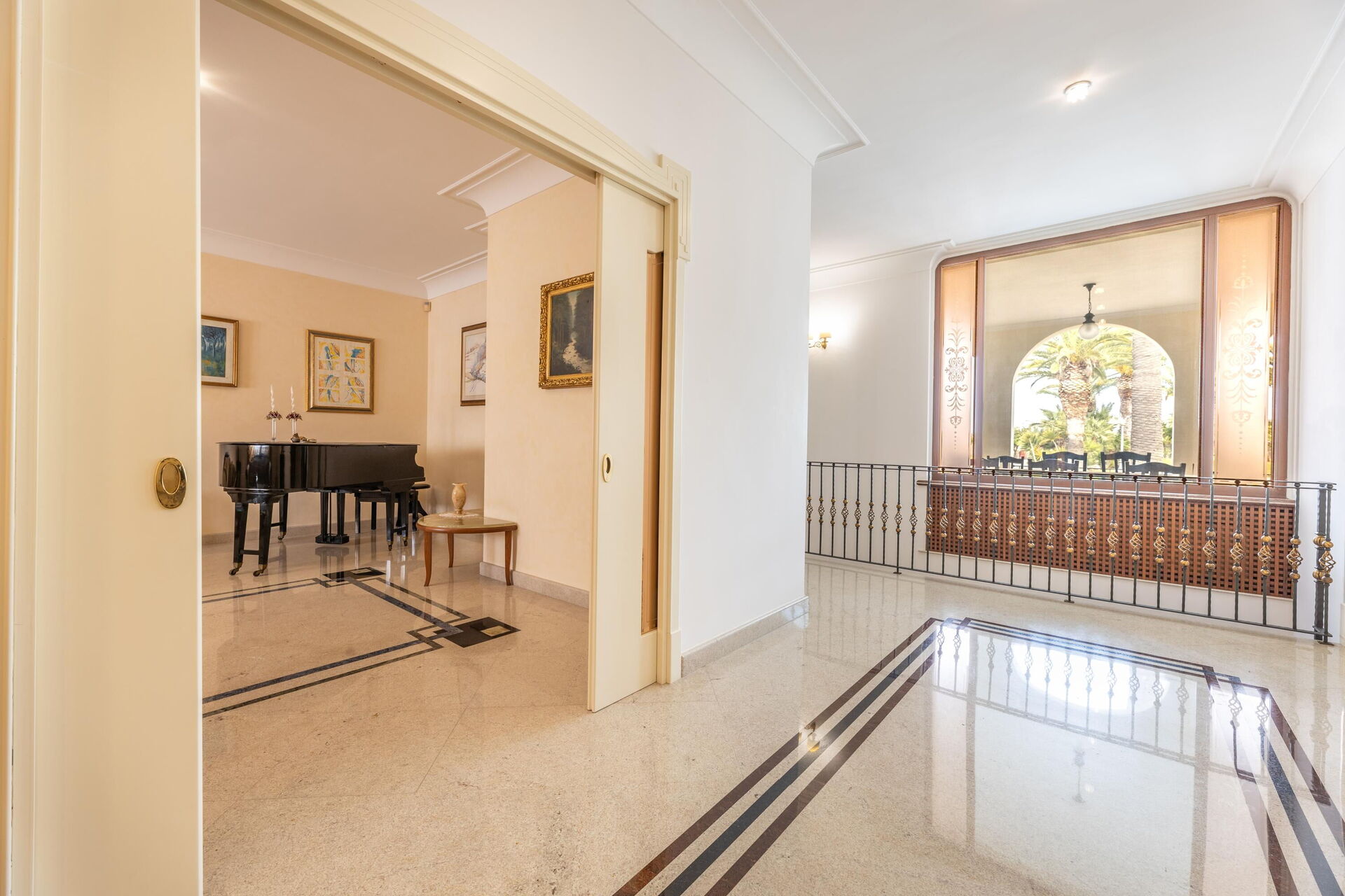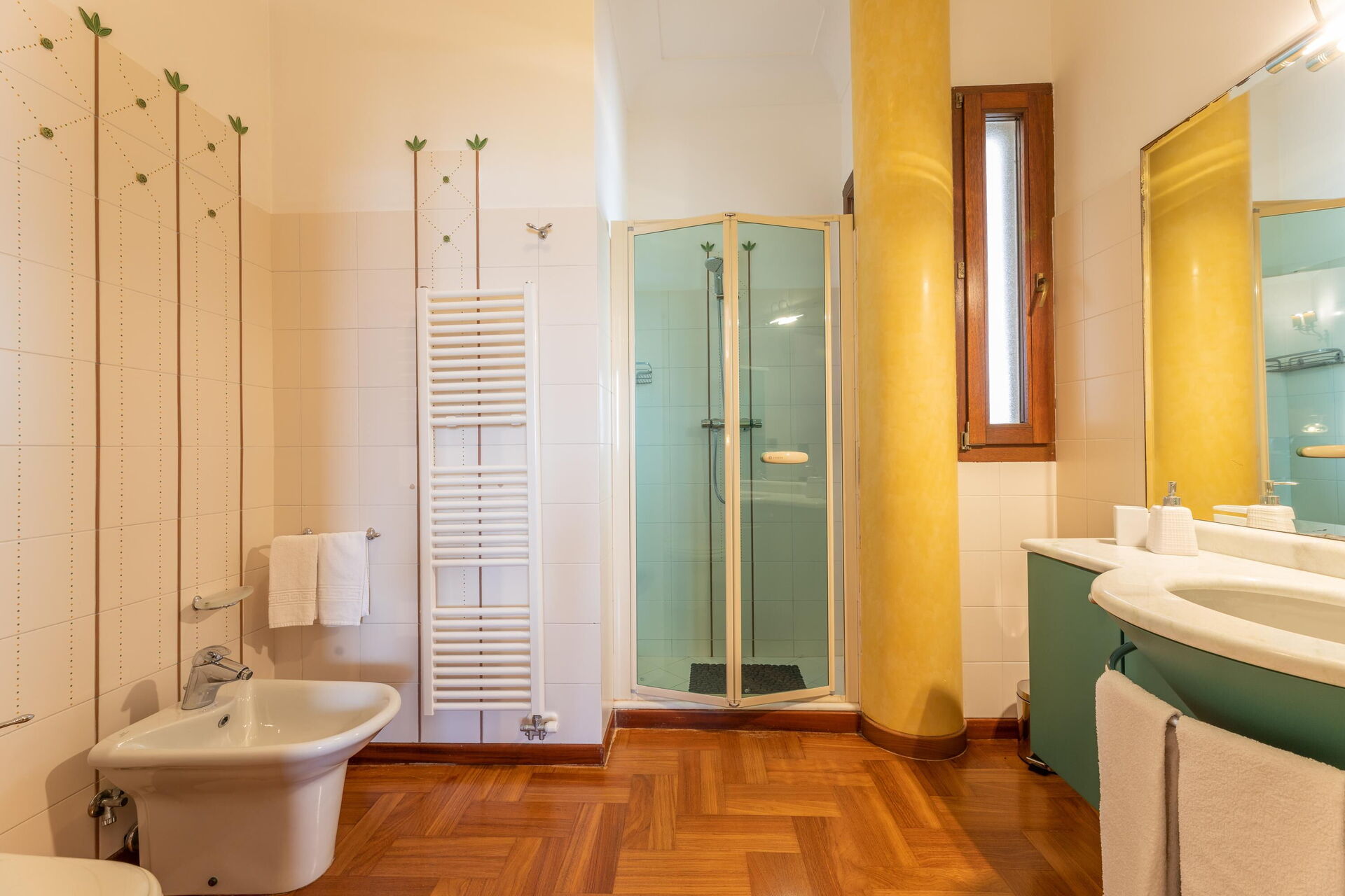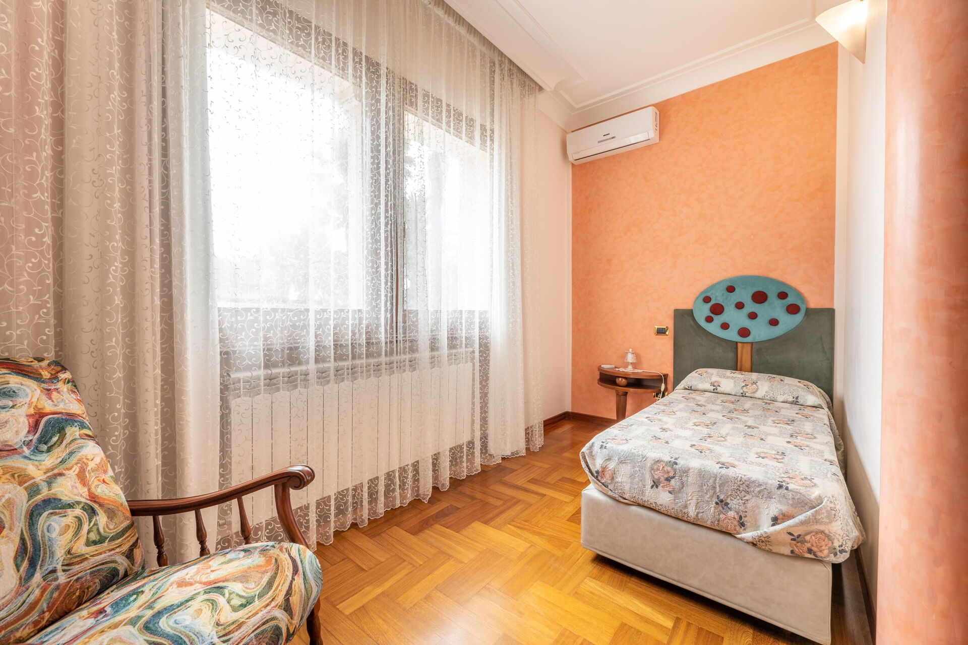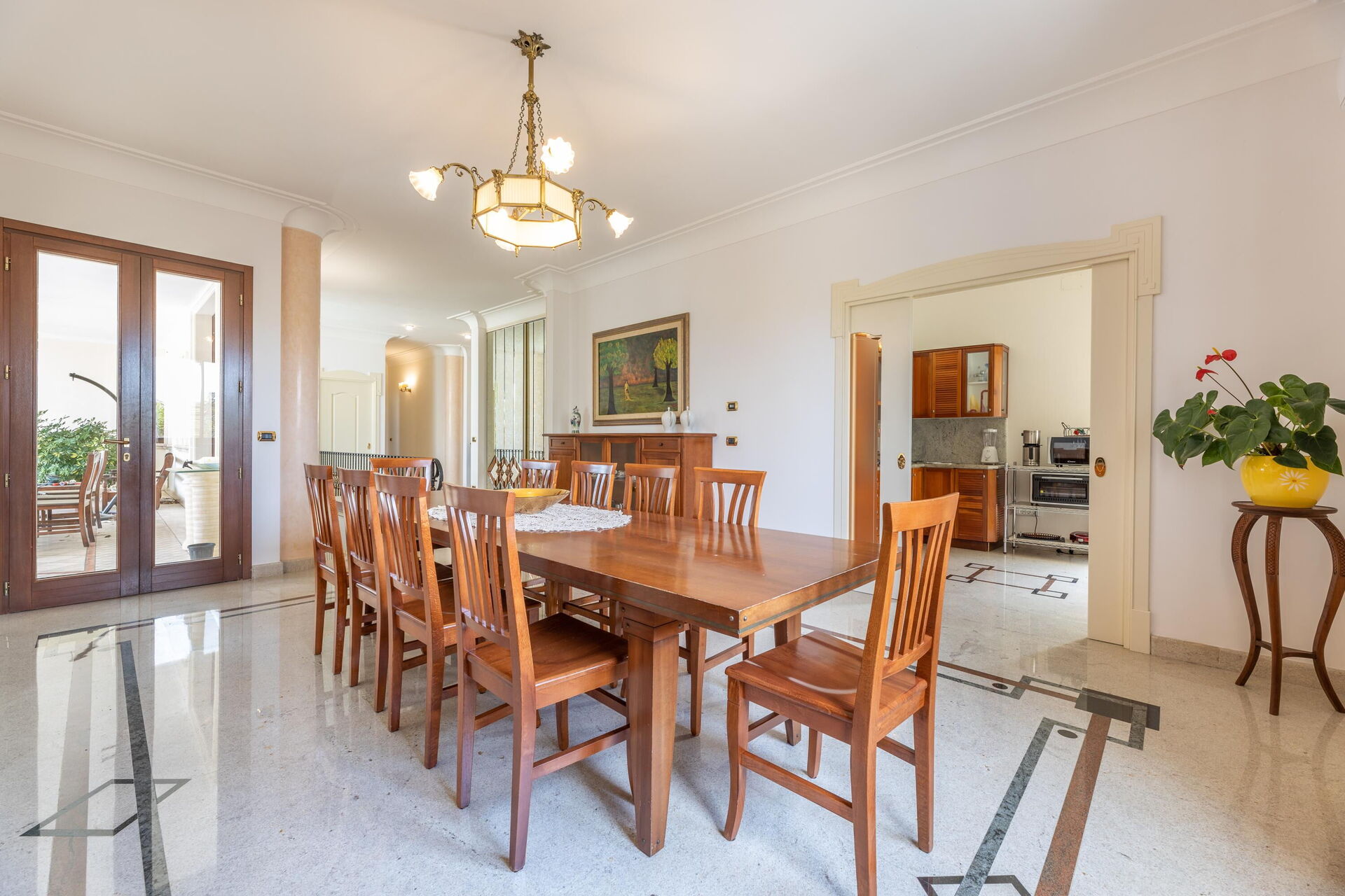 Piano terreno rialzato: ingresso, soggiorno (pianoforte), sala pranzo (tv satellitare) e con uscita sul loggiato, cucina (piano cottura, forno, freezer, frigorifero, lavastoviglie, microonde, macchina da caffè); camera matrimoniale con bagno privato con doccia, camera matrimoniale, bagno con vasca idromassaggio, camera con letto matrimoniale (trasformabile su richiesta in 2 letti singoli) e letto singolo (extra e su richiesta), bagno con doccia.