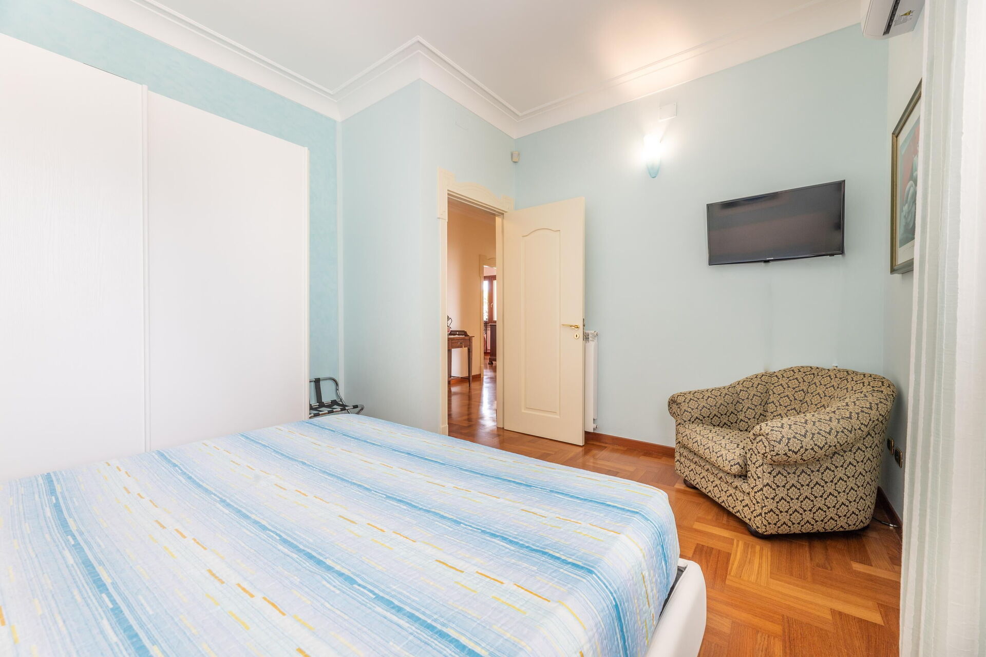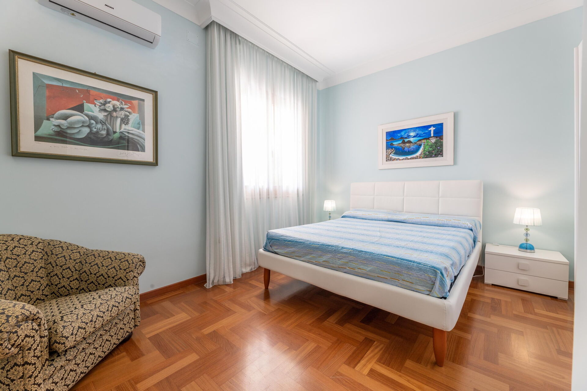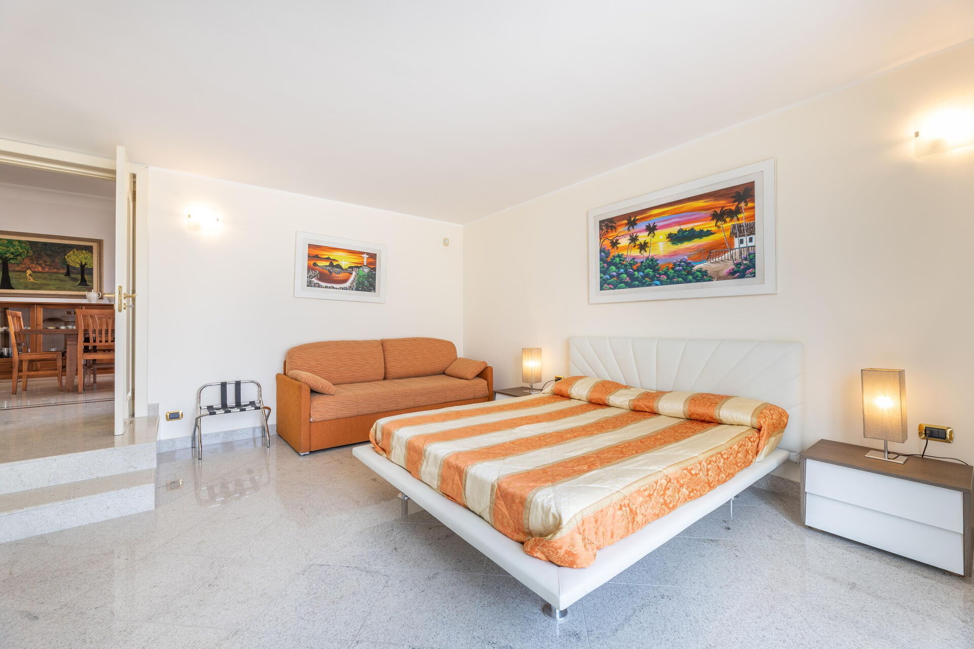 2 gradini più in basso: camera matrimoniale (aria condizionata) con divano letto matrimoniale.