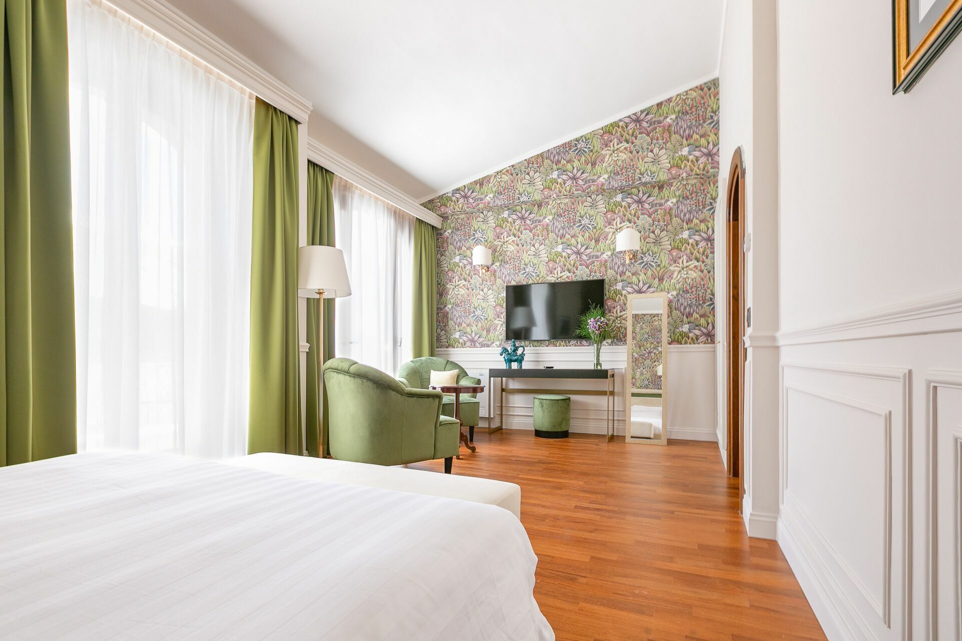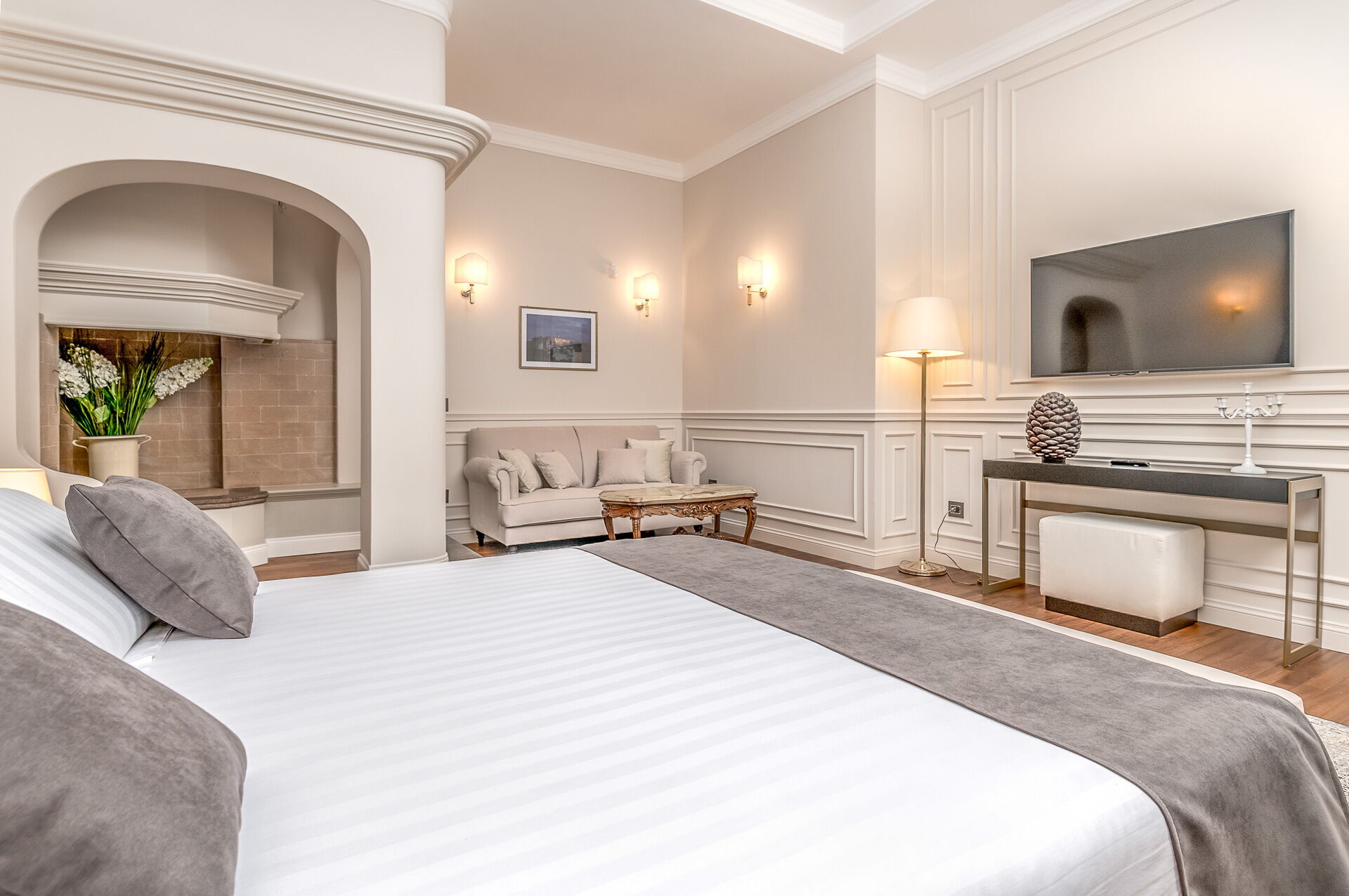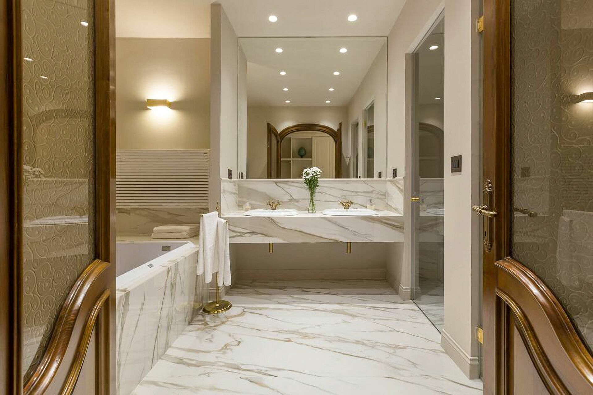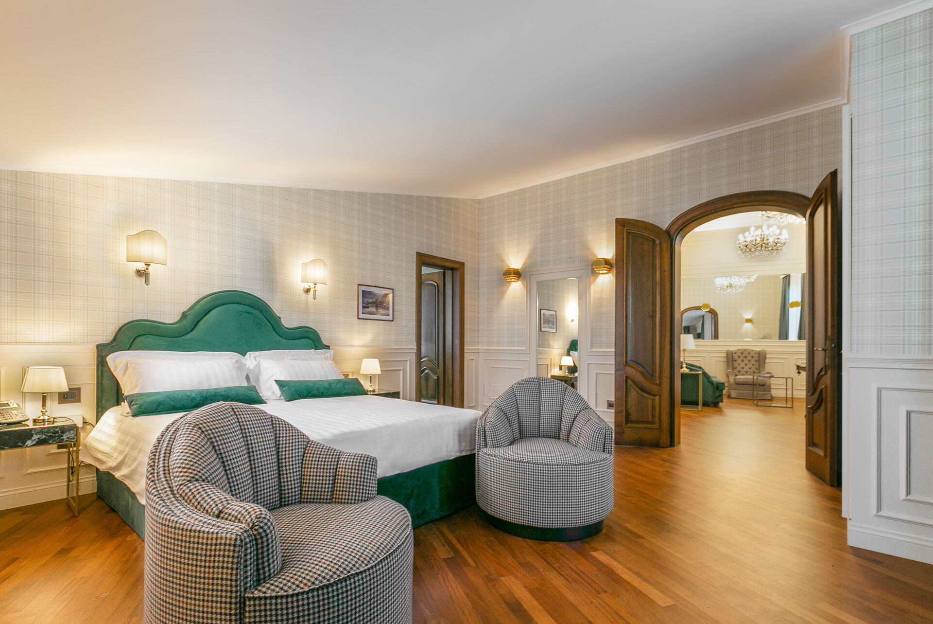 Piano primo: 1 camera matrimoniale (letto super king size) con bagno privato con vasca idromassaggio e doccia ed accesso a terrazzo privato, 1 camera matrimoniale (letto king size) con bagno privato con doccia; 1 camera matrimoniale (letto king size) con bagno privato con doccia e accesso a terrazzo privato, 1 camera matrimoniale (letto super king size) con bagno privato con doccia e accesso a terrazzo privato.
