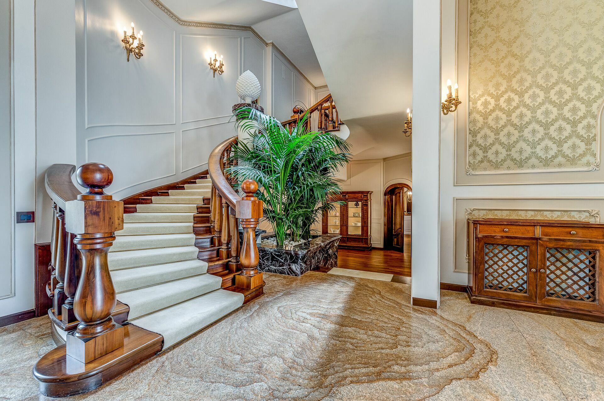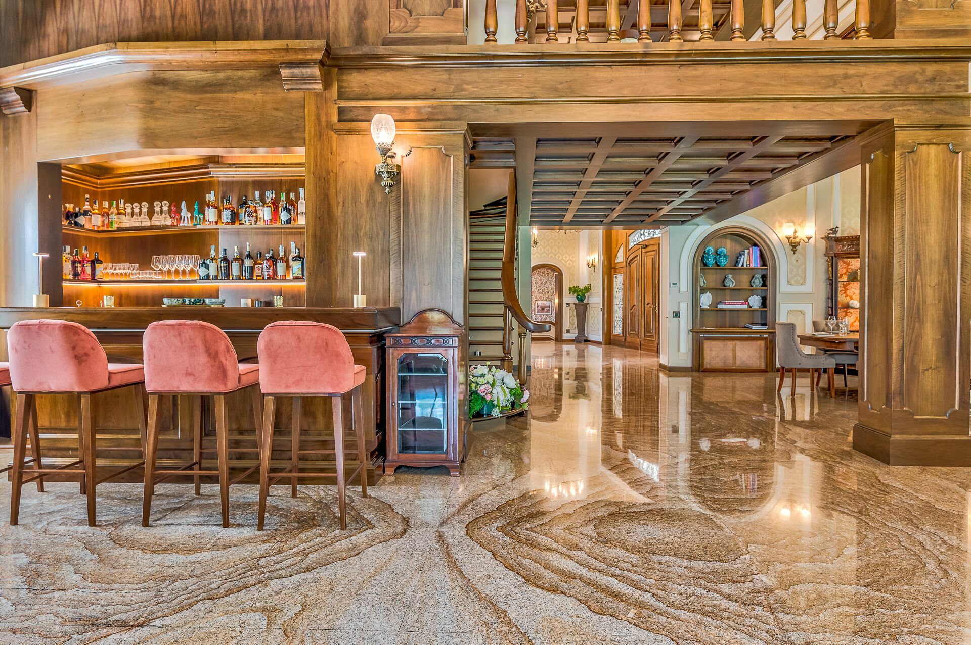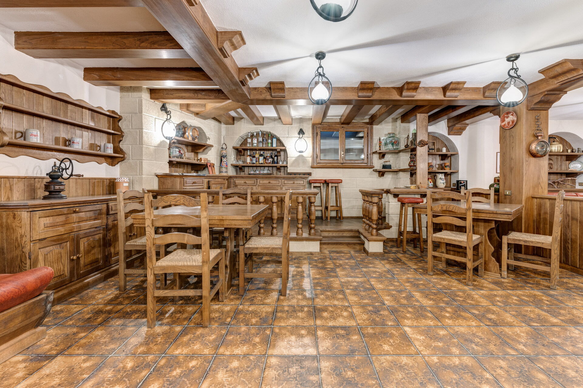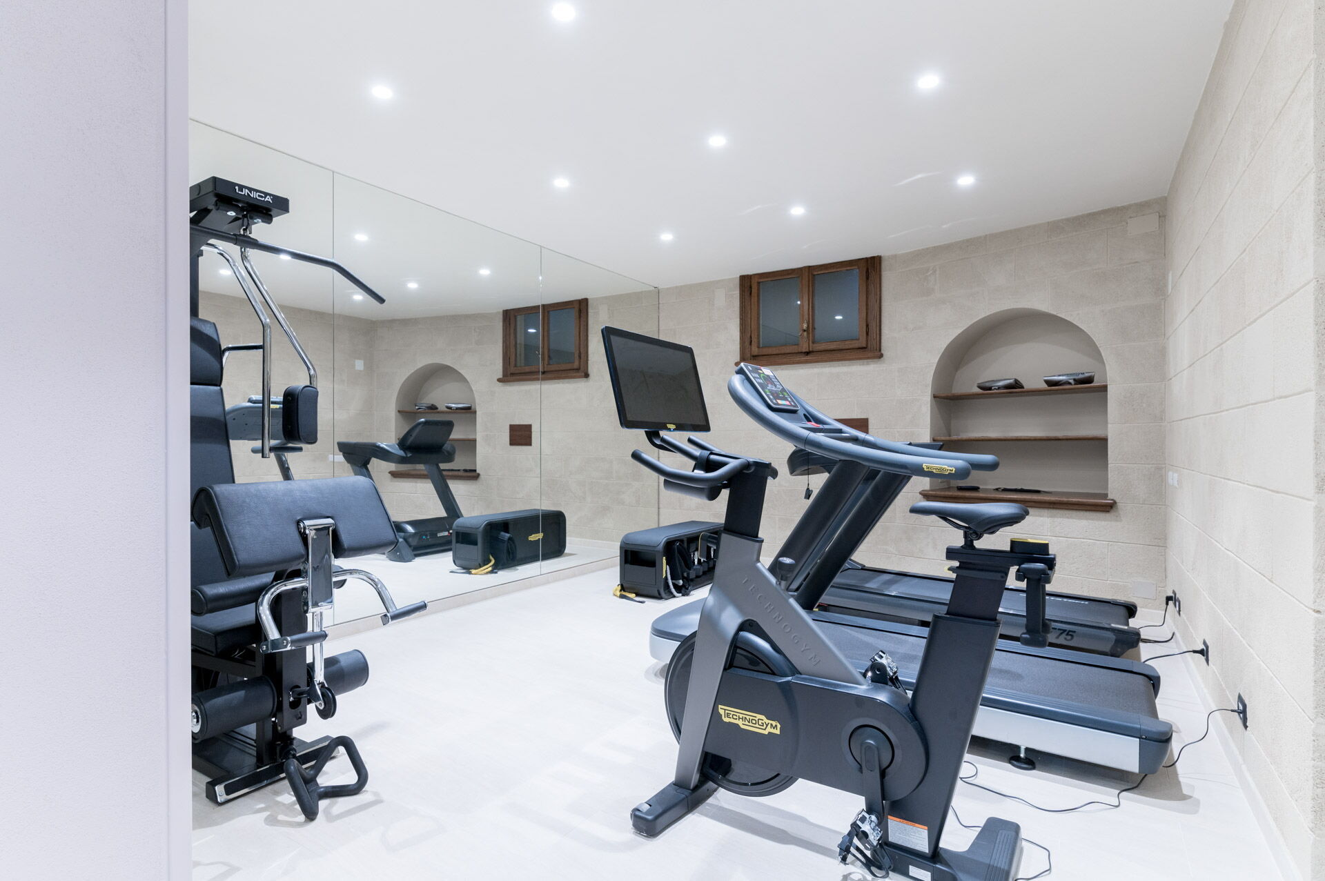 Piano inferiore (seminterrato): SPA, palestra, taverna con sala da pranzo, sala con biliardo.